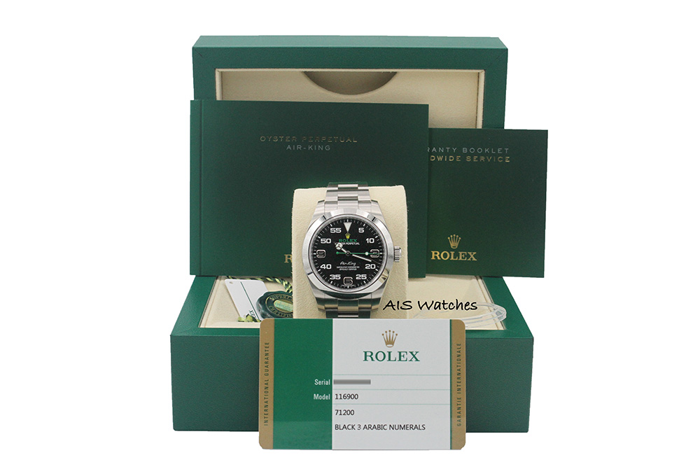 Up for sale is a Rolex Air-King 116900 40MM Stainless Steel Box & Papers. The timepiece in clean condition.