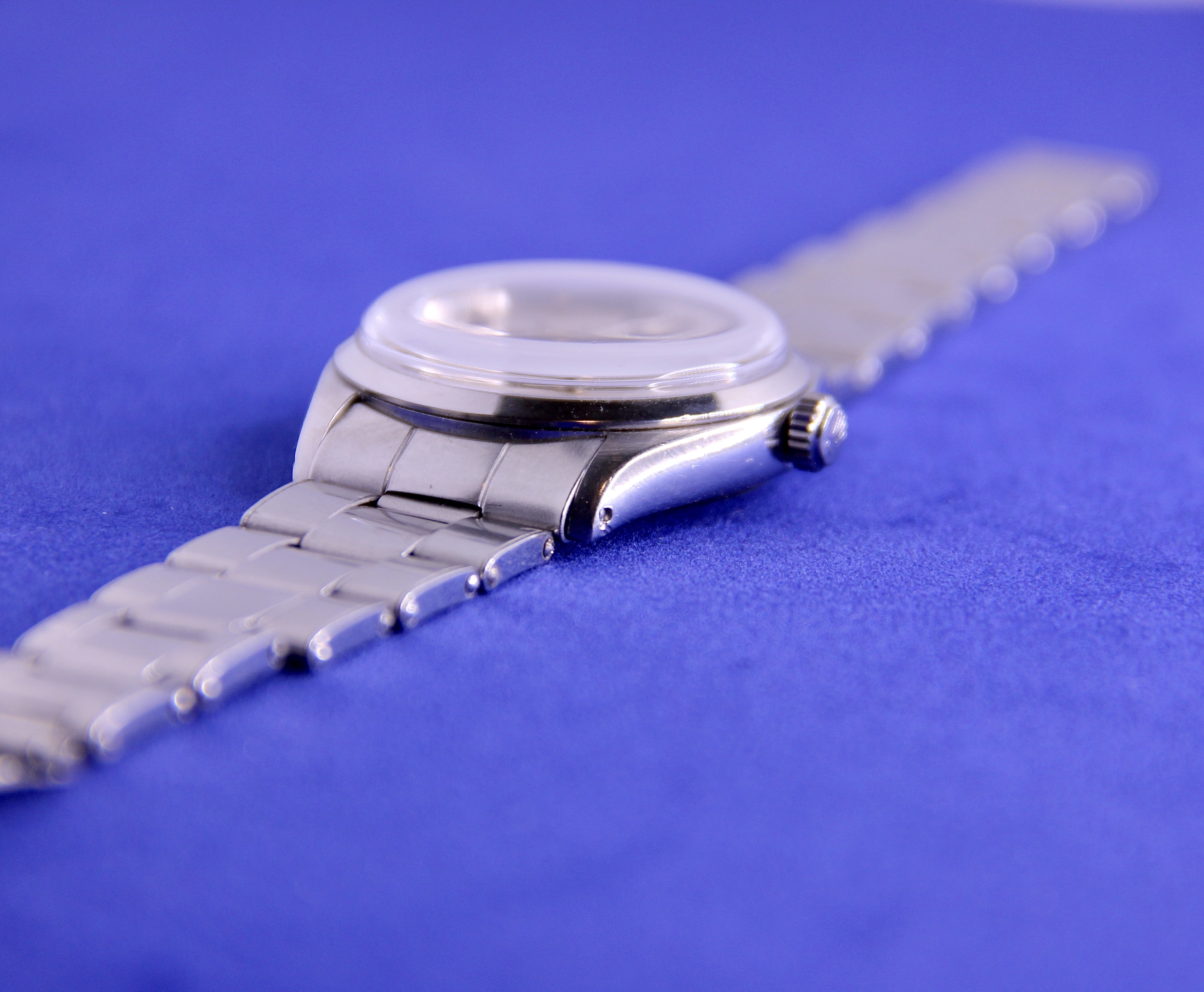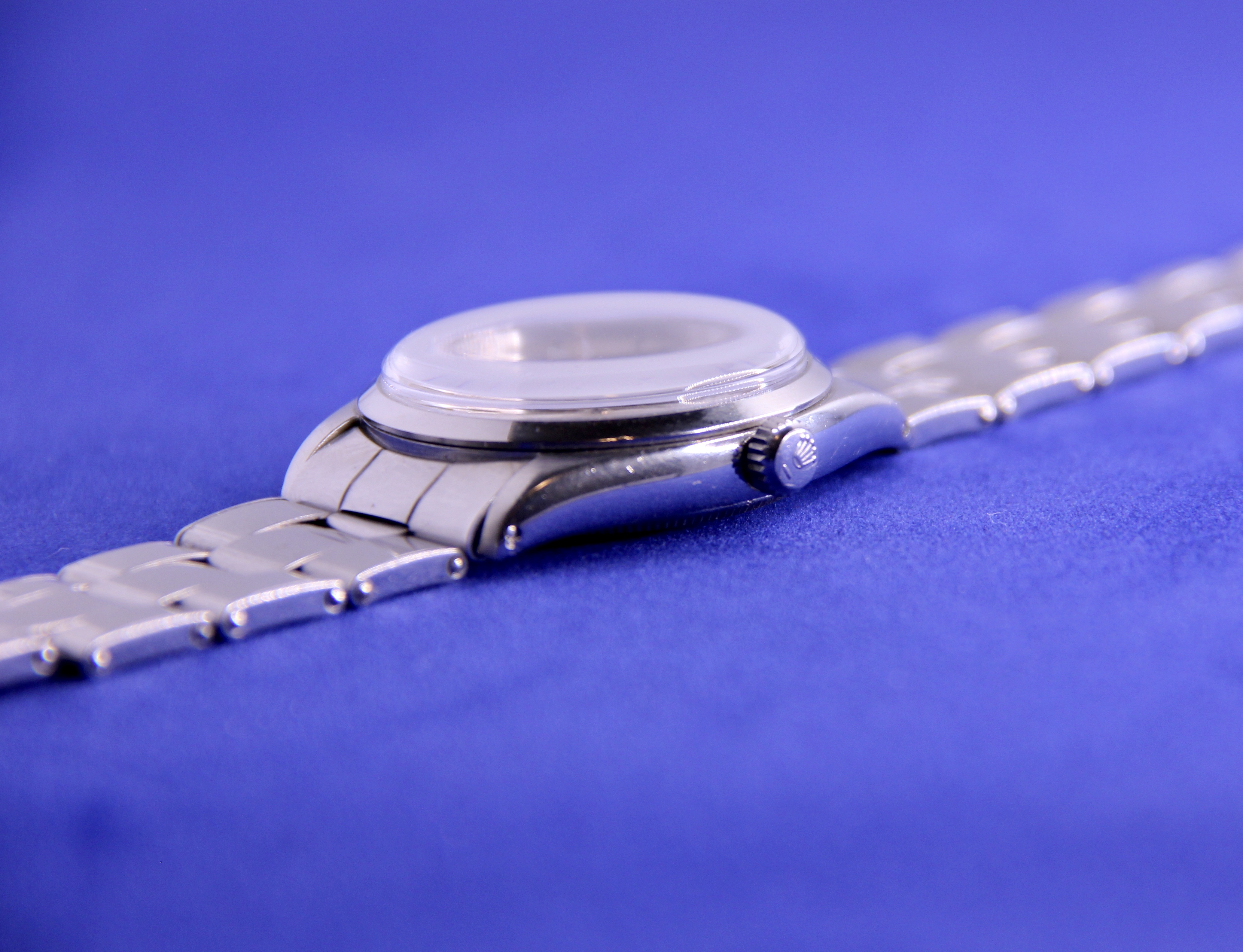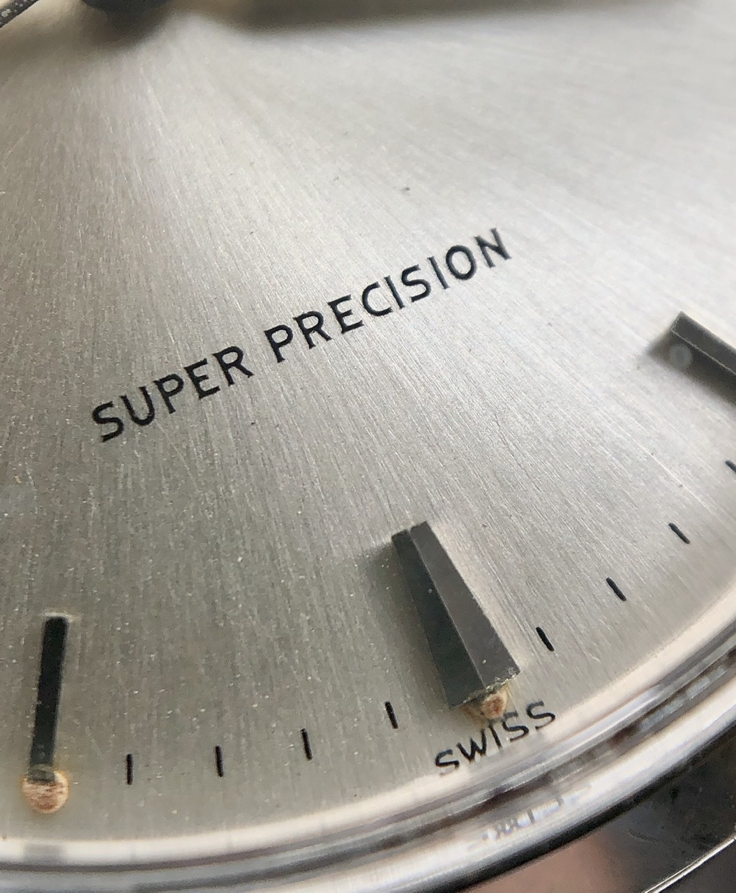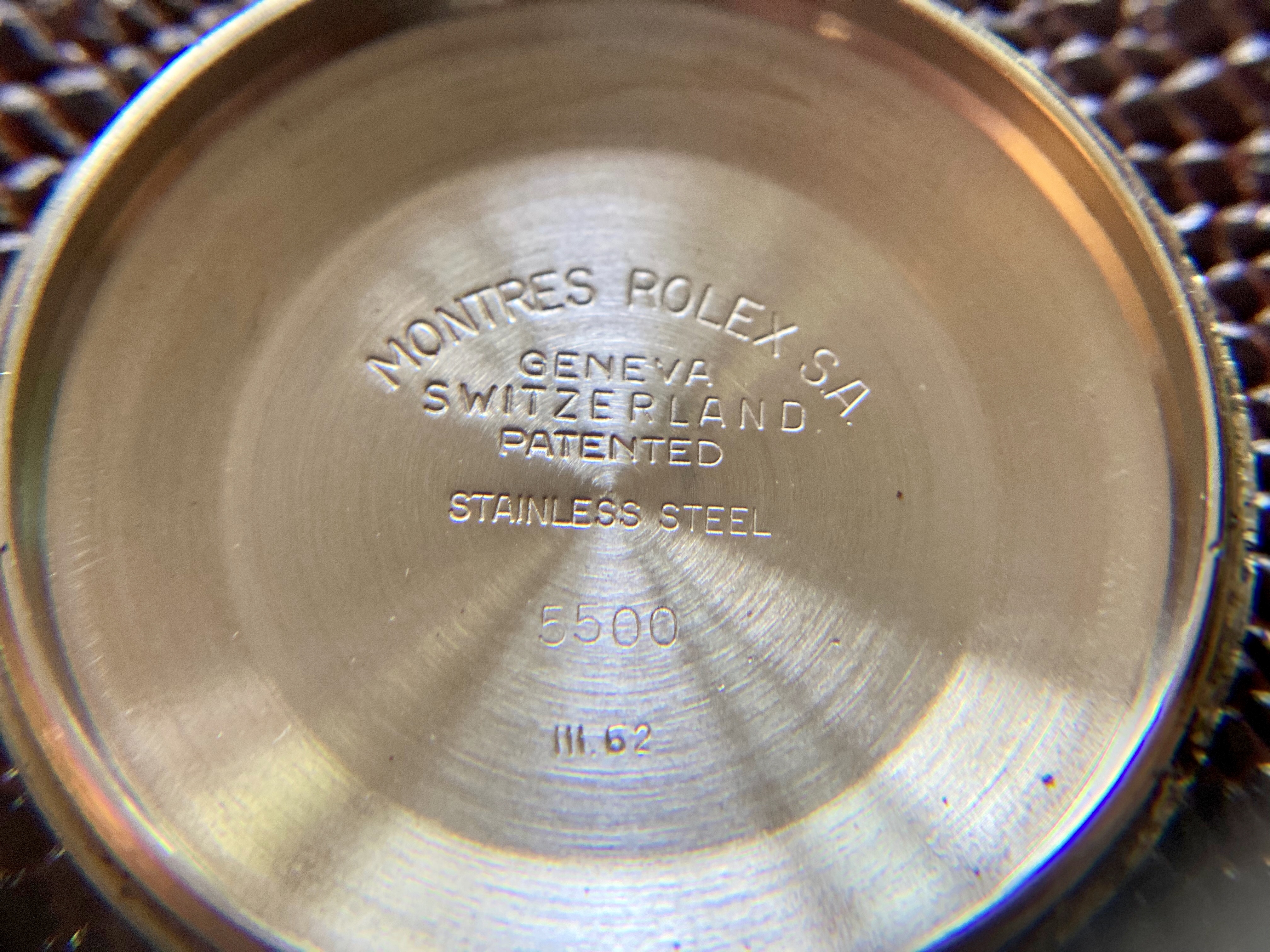Up for sale today is my Rolex Air-King ref 5500 in stainless steel. This is an uncommon Super Precision variant with the automatic caliber 1530 and beautiful dauphine hands which in my opinion are such a quintessential design trait of this era. The lume on the dial and hands is original and has aged to a nice, creamy color. The watch comes on a late 1960s Rolex rivet oyster bracelet that will fit up to a 7.5" wrist.