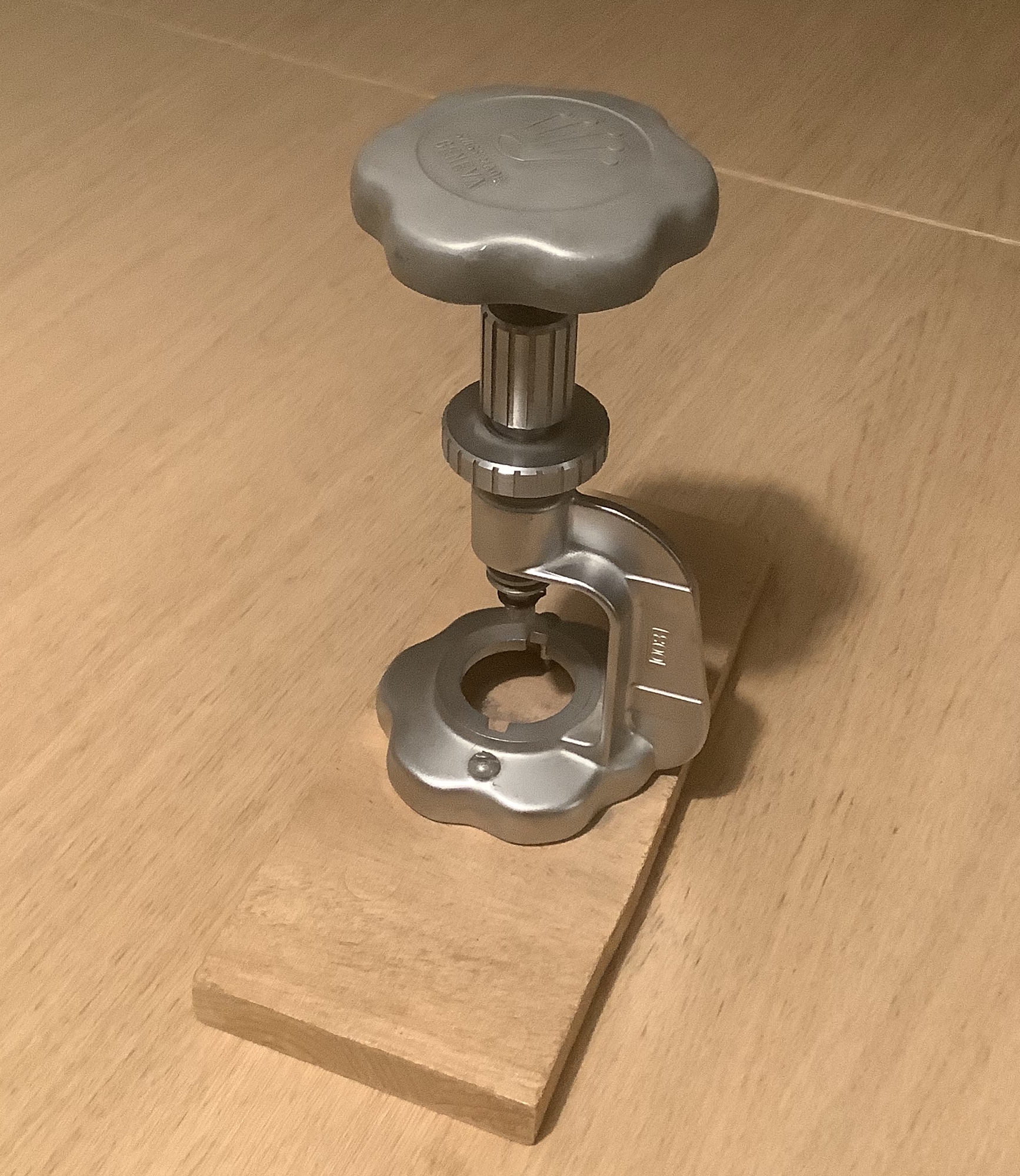 Of course with a Rolex case back design, you can't really use plastic between the case back and the die like I have used here, so on those it's even more important to make sure the die can't slip and is held down firmly. I use Bergeon Rolex dies (they actually came with the 5700 when I bought it years ago), but they do work well. Of course making sure the case is held securely helps as well, but this vise in this unit does the job fine.