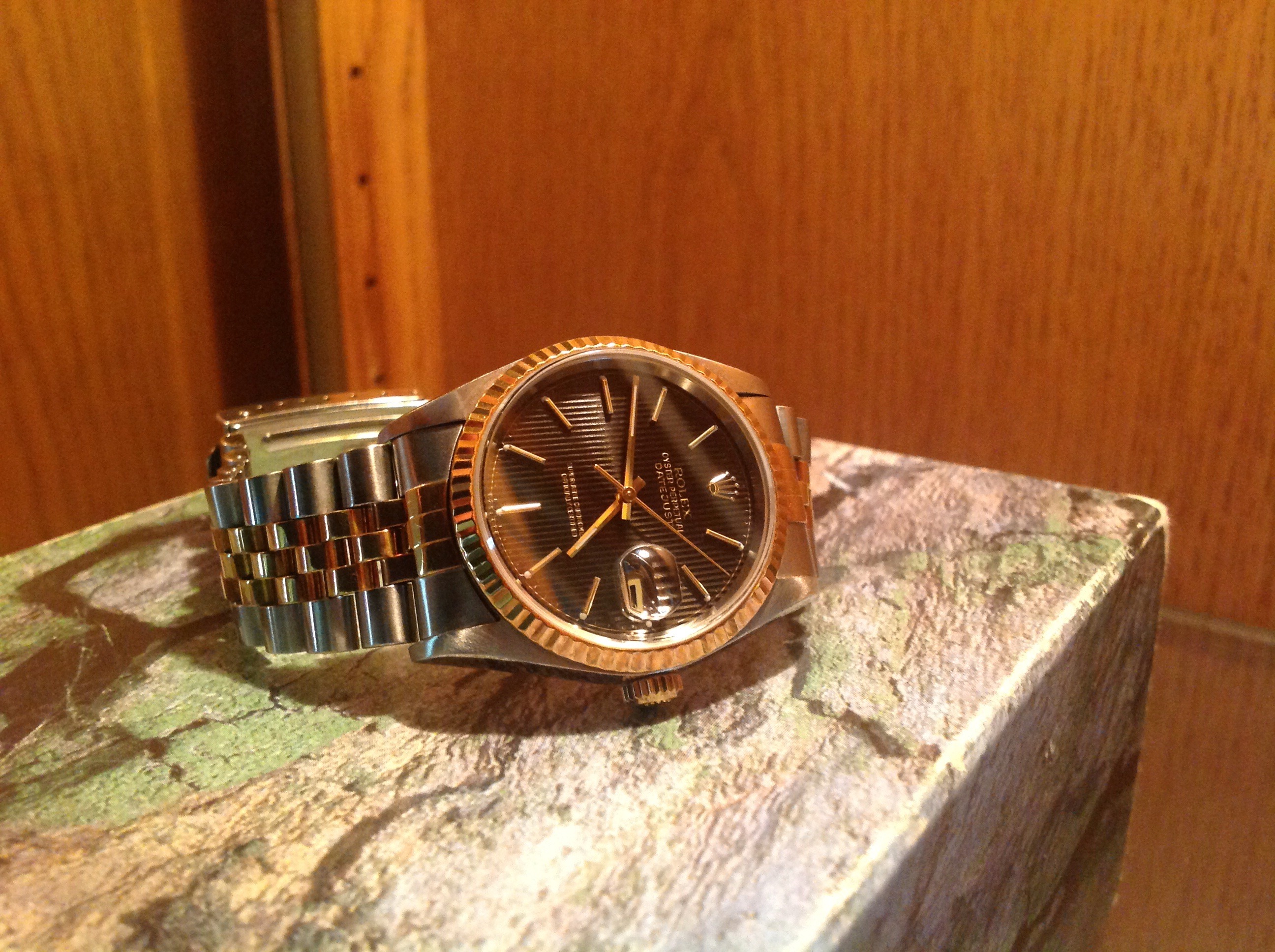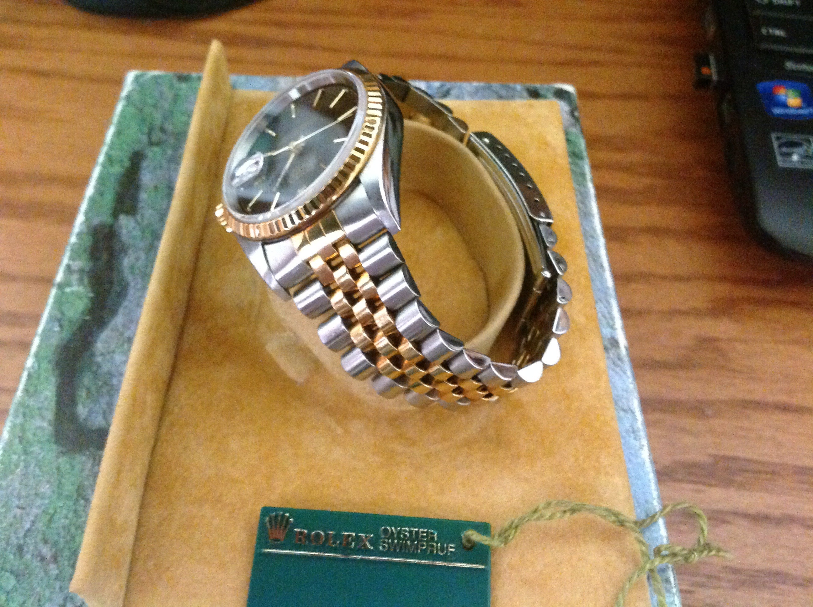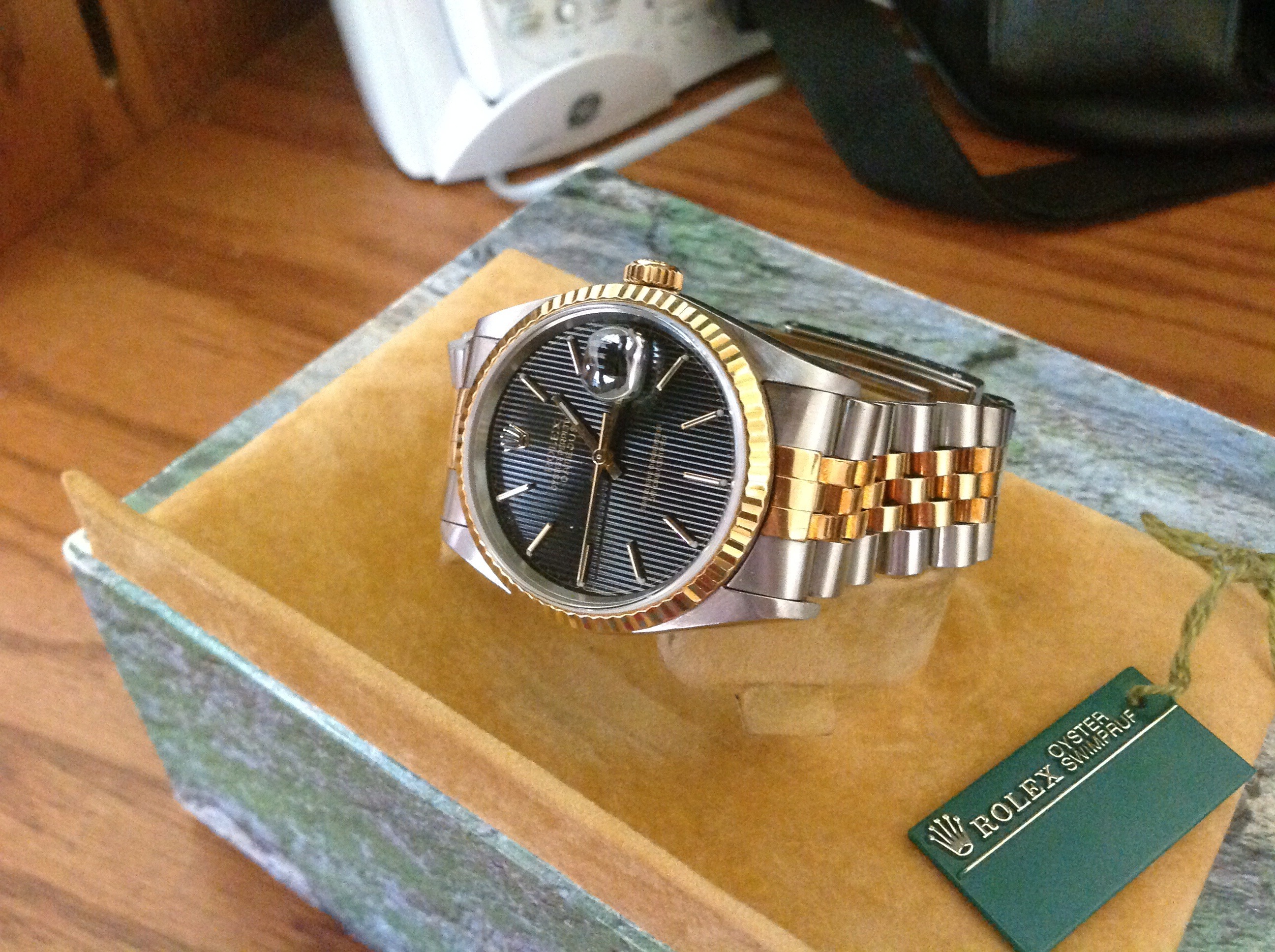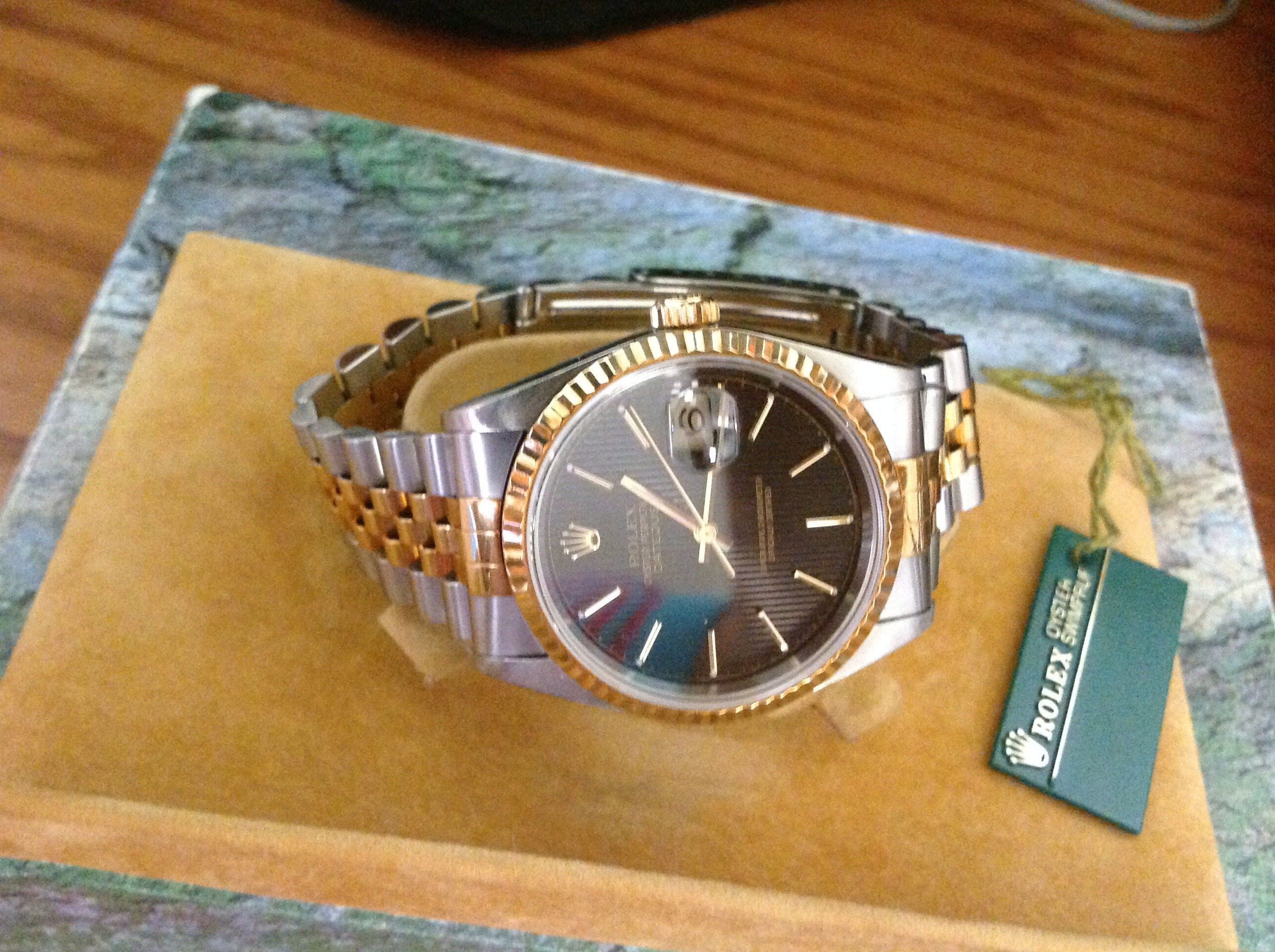 Hello! I'm offering here Rolex Datejust 16233 with the very desirable black tapestry dial. Jubilee bracelet 18k/SS in great shape with little stretch . Crystal is clear w/o any scratches. The case has a very minimal signs of use and I would rated close to mint. Watch is working as it should and no issues found.
