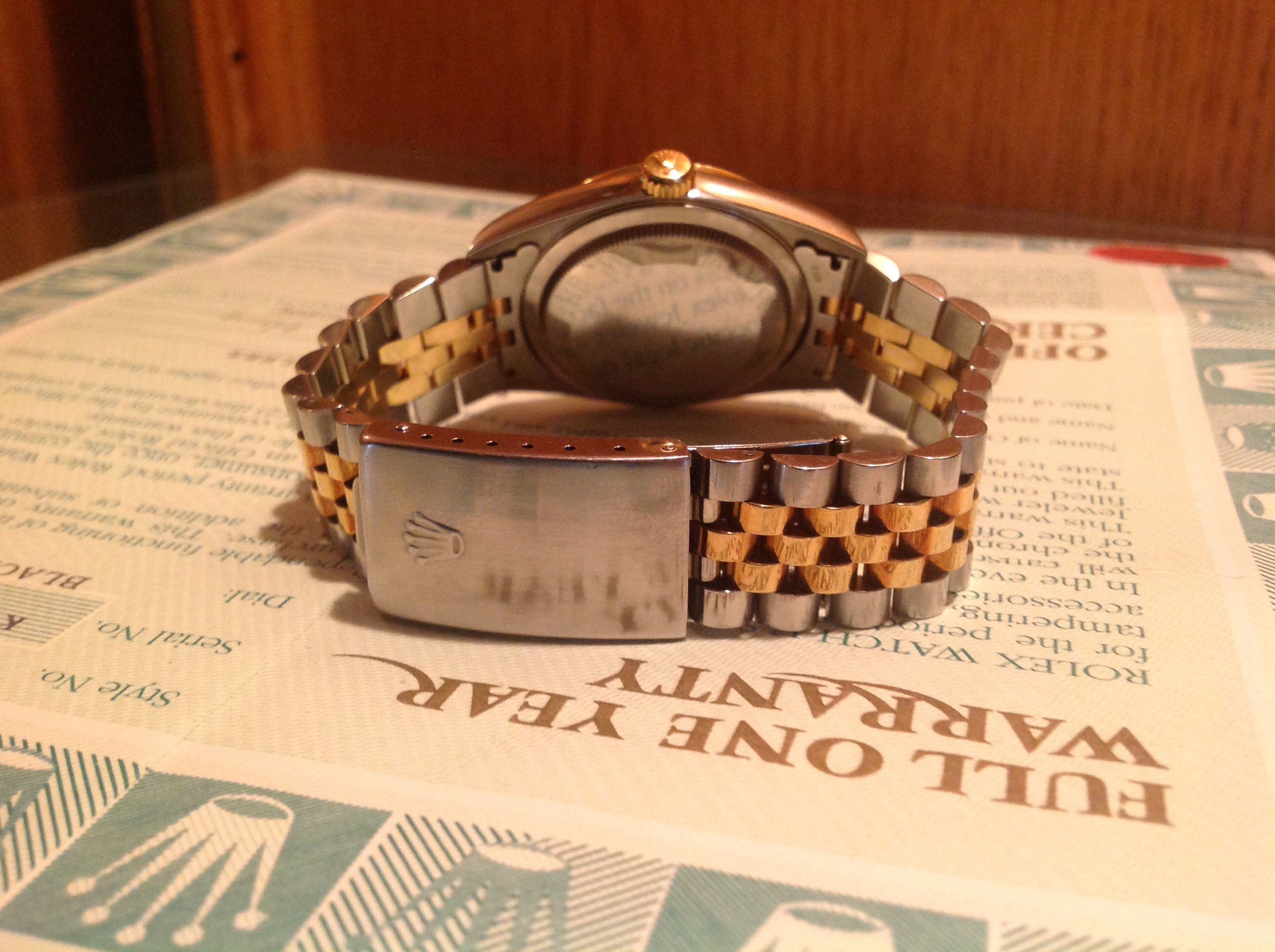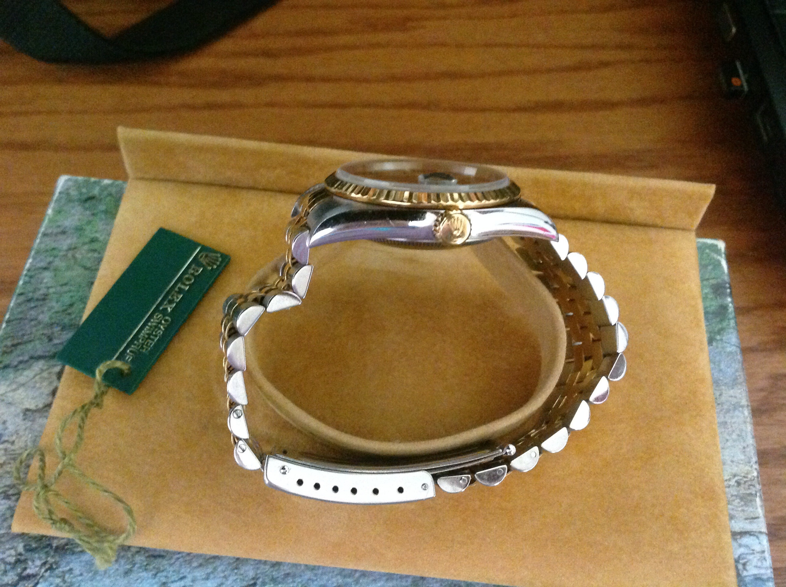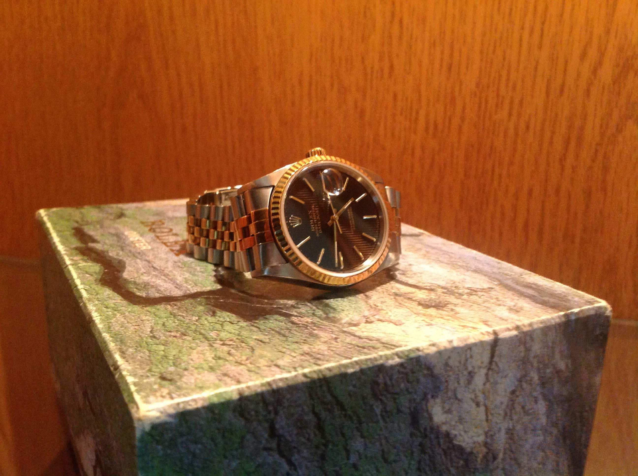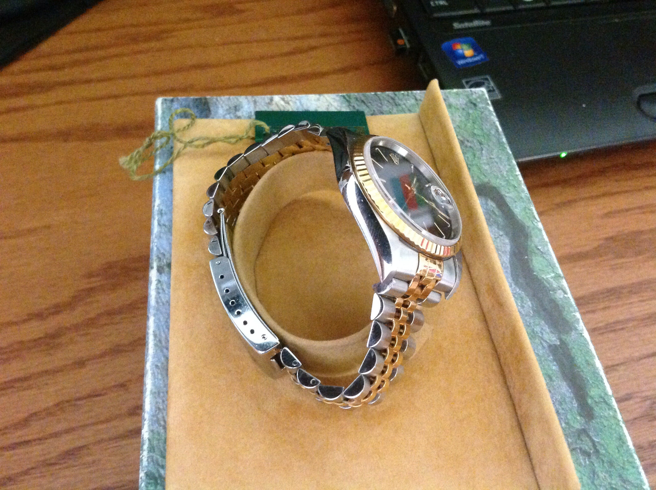 Hello! I'm offering here Rolex Datejust 16233 with the very desirable black tapestry dial. Jubilee bracelet 18k/SS in great shape with little stretch . Crystal is clear w/o any scratches. The case has a very minimal signs of use and I would rated close to mint. Watch is working as it should and no issues found.
