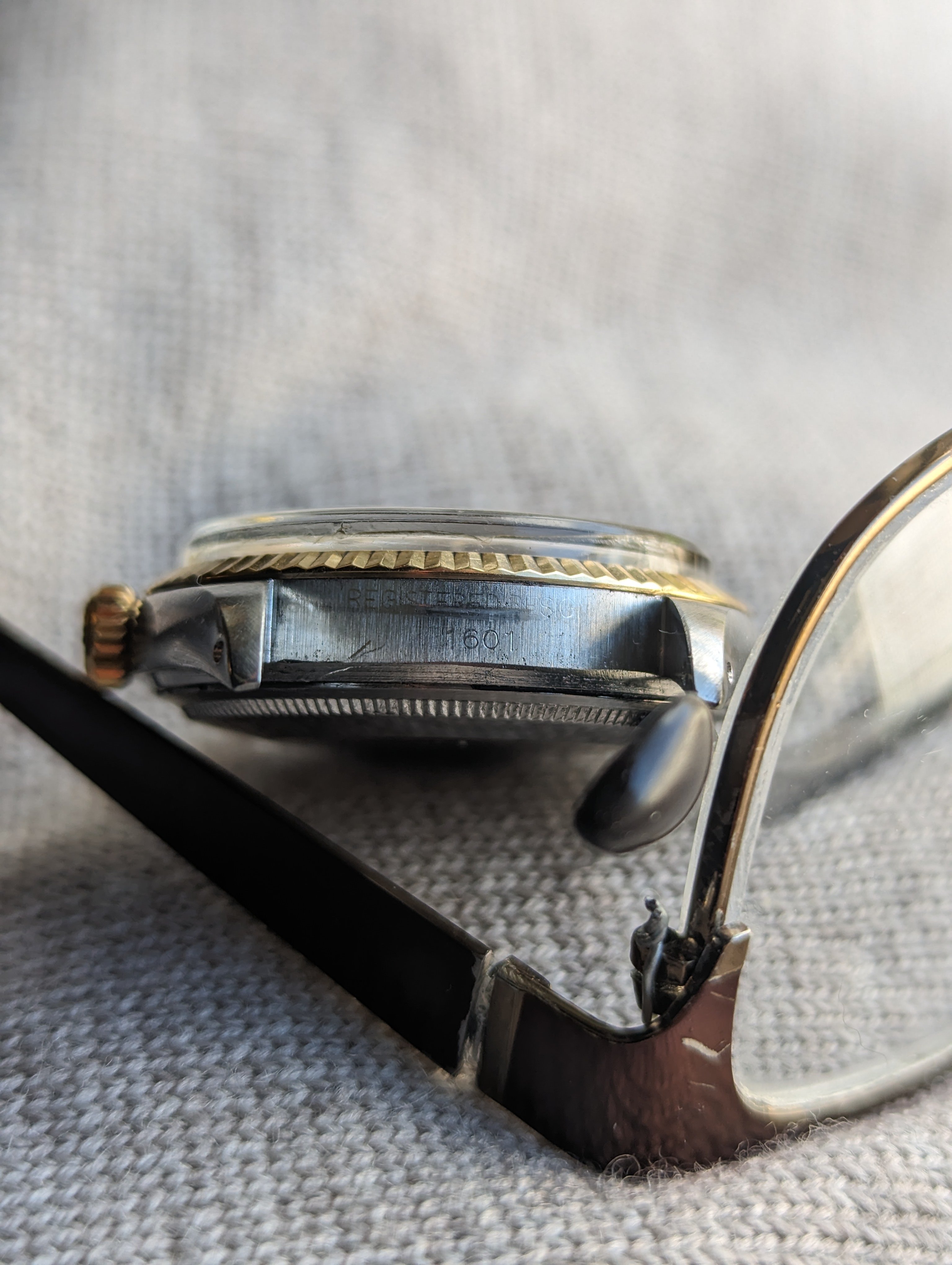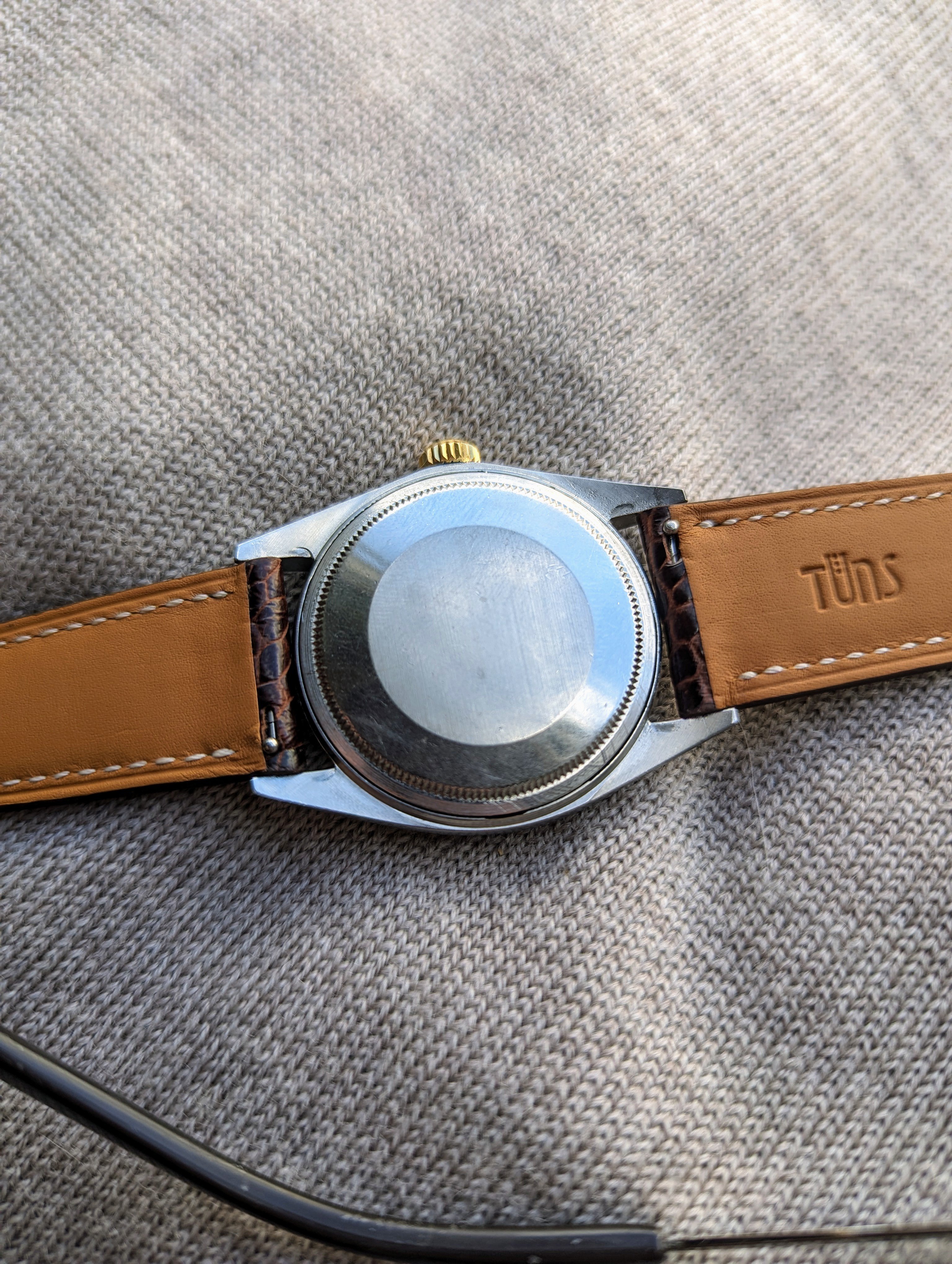 CASE: The previously polished 36mm steel case is in fair+ shape and presents with light, even wear from use. The watches lugs still remain relatively thicker.
