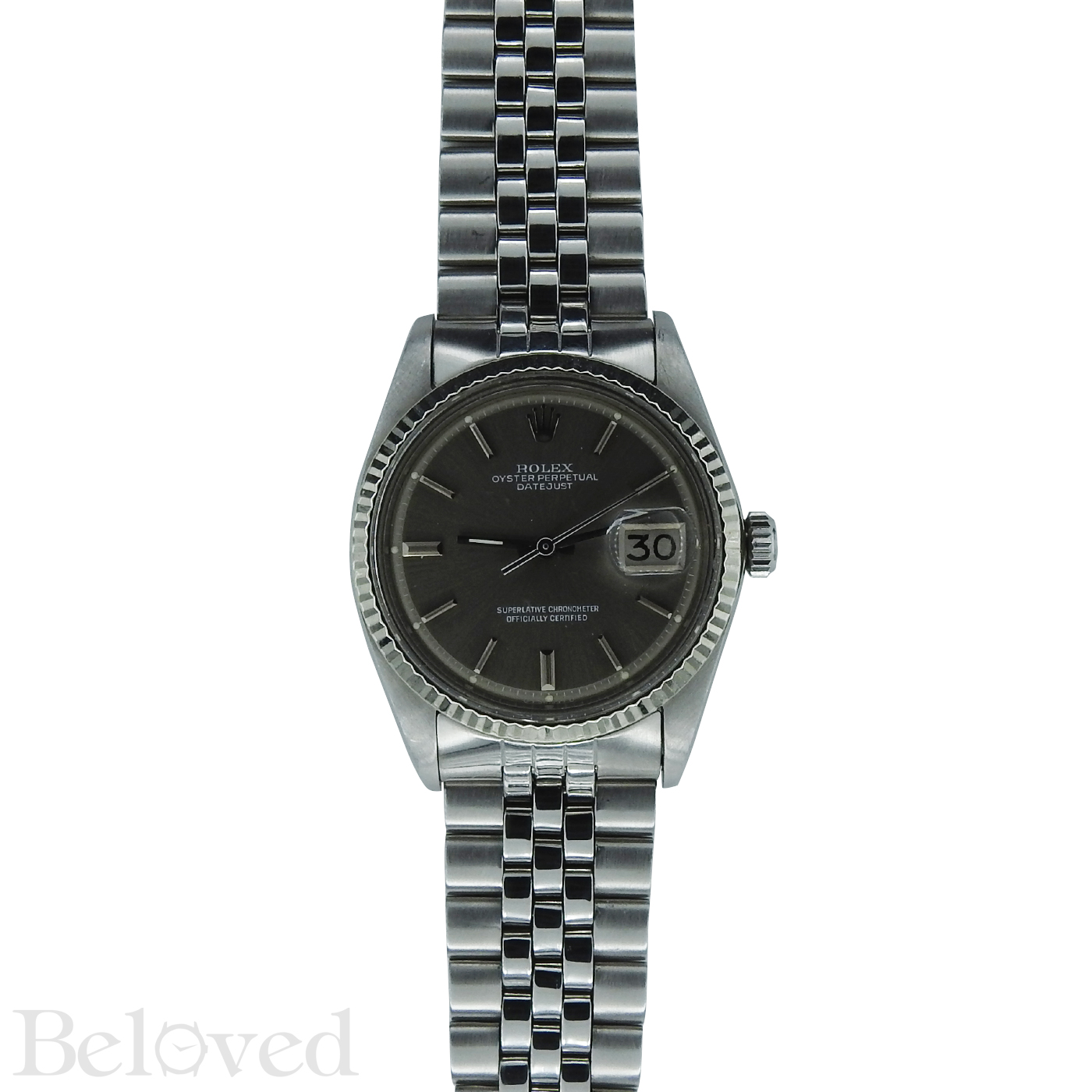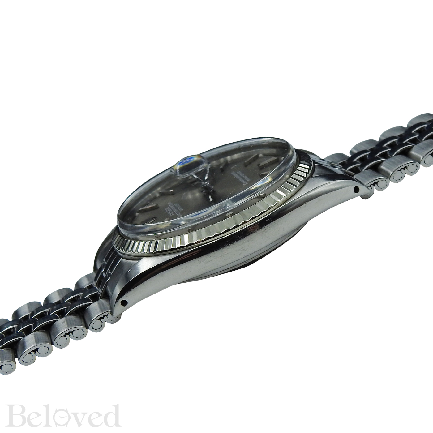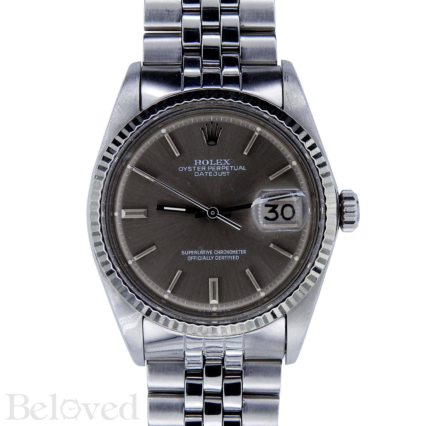 ·Manufactured by Rolex. This Rolex is a model 1601. This Rolex Datejust 1601 was produced in the year 1973. On a condition scale ranging from fair to unworn, this specific Rolex Datejust 1601 is in very good condition. The sigma Dial is a silver matte with steel stick & baton hour markers and white print. The Rolex Datejust 1601 with stainless steel case is 36mm in diameter. This Datejust is secured with a folded link bracelet and folding buckle which is in stainless steel. This Datejust is powered by an automatic Rolex Caliber 1570.