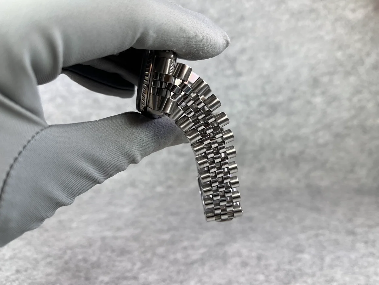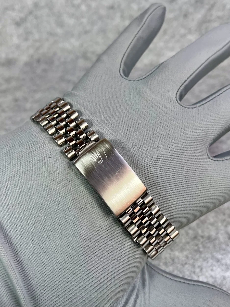 Bracelet: Original stainless steel Jubilee 62510H with 555 end links, folding clasp, 17 links (around 20cm circumference)