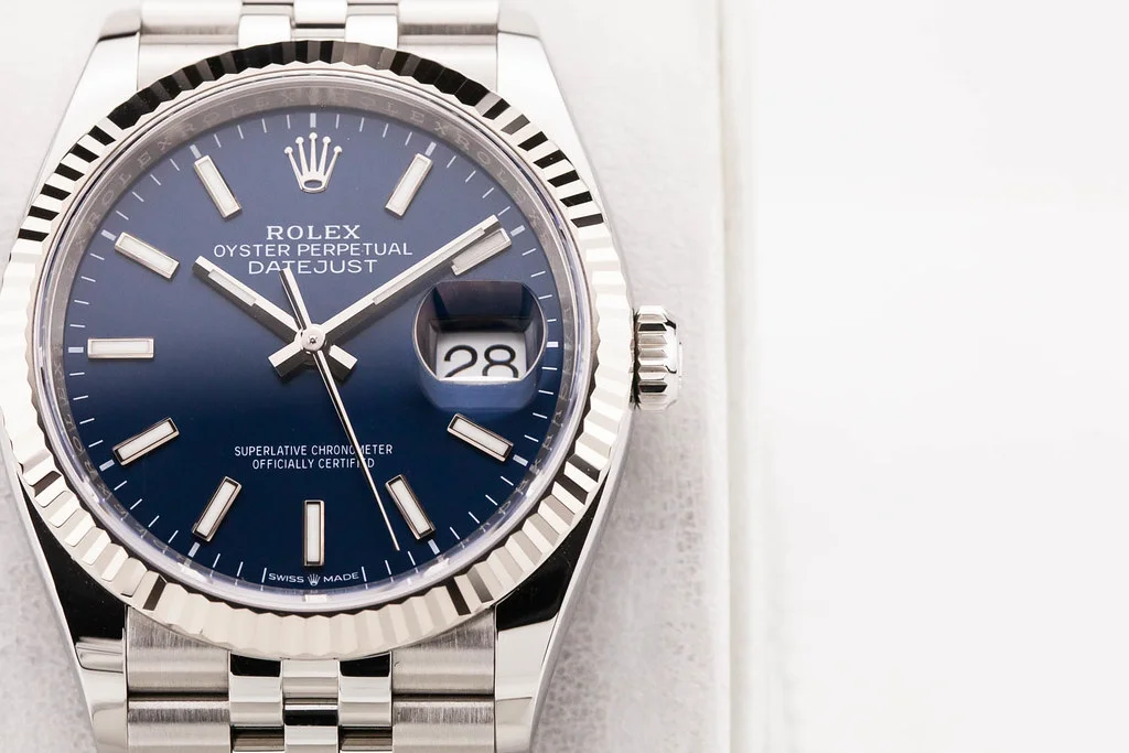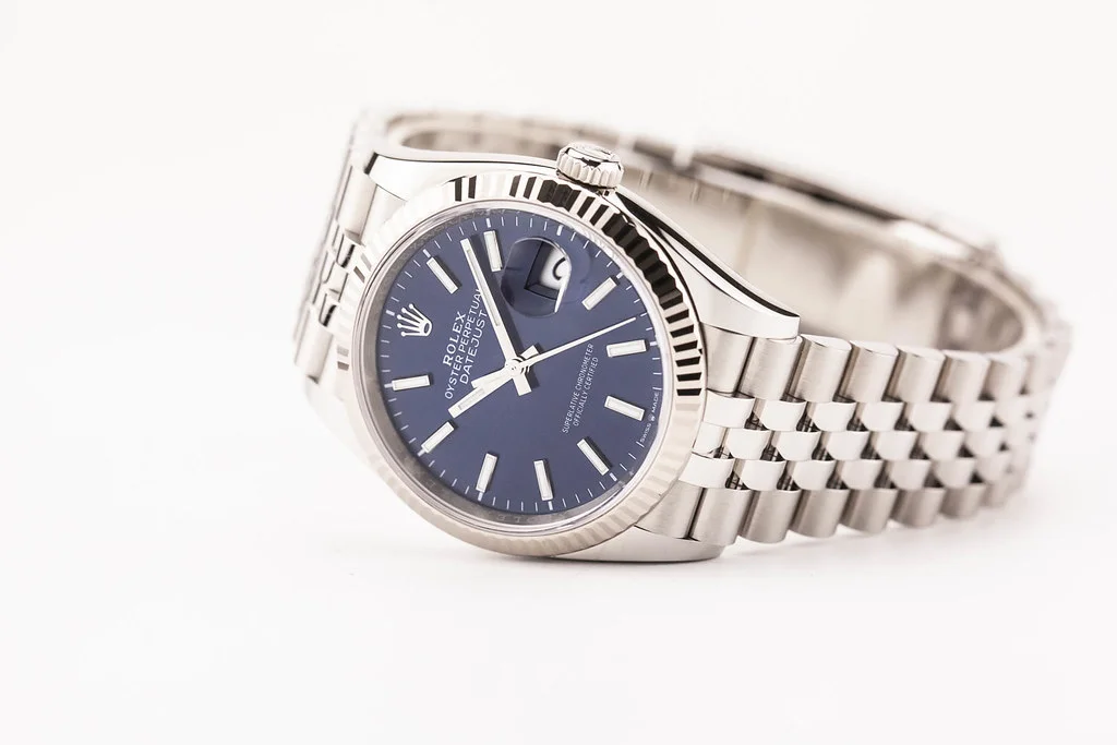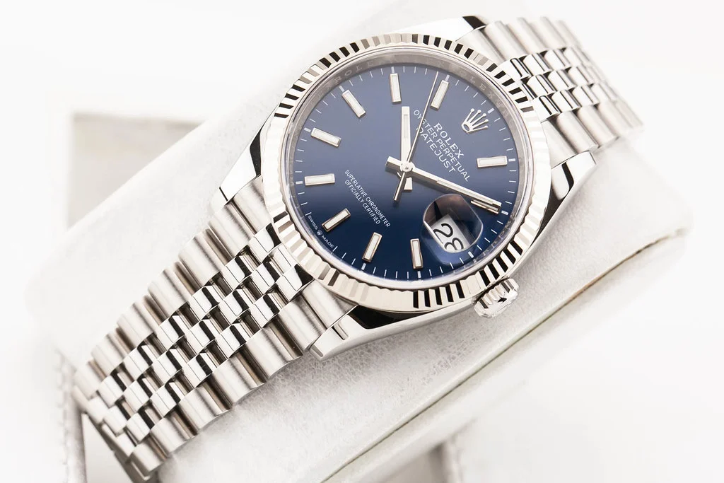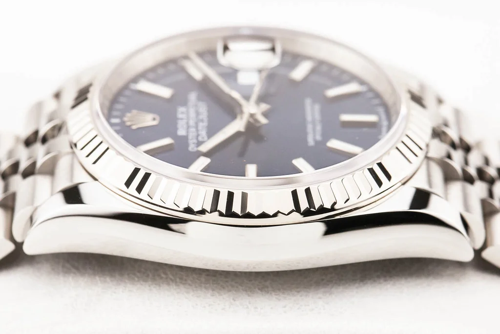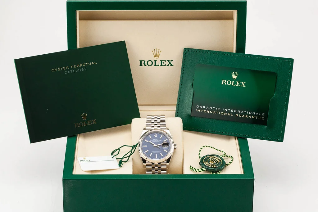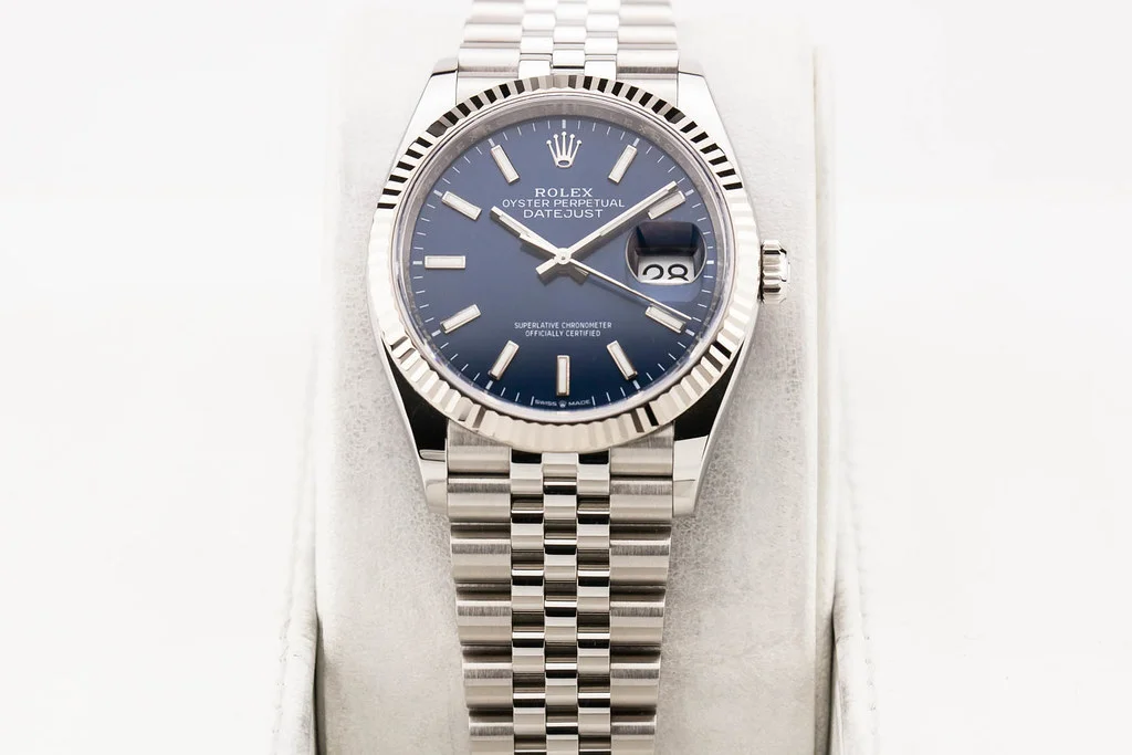 ·Up for sale is a mint condition Rolex Datejust 36 Blue Dial Fluted Bezel on Jubilee Bracelet, reference # 126234 It comes complete with all newly redesigned boxes, papers, booklets, hang tags, and Rolex Warranty Card dated May 2025.
