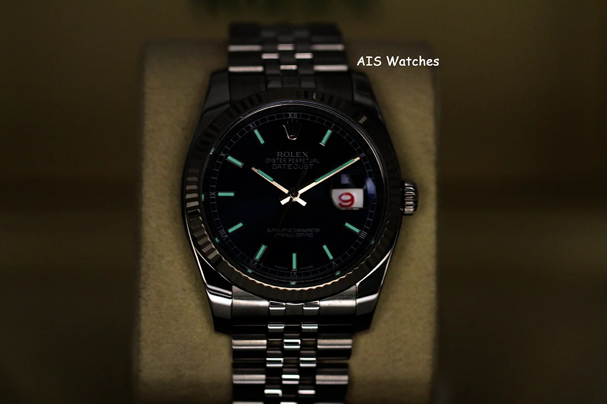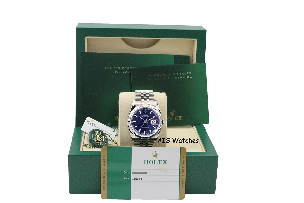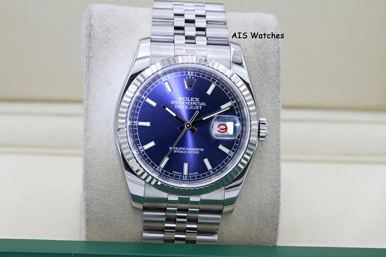 ** Datejust 36MM 116234 Blue Stick Dial Fluted Bezel / Jubilee Bracelet / Roulette Date Wheel