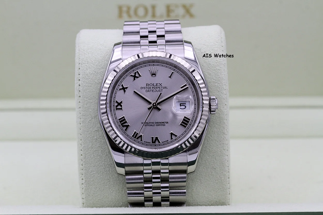 ** Datejust 36MM 116234 Rhodium Roman Dial Fluted Bezel / Jubilee Bracelet