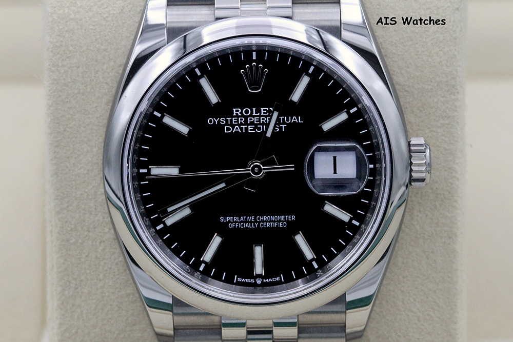 ** Rolex 126300 Datejust 36MM Black Stick Dial Smooth Bezel / Jubilee Bracelet