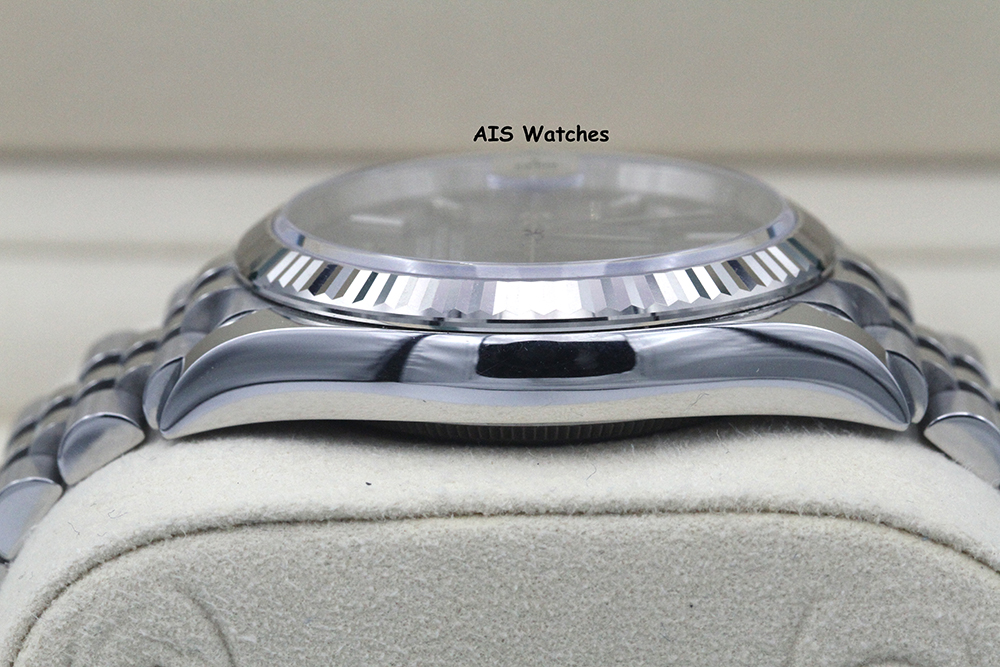 Up for sale is this Classic Rolex Datejust 36 MM 126234 on Jubilee bracelet with Blue Stick Dial Stainless Steel with 18K WG Fluted Bezel Box & Papers. The timepiece is in excellent condition.