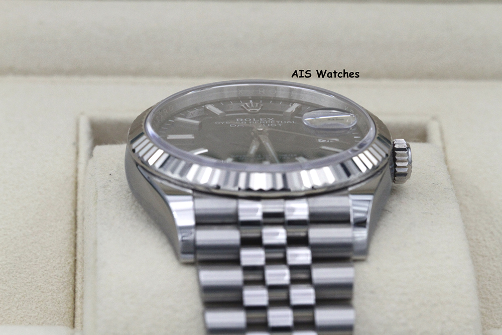 Up for sale is this Classic Rolex Datejust 36 MM 126234 on Jubilee bracelet with Blue Stick Dial Stainless Steel with 18K WG Fluted Bezel Box & Papers. The timepiece is in excellent condition.