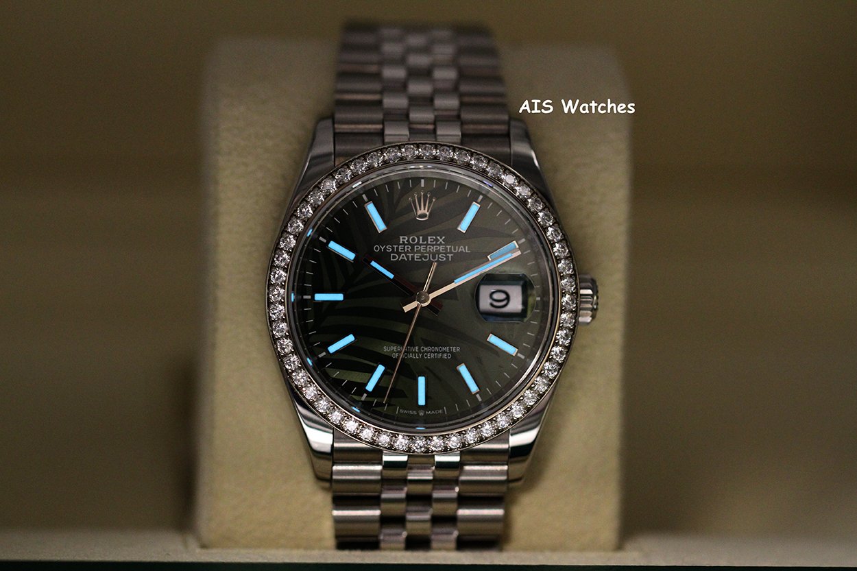 ** Rolex Datejust 36MM 126284RBR Factory Diamond Bezel Jubilee Palm Green Dial