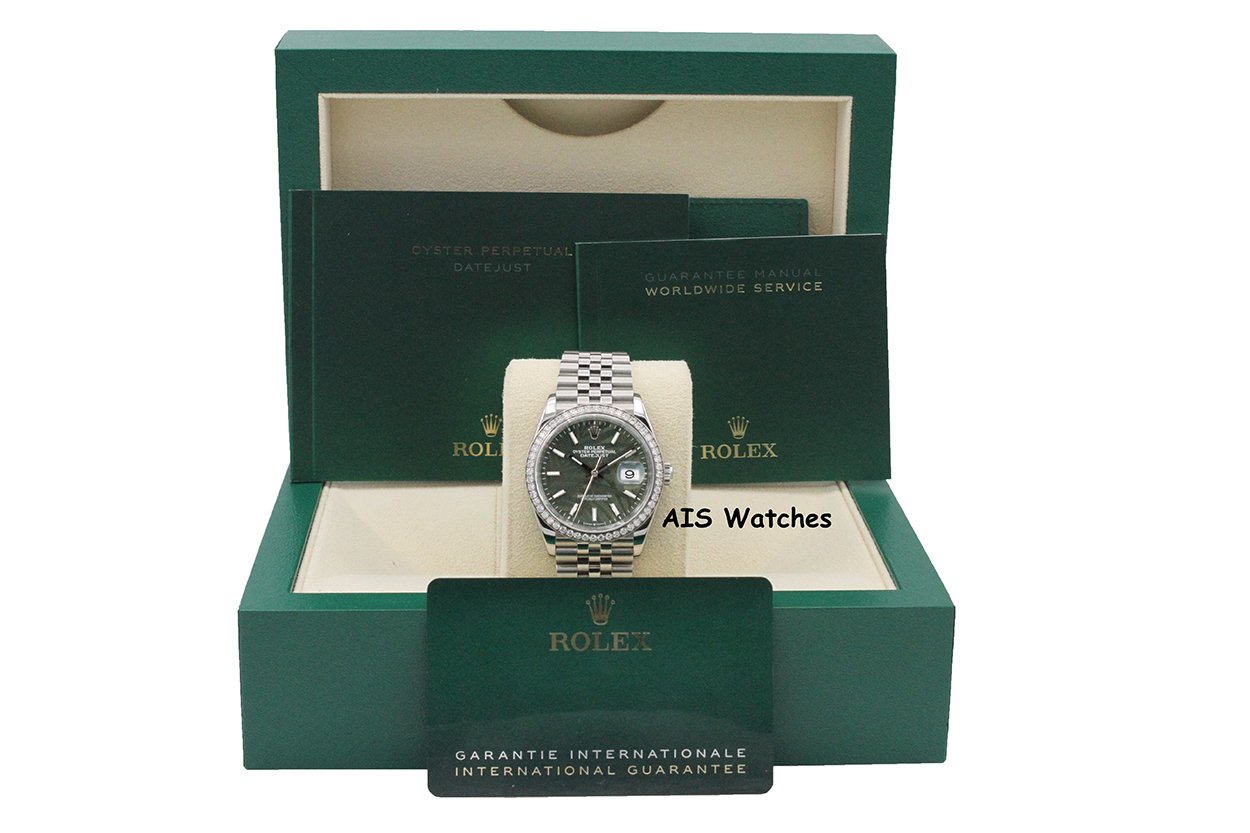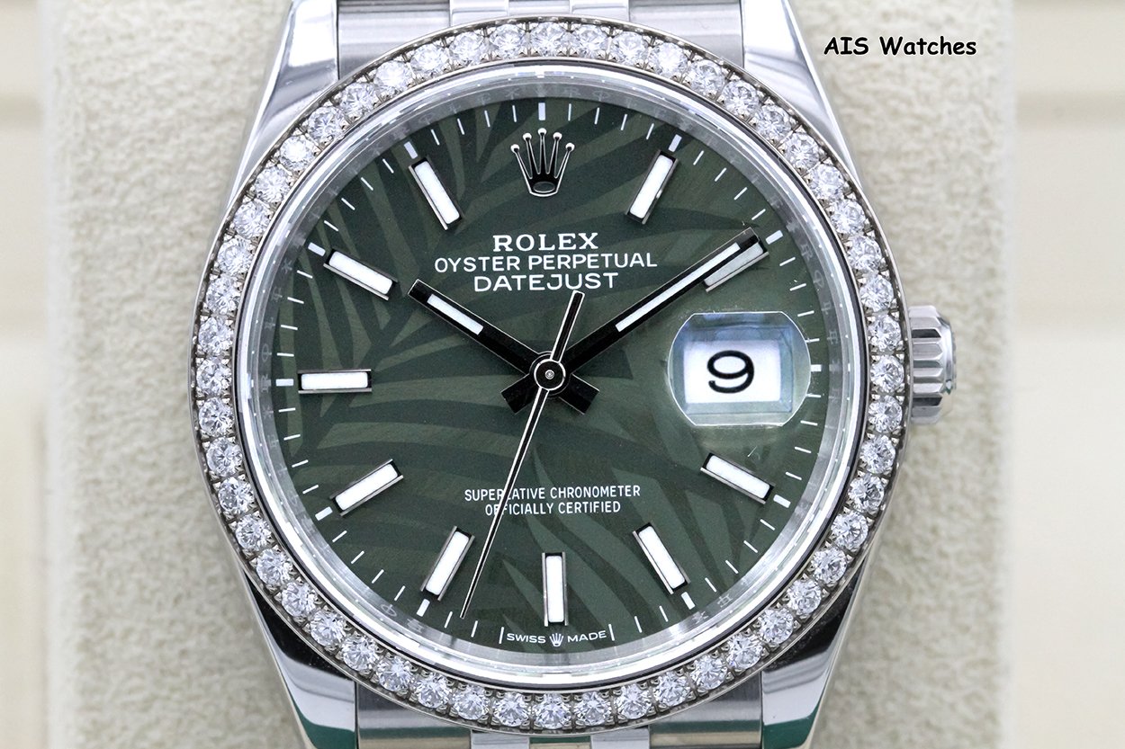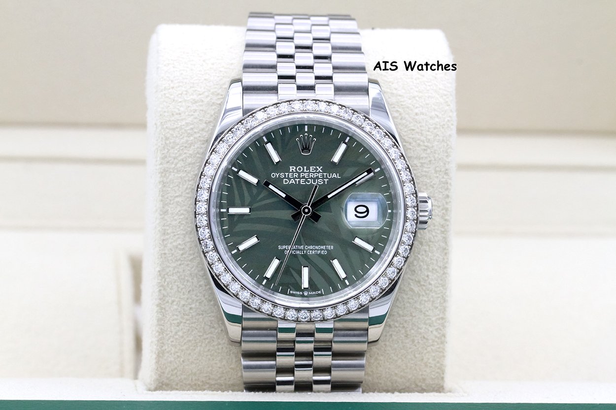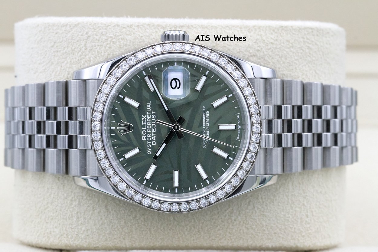 ** Rolex Datejust 36MM 126284RBR Factory Diamond Bezel Jubilee Palm Green Dial