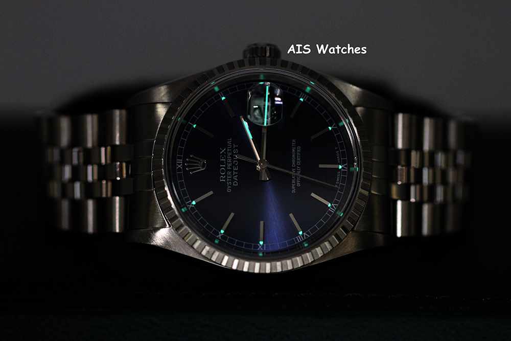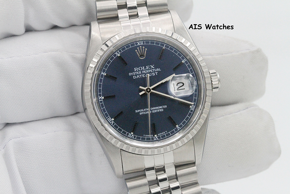 Up for sale is a Classic Rolex Datejust 36MM 16220 Blue Stick Dial A Serial Fluted Bezel / Jubilee Bracelet Stainless Steel Box & Papers. One Owner timepiece with minimal bracelet stretch. Watch is in excellent condition and was serviced by my watchmaker - 06/2021