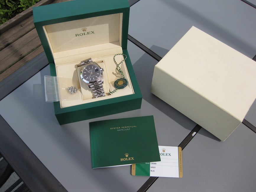 ·Regretfully putting up my Rolex DJ II, it's by far the most comfortable watch I've owned to date. Comes double boxed, 2 extra links, Rolex Hangtag, Rolex DJ booklet, and the Rolex warranty card dated and AD Stamped (05/29/2018). Watch is in excellent condition, worn in a rotation in a office work setting only, and is under Rolex factory warranty until 5/2023. No issues at all with the watch. Absolutely stunning dial, and the jubilee bracelet fits beautifully.