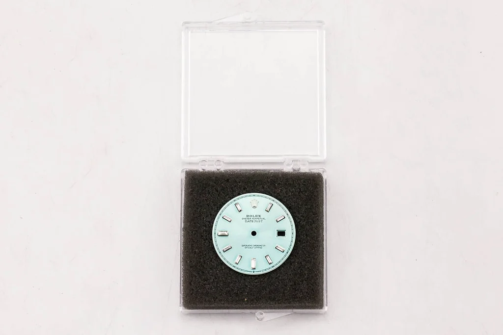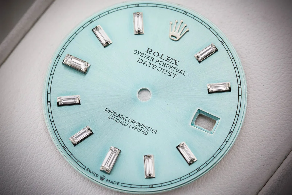 ·Up for sale is an excellent condition Rolex Datejust 41 Custom Made Ice Blue Dial with Zirconium Baguette Numerals. Made to fit 126300 references.