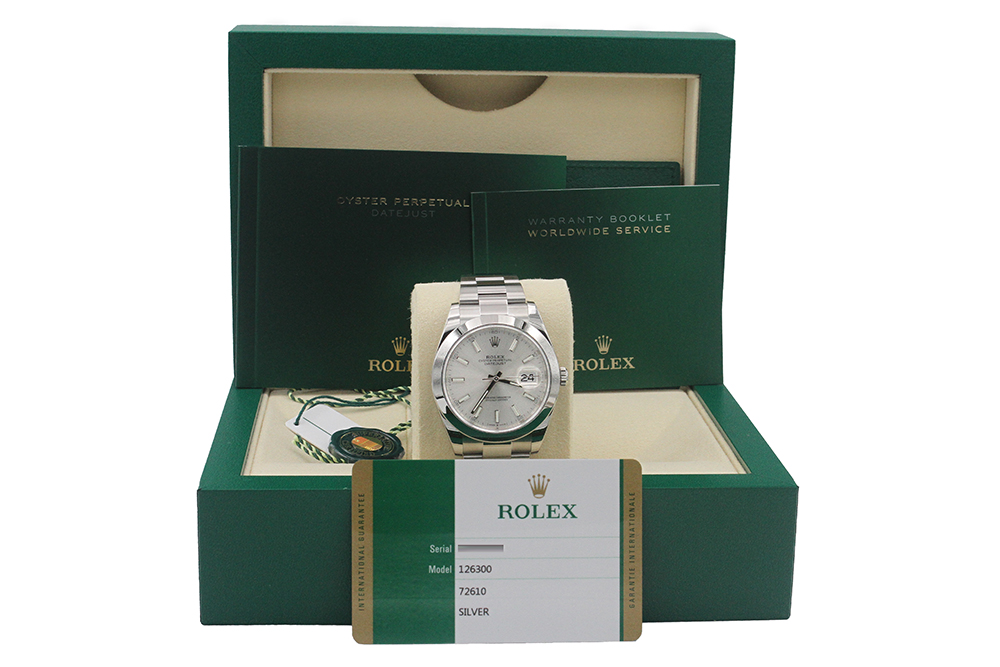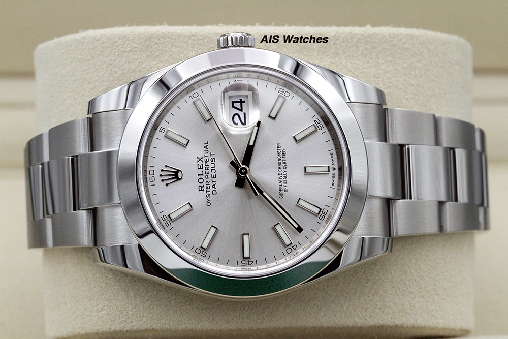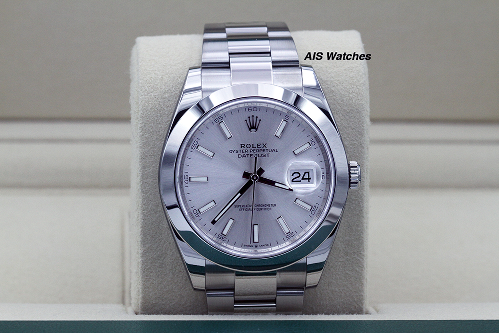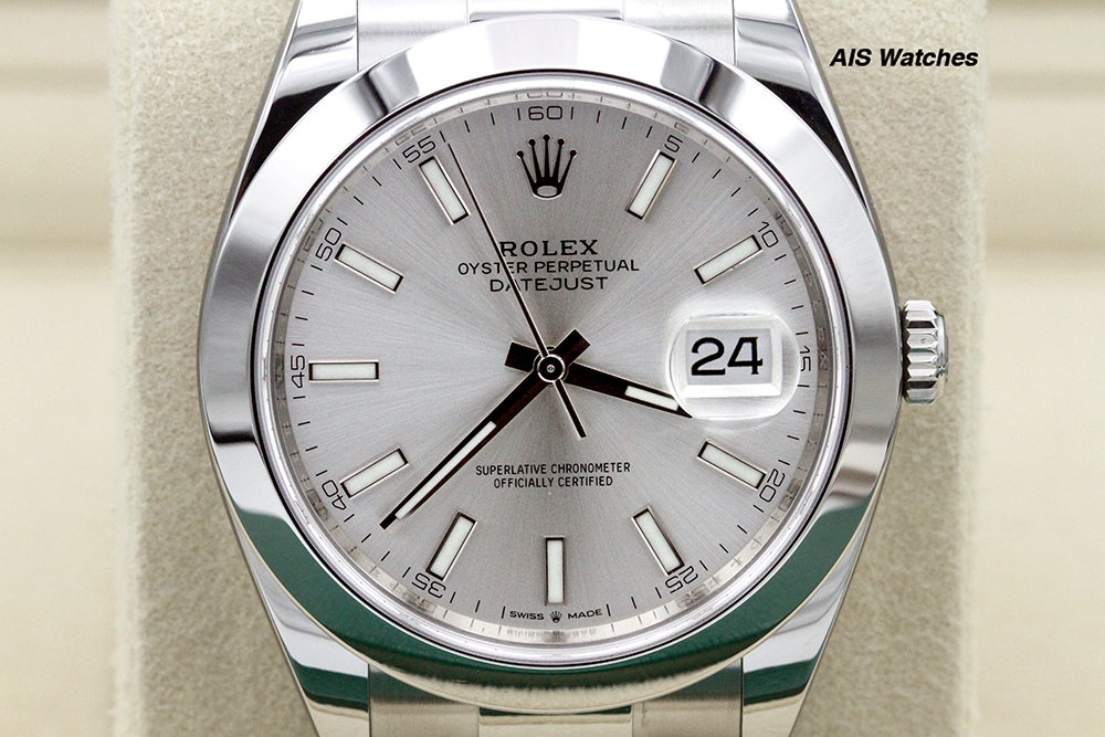 ** Rolex 126300 Datejust 41MM Silver Stick Dial Smooth Bezel / Oyster Bracelet