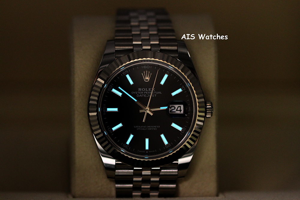 Up for sale is this Classic Rolex Datejust 41MM 126334 Black Stick Dial Jubilee with 18K WG Fluted Bezel Box & Papers. The timepiece is in excellent condition.