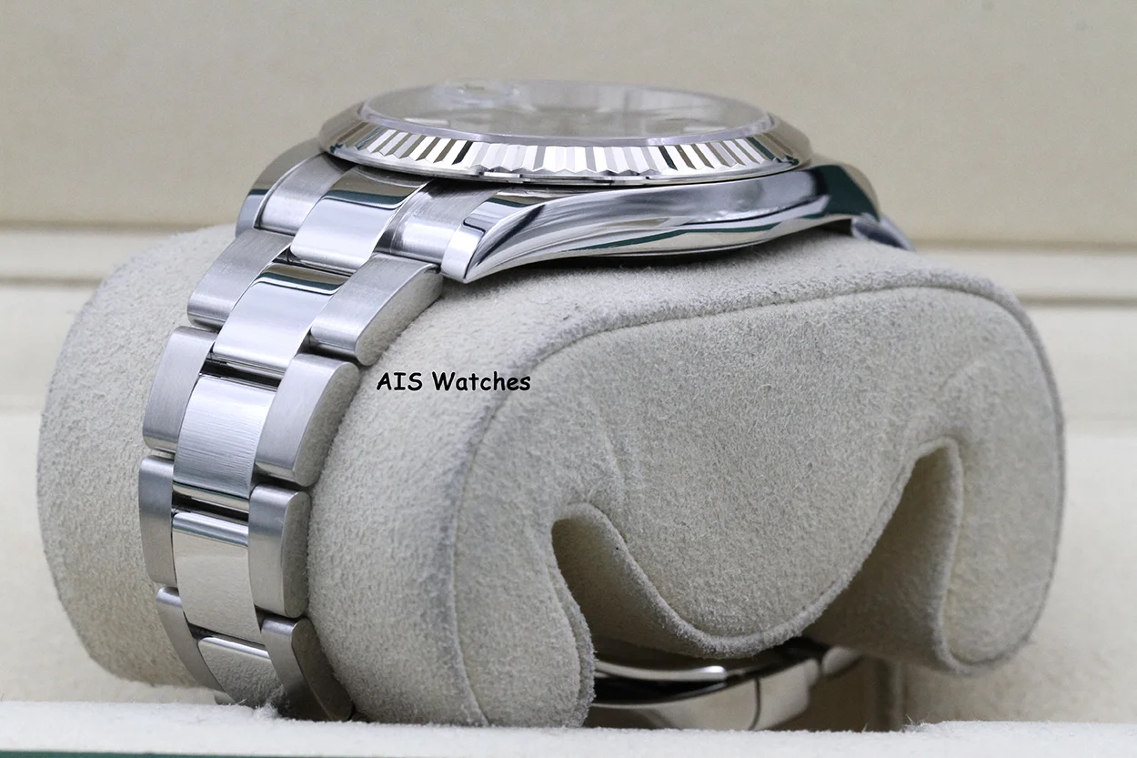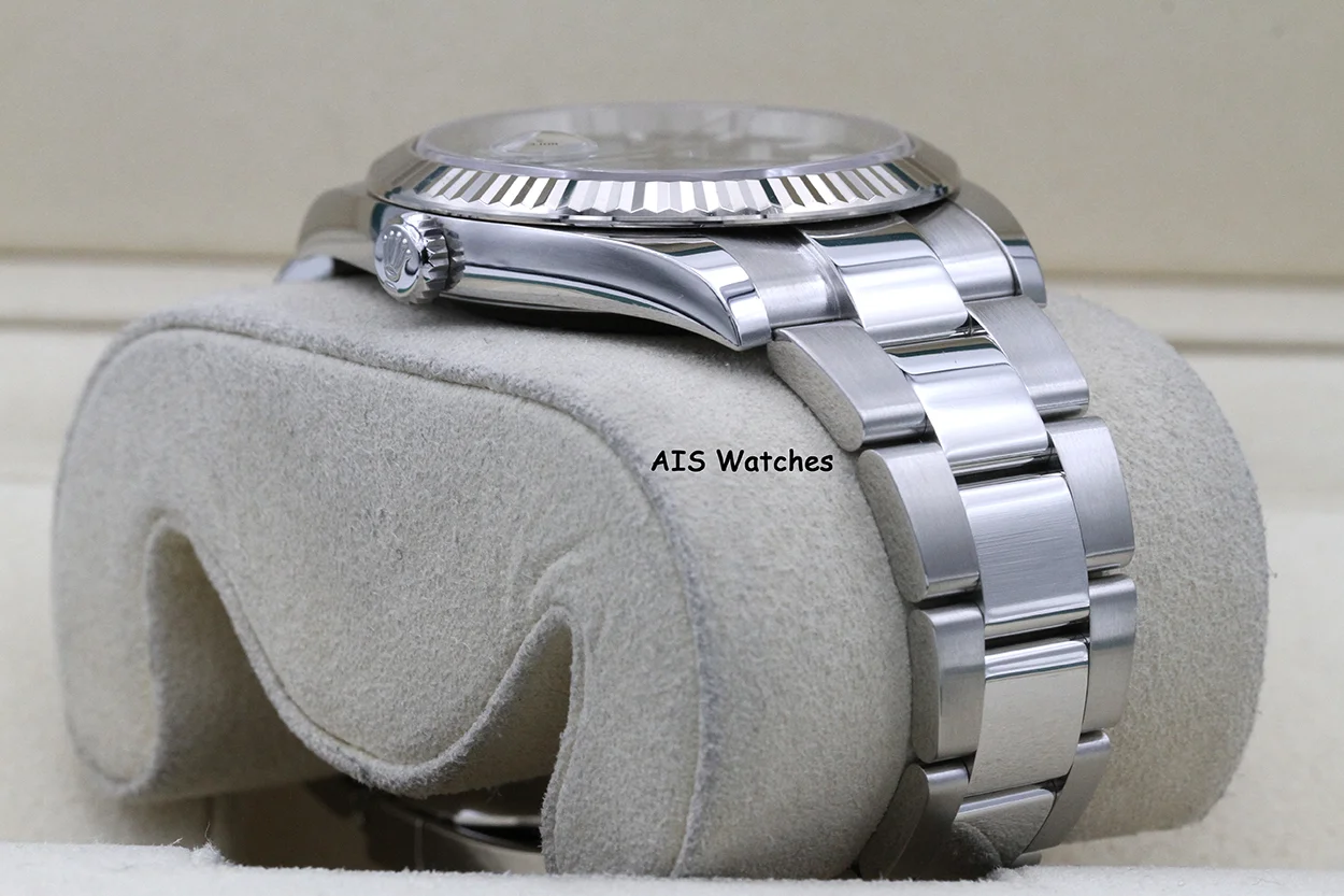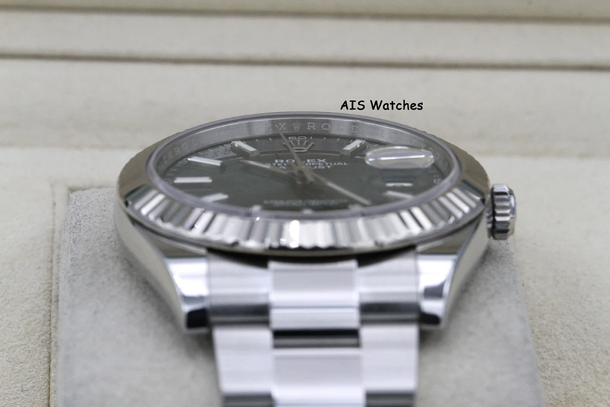Up for sale is a Rolex Datejust 41MM 126334 Mint Green Dial Oyster Bracelet with 18K WG Fluted Bezel Box & Papers. The timepiece is in excellent condition.