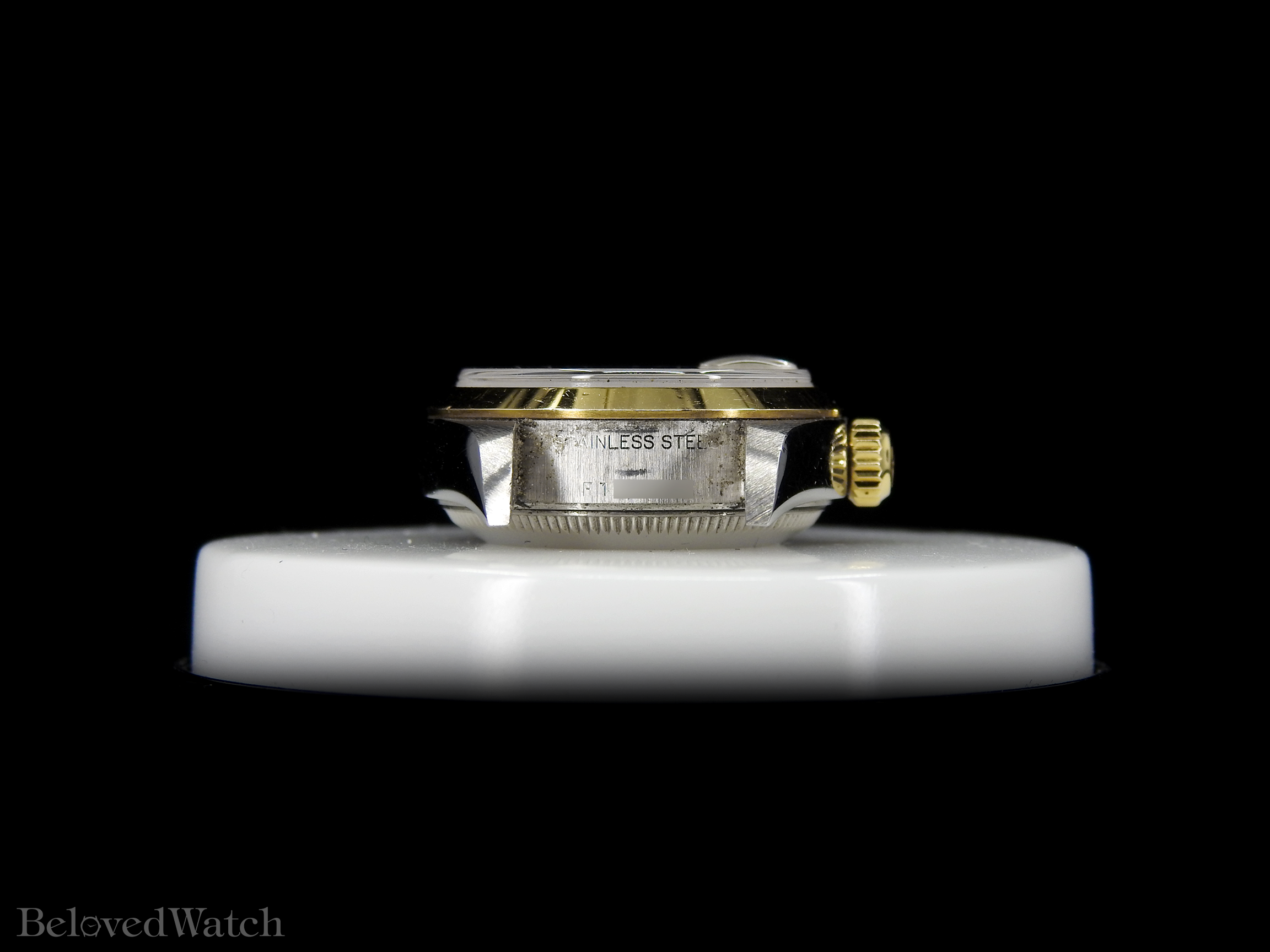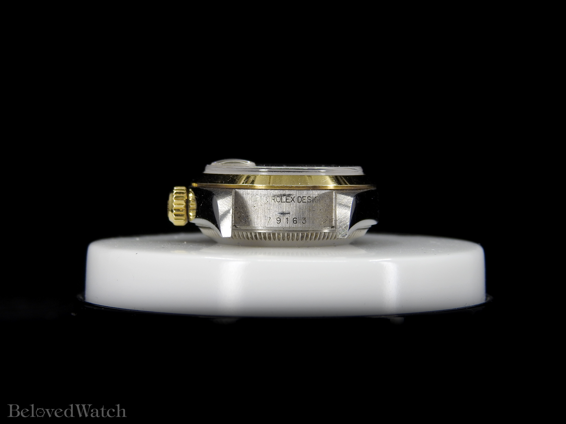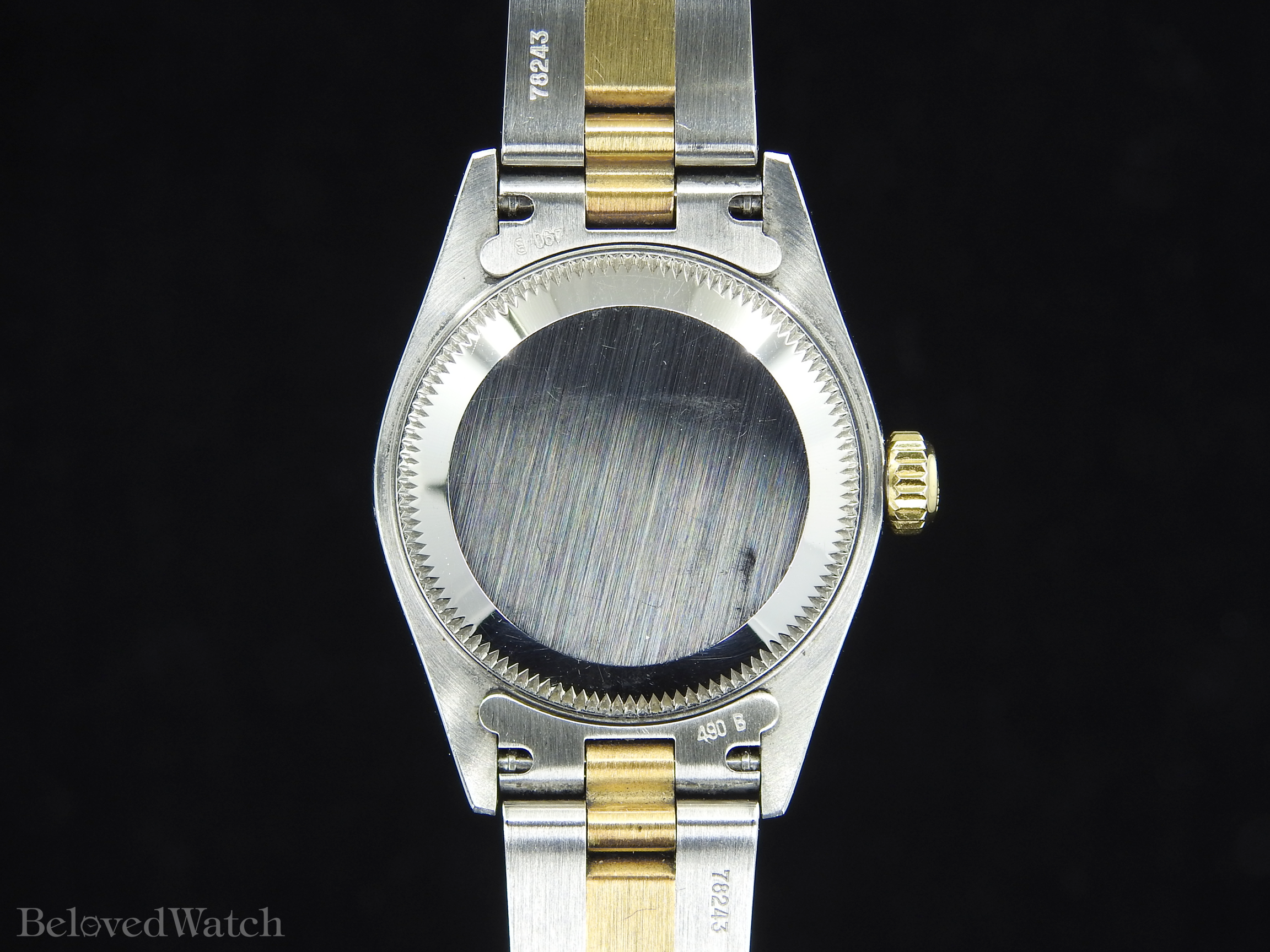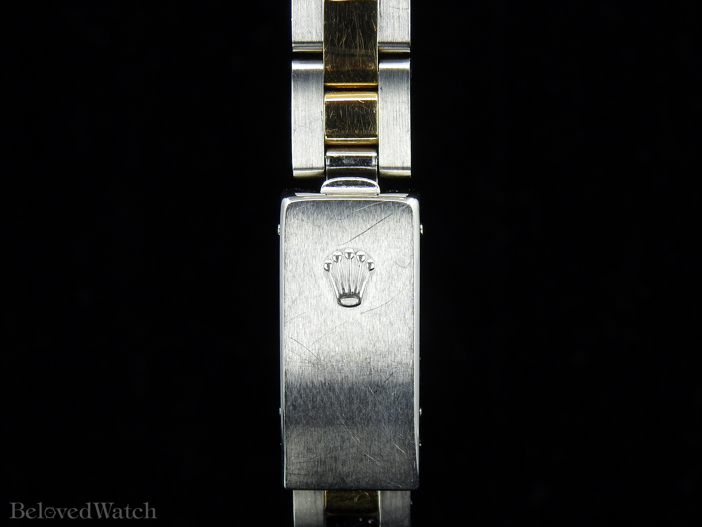 - Factory white mother of pearl dial with yellow gold Roman numeral hour markers.