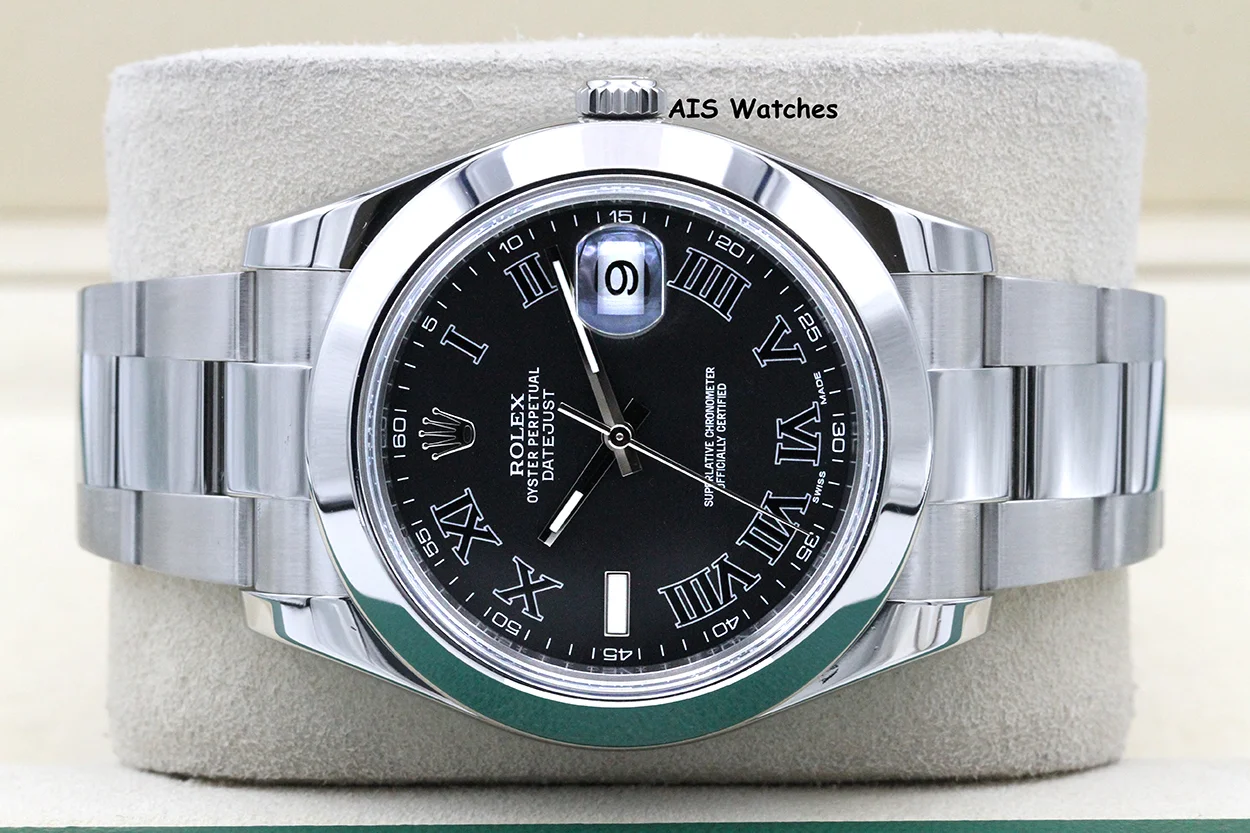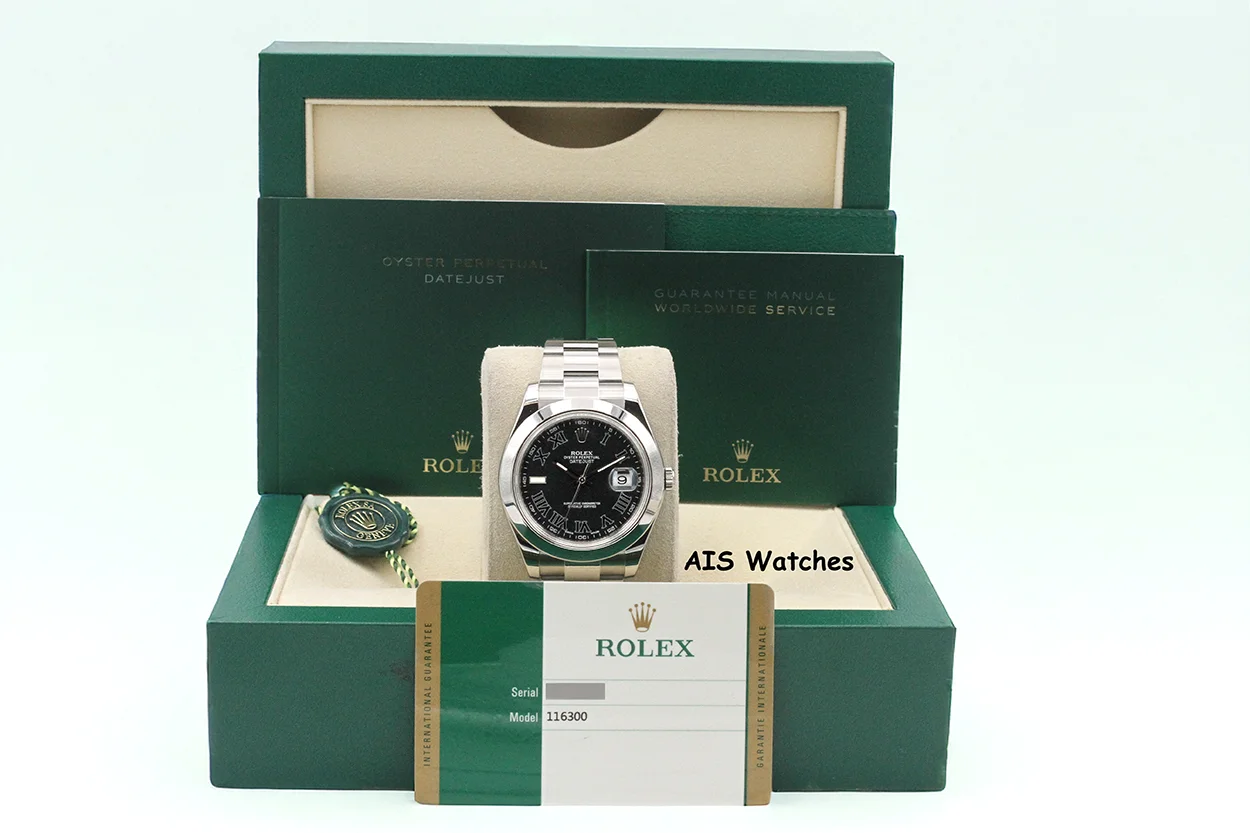 ** Rolex 116300 Datejust II 41MM Black Roman Dial Smooth Bezel & Oyster Bracelet
