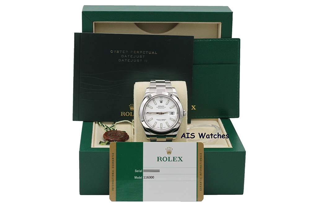 Up for sale is this Classic Rolex Datejust II 41MM 116300 Smooth Bezel White Stick Dial with Oyster Bracelet Stainless Steel Box & Papers. The timepiece is in excellent condition.