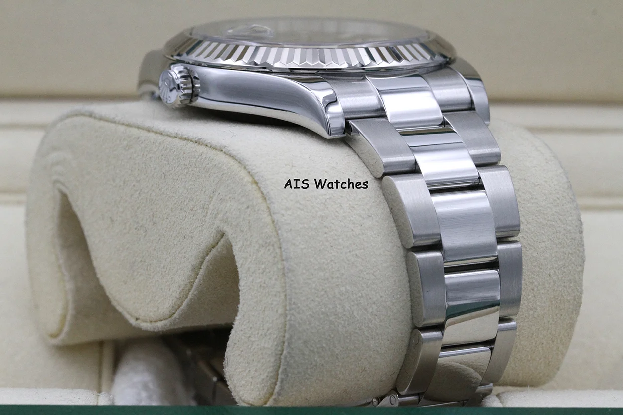 Up for sale is a Classic Rolex Datejust II 41MM 116334 Black Stick Dial Stainless Steel Stainless Steel with 18K WG Fluted Bezel Box & Papers. The timepiece is in excellent condition.
