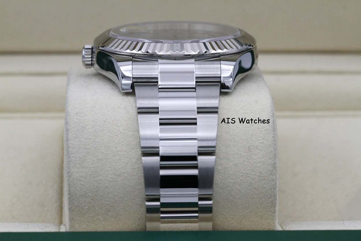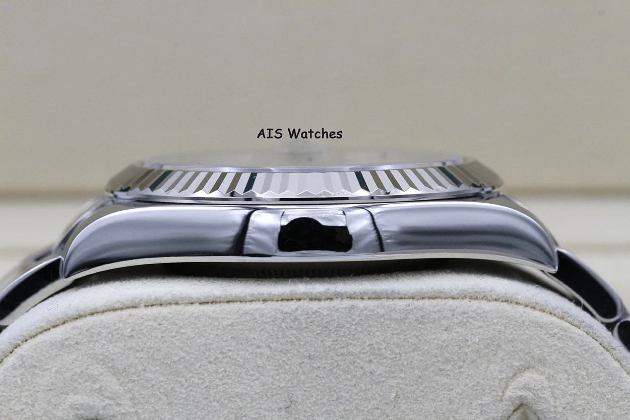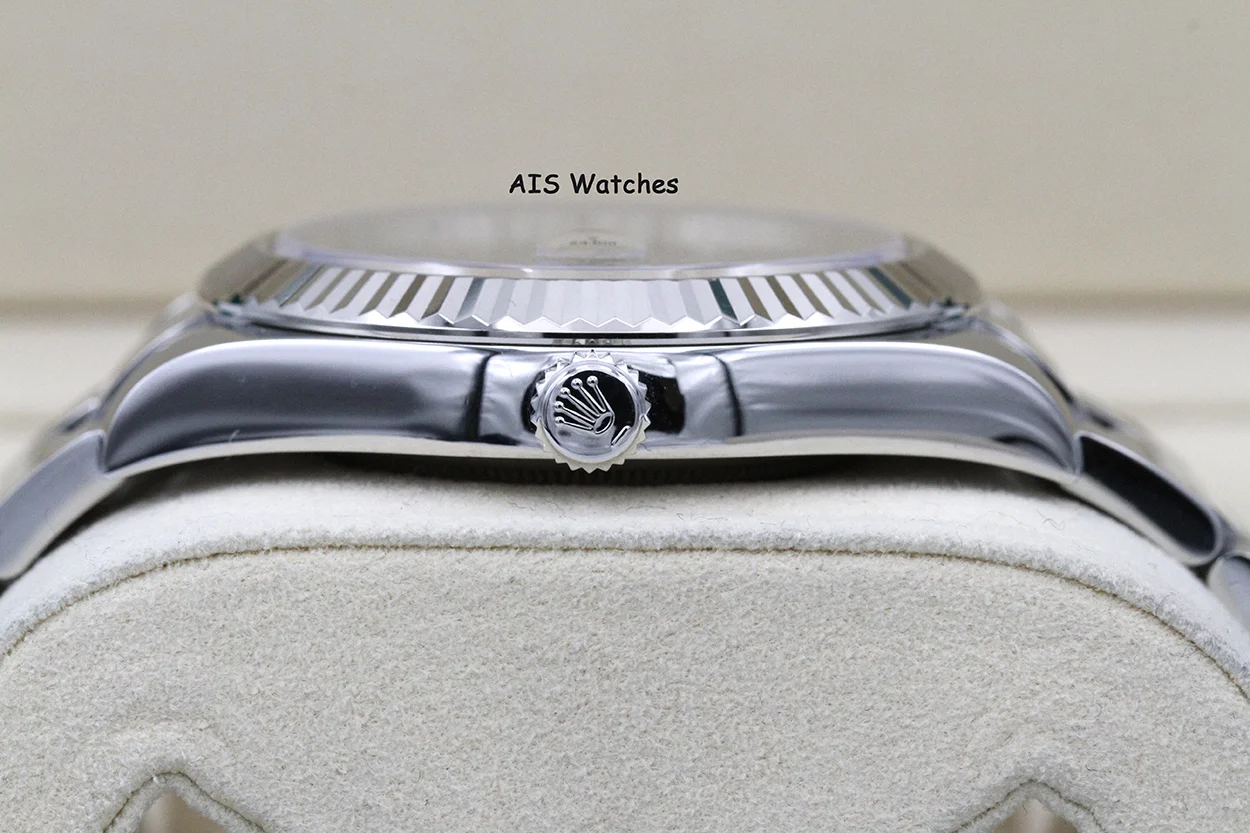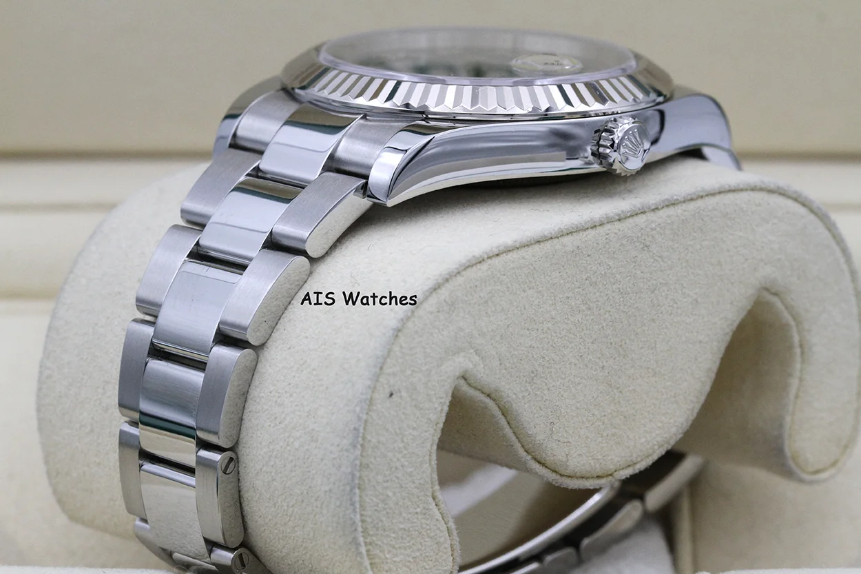 Up for sale is a Classic Rolex Datejust II 41MM 116334 Blue Roman Dial Stainless Steel Stainless Steel with 18K WG Fluted Bezel Box & Papers. The timepiece is in excellent condition.
