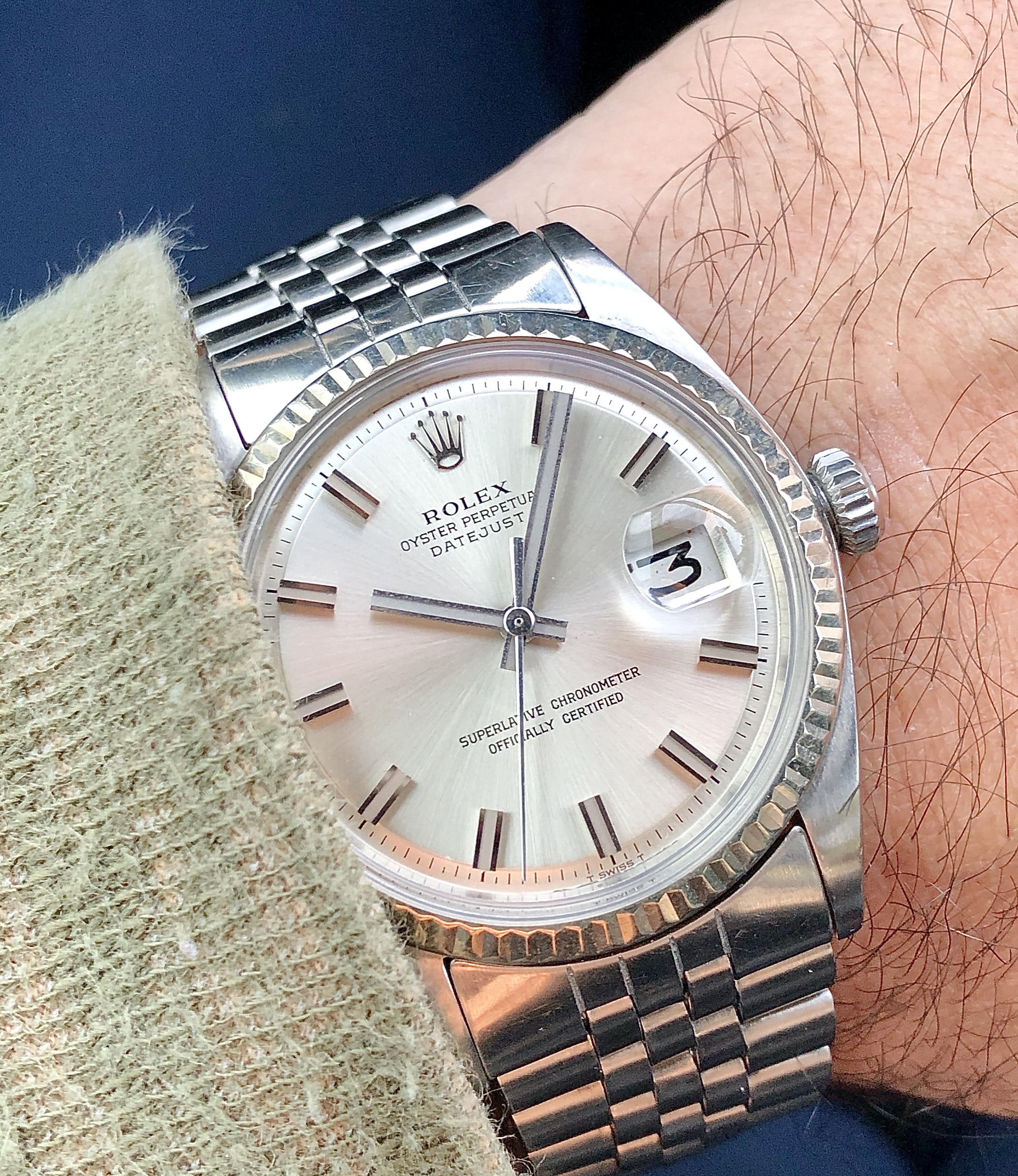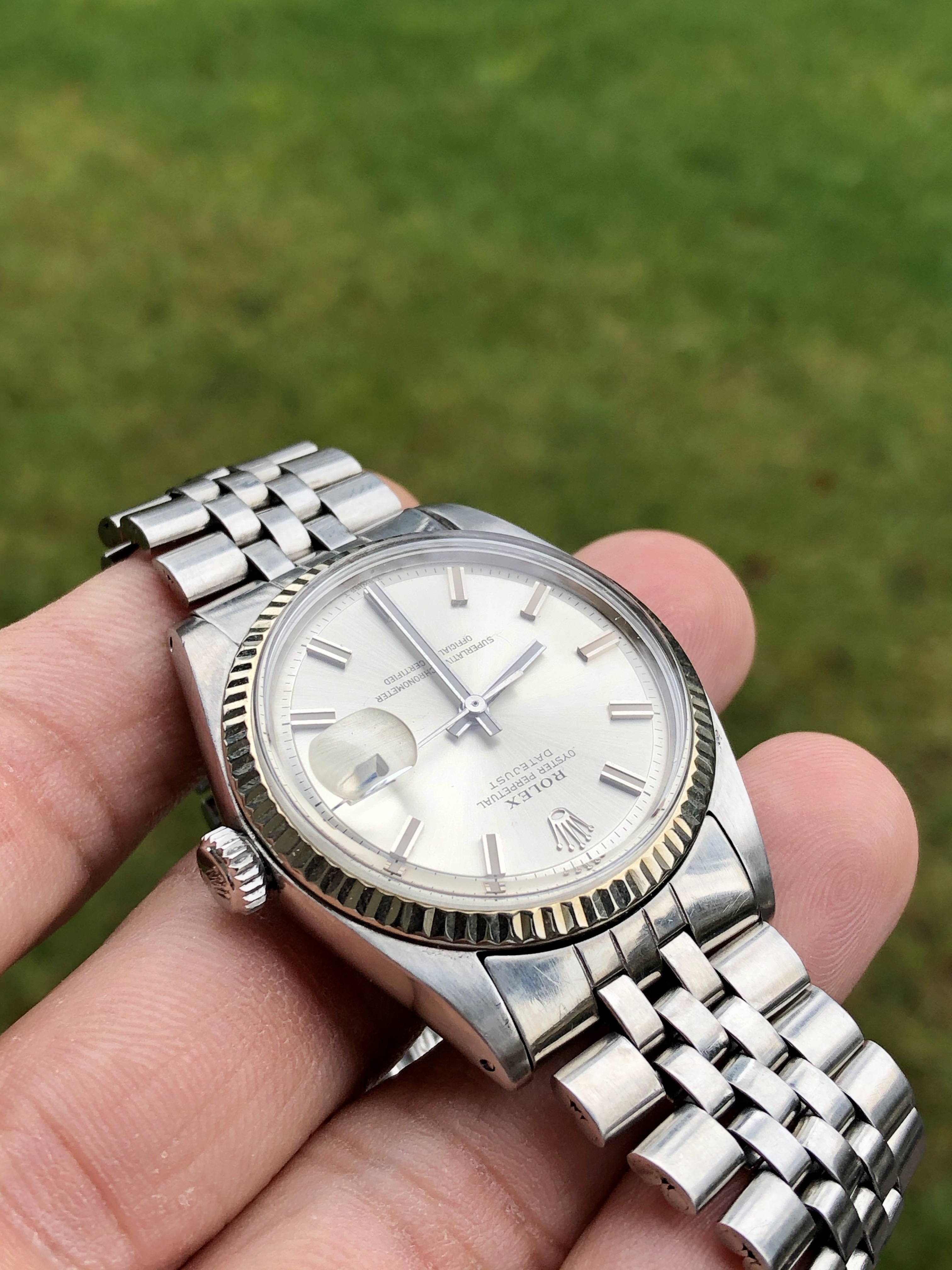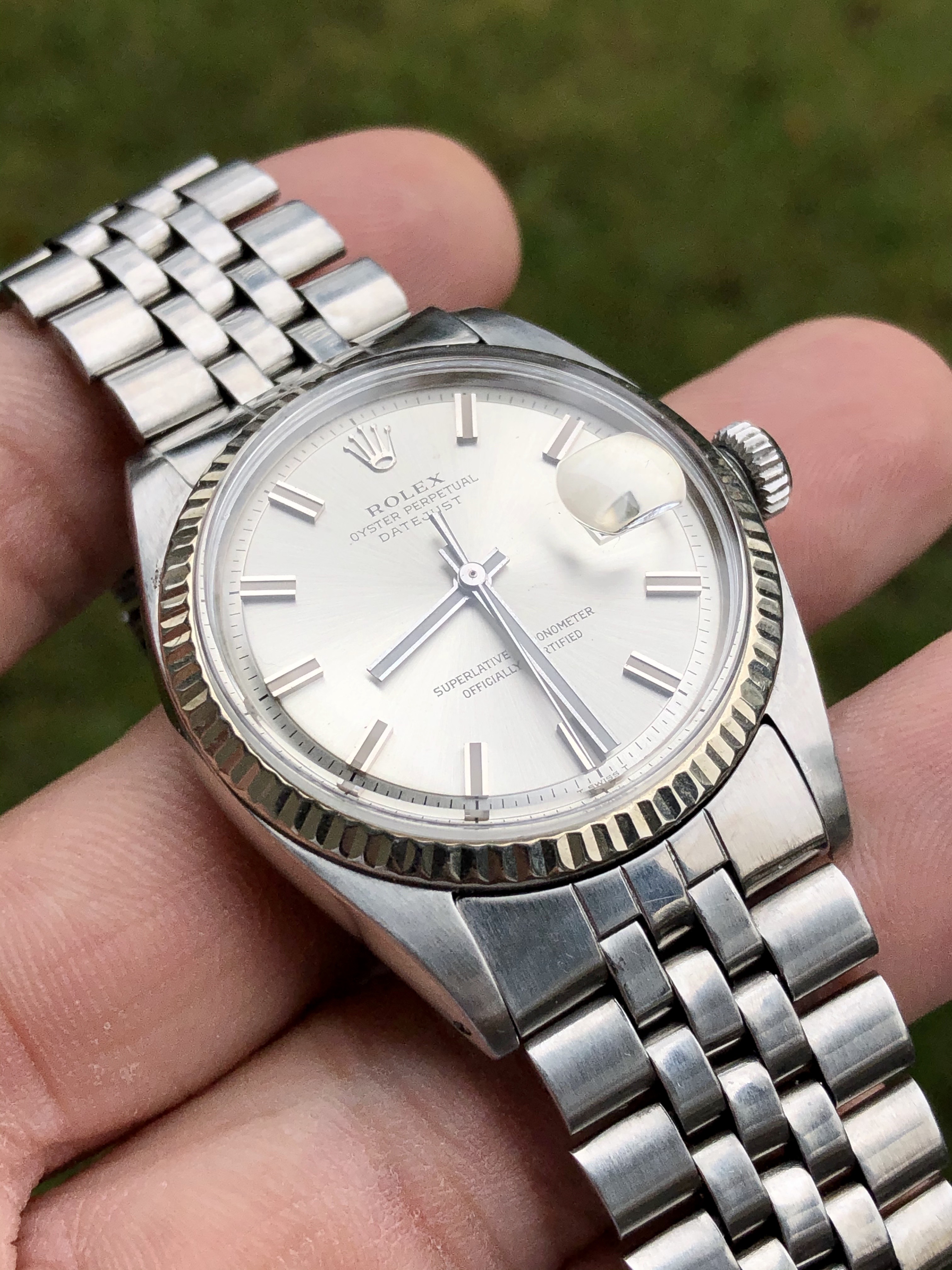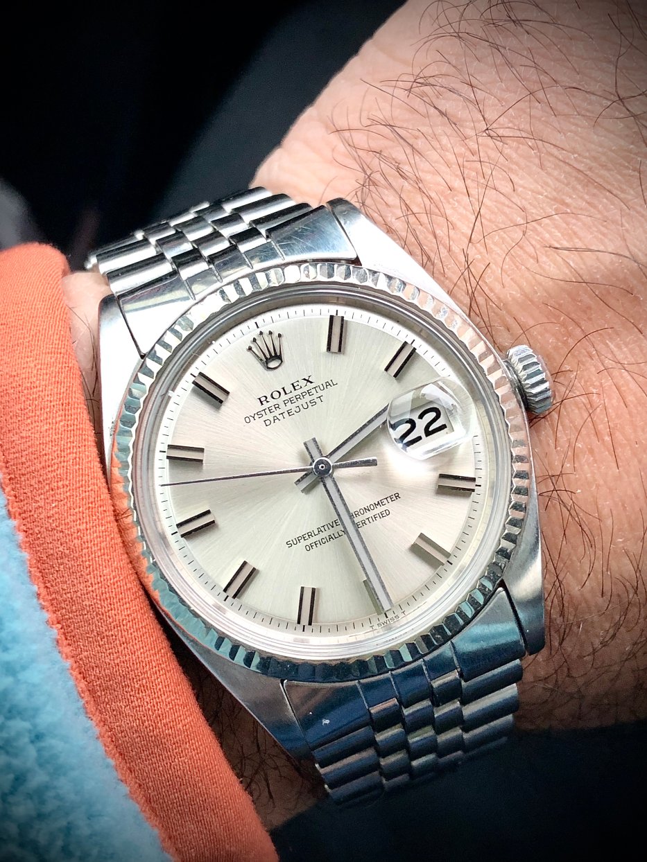 Up for sale is my Rolex Datejust ref 1601 with an uncommon no lume wideboy dial and handset.