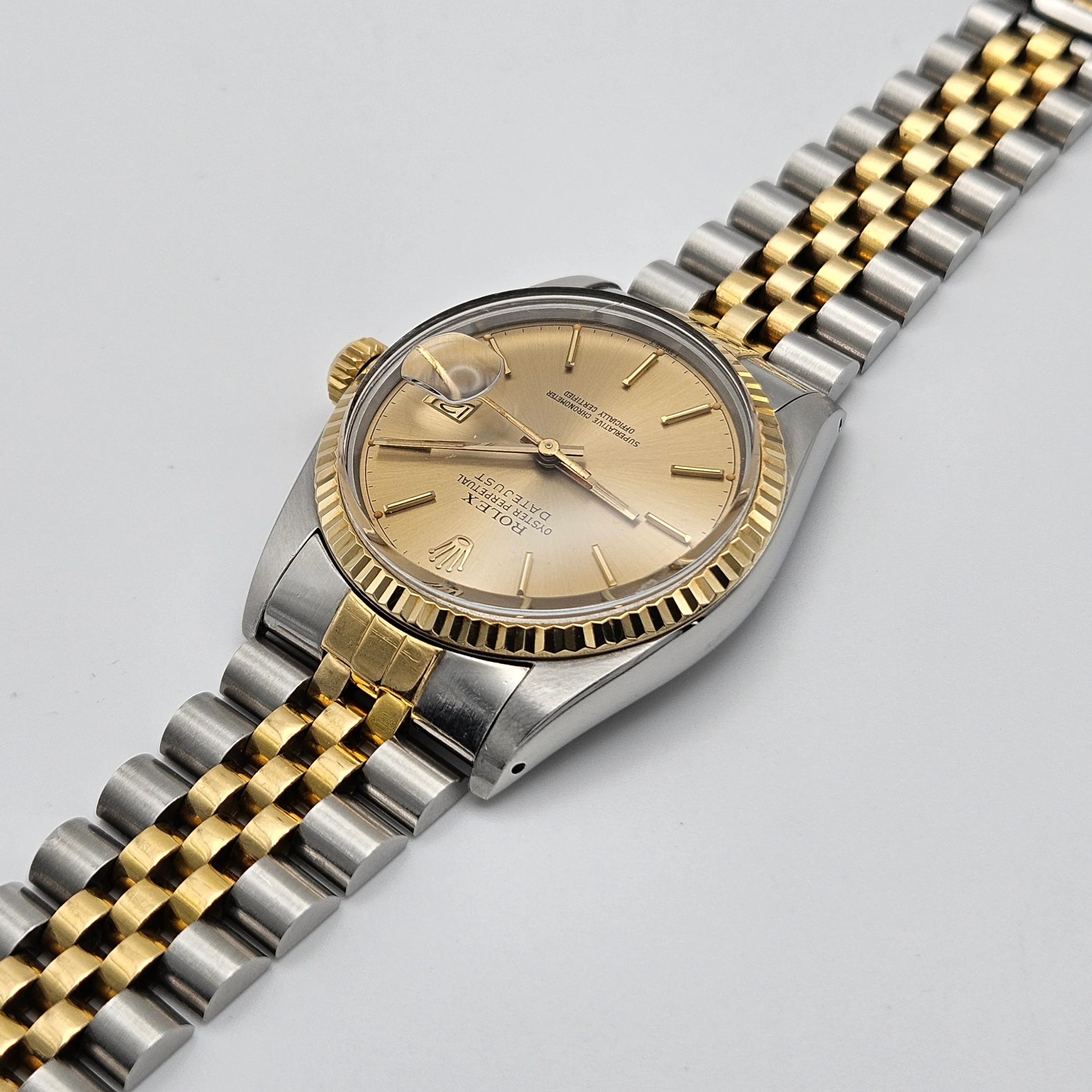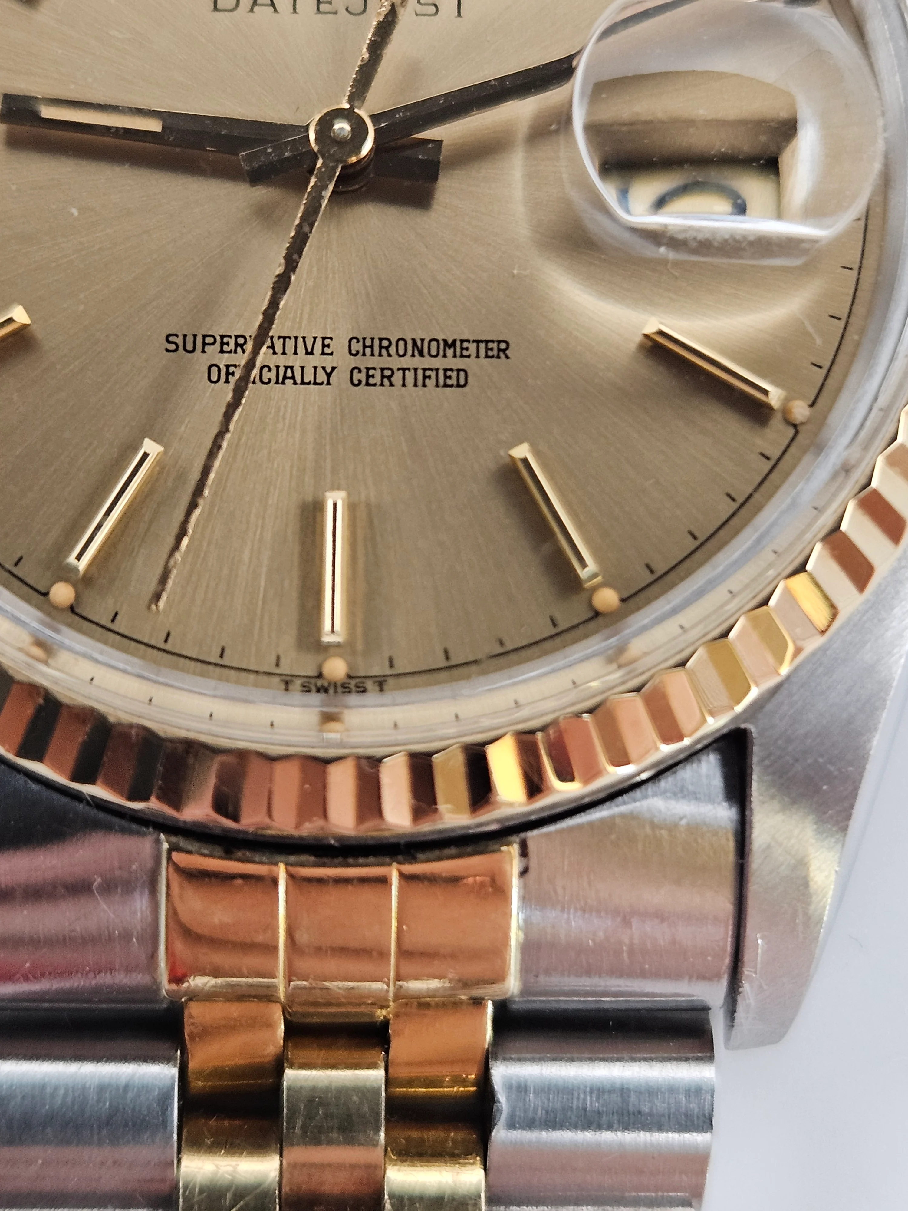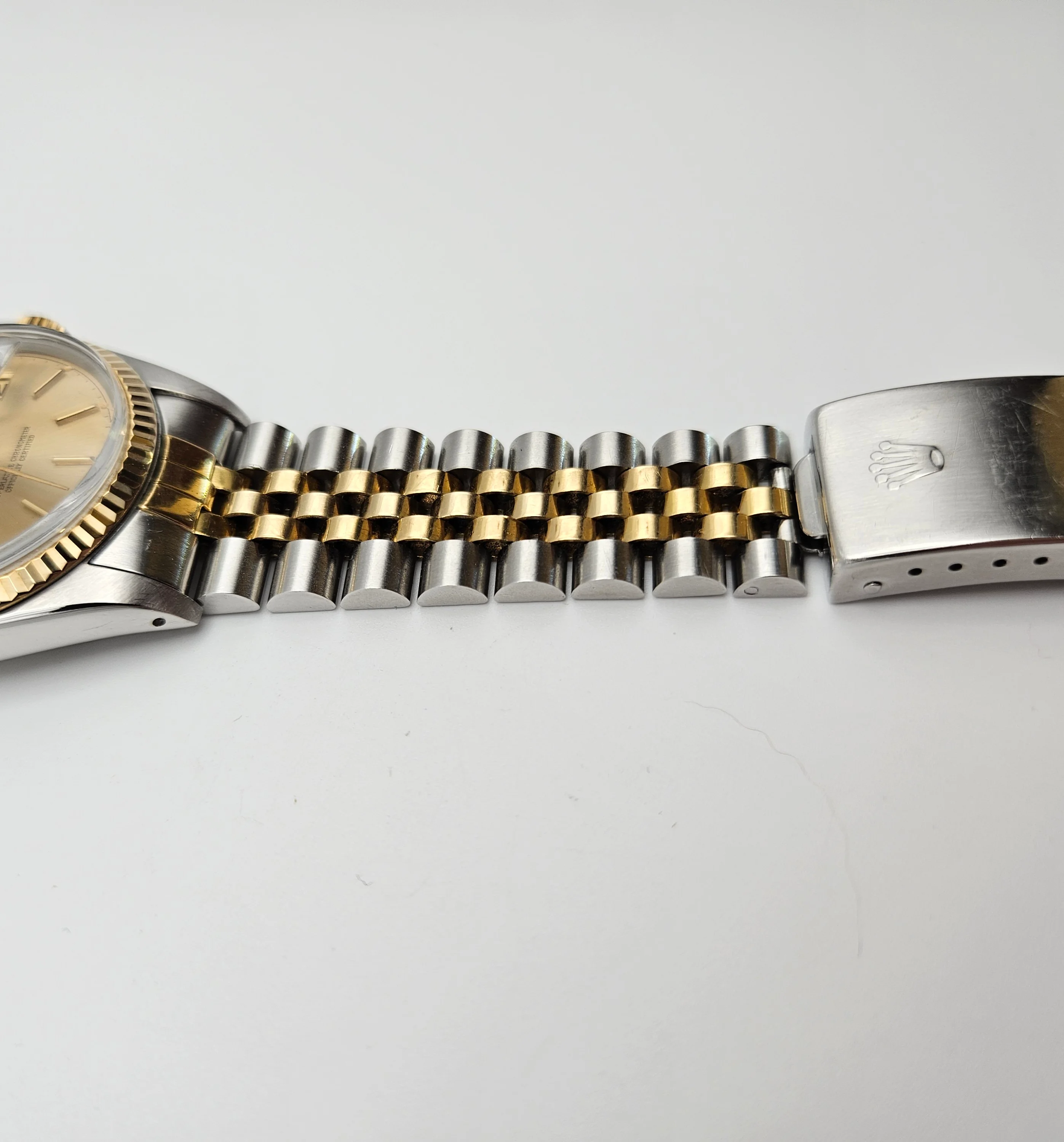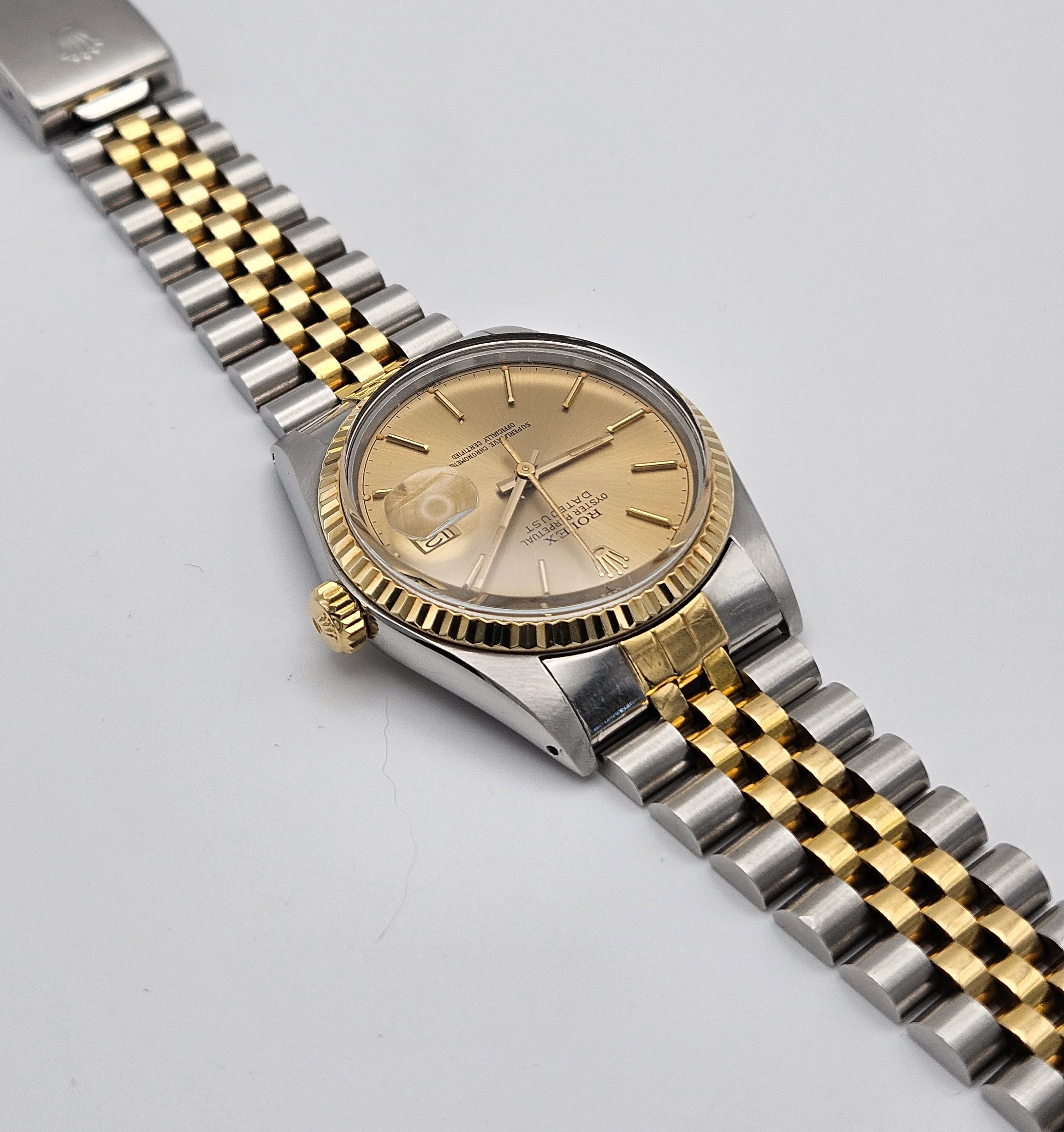 Mechanical Condition: Crown winds smooth. The date quickset function and and 12:00 date change over, are both in good working order.