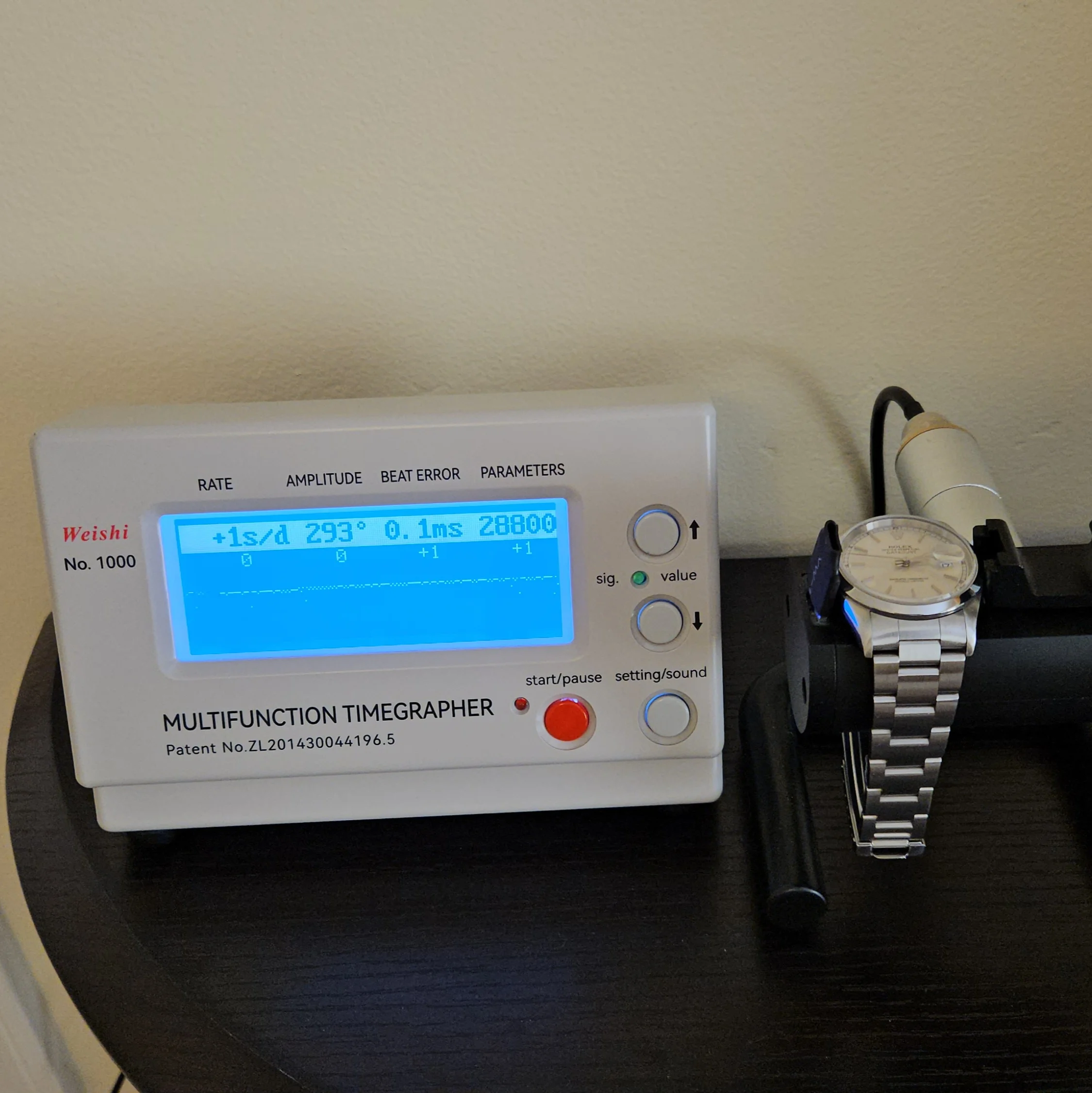 Mechanical Condition: Service history is unknown, but the movement is running very well (+1 sec/day, amplitude in the 290's). See timegrapher pic below. Crown winds smooth. The date change over is nice and crisp at midnight, and date quickset is in good working order.