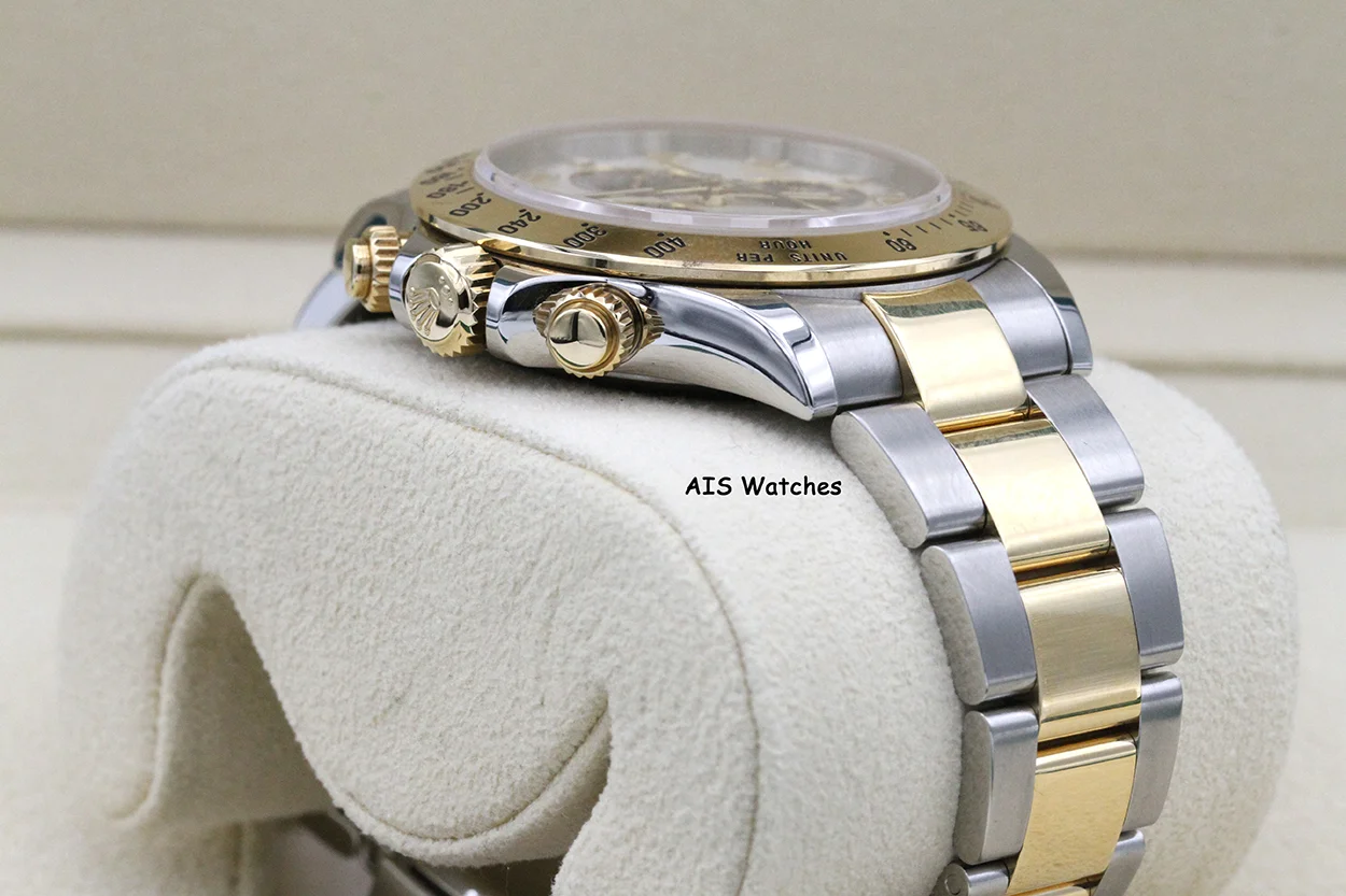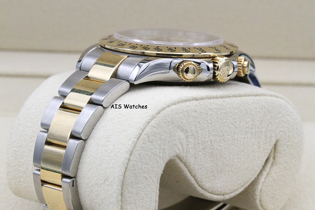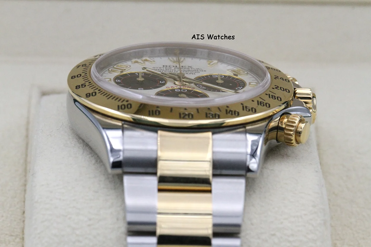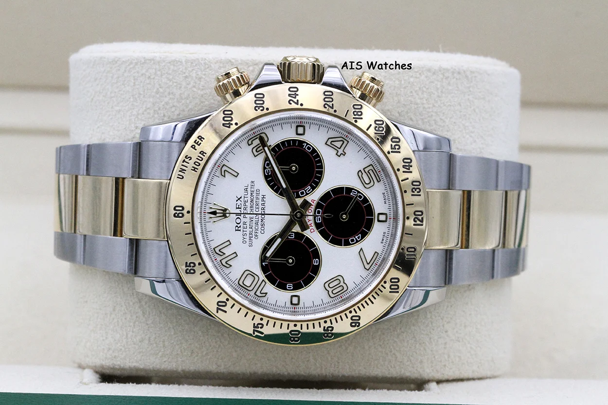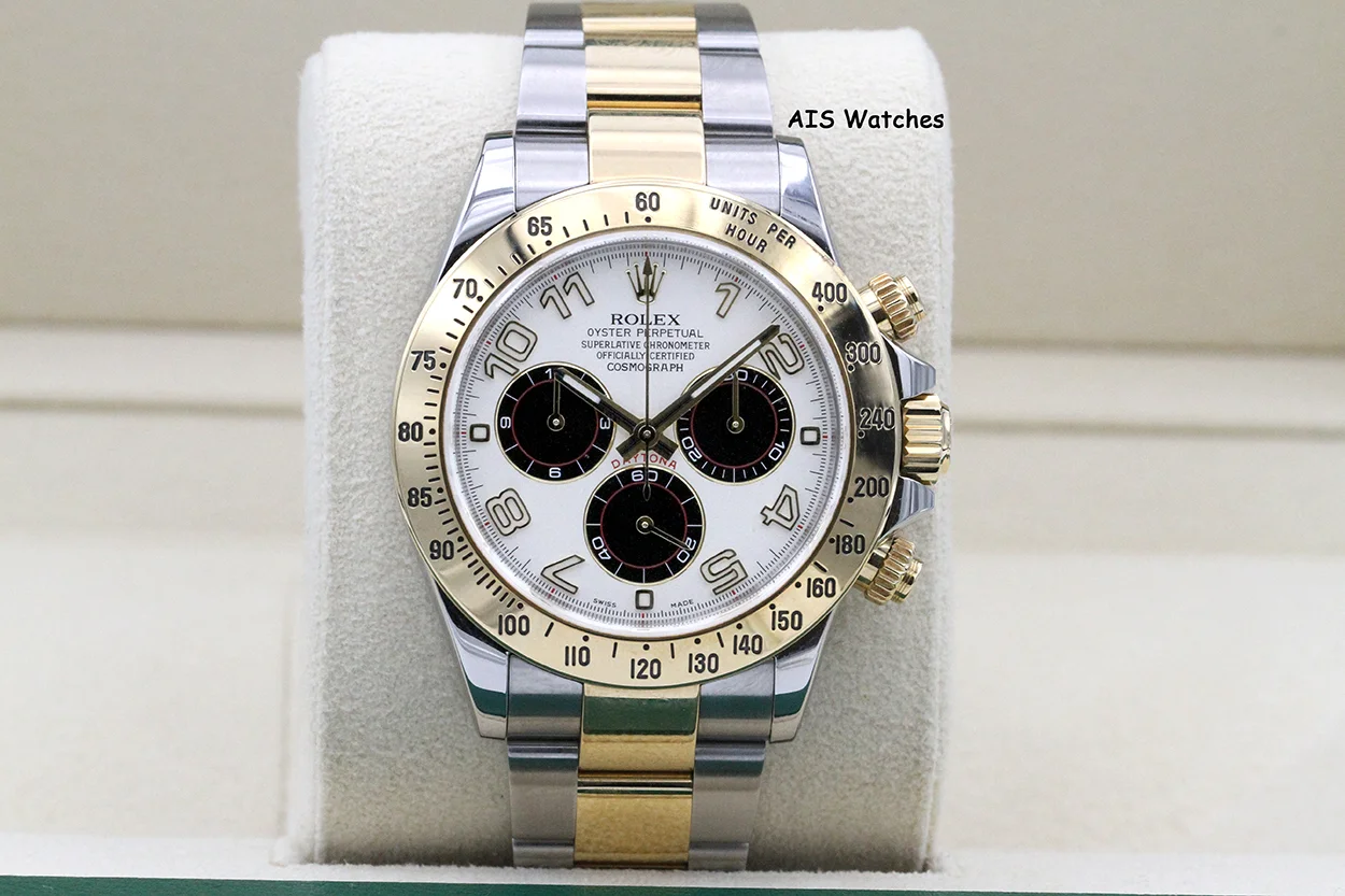 Rolex Daytona 116523 18K YG / SS Panda Arabic Racing Dial Box & Papers