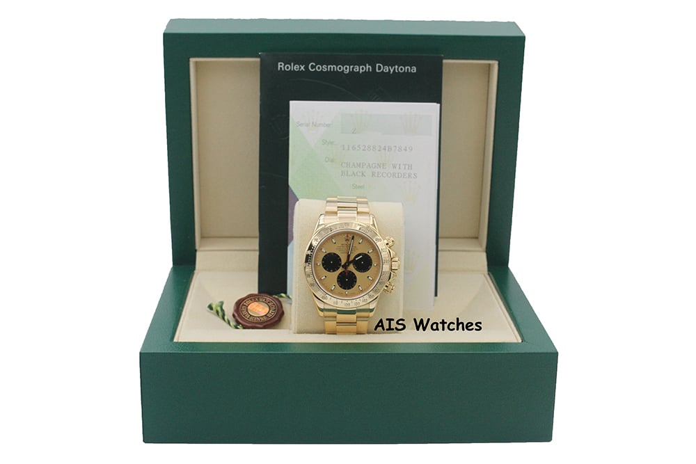 Up for sale is a Rolex Daytona 116528 Yellow Gold Champagne Dial Paul Newman Z Serial Box & Papers The timepiece in excellent condition.