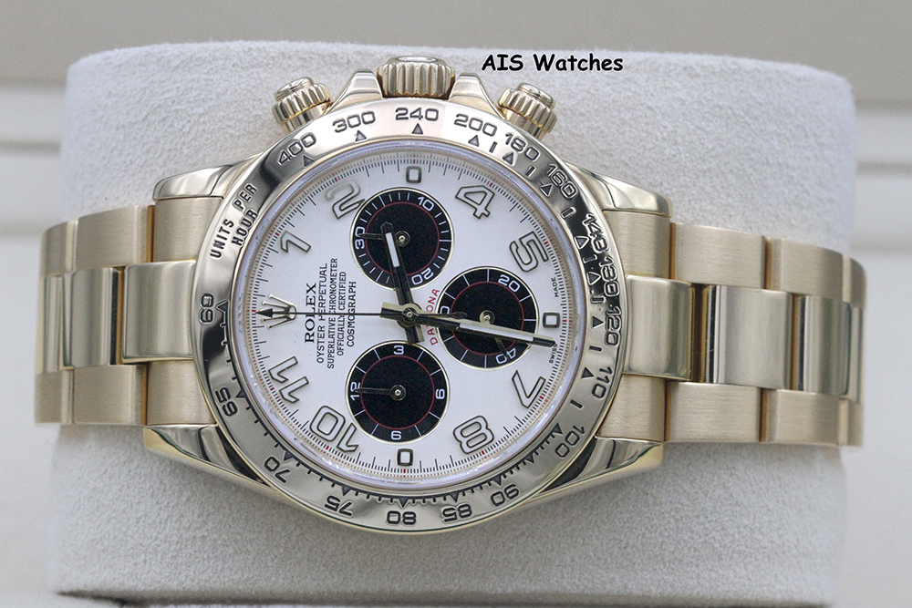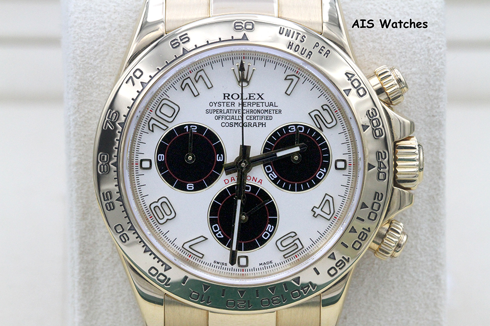 Up for sale is a Rolex Daytona 116528 Yellow Gold Panda Arabic Racing Dial D Serial - NO PAPERS. The timepiece in excellent condition.