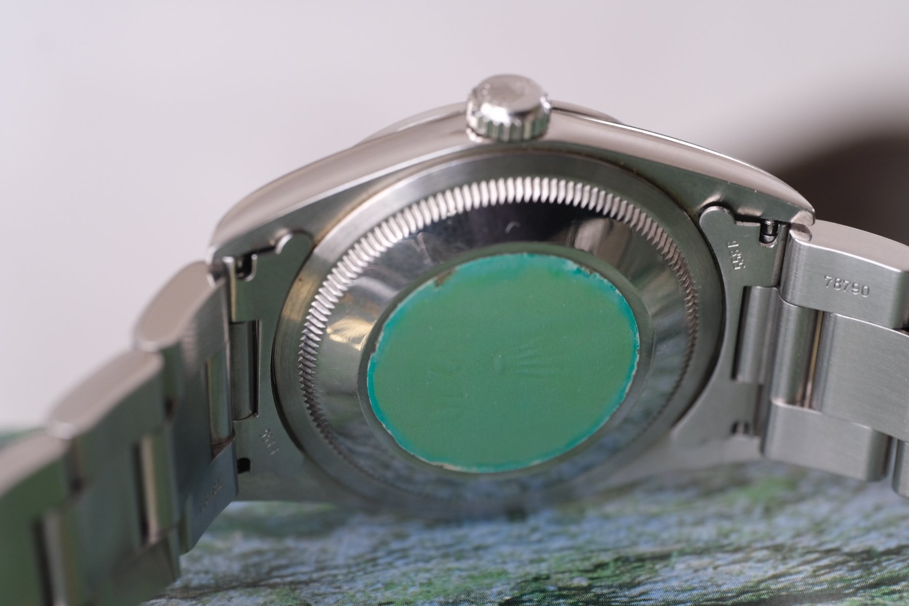BRACELET: Comes on its original, correctly date stamped 78790 Rolex oyster bracelet with 558 B end links. 12 links so will fit up to app. 7.5 inches. Very light wear throughout, as expected, but all in looks great.