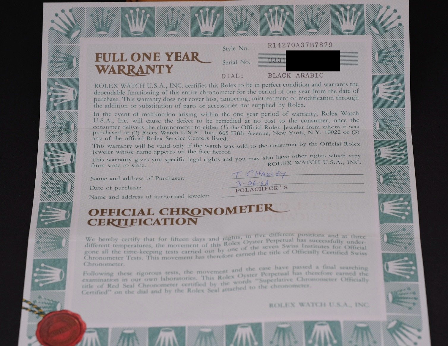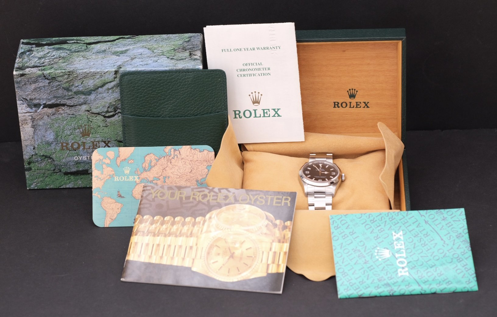 ACCESSORIES: This is definitely how you want to find 'em! Comes with outer Rolex box, inner Rolex box, original Rolex papers, 2 Rolex booklets and dealer calendar card, even the Rolex paperwork holder - pretty awesome to find one this complete!
