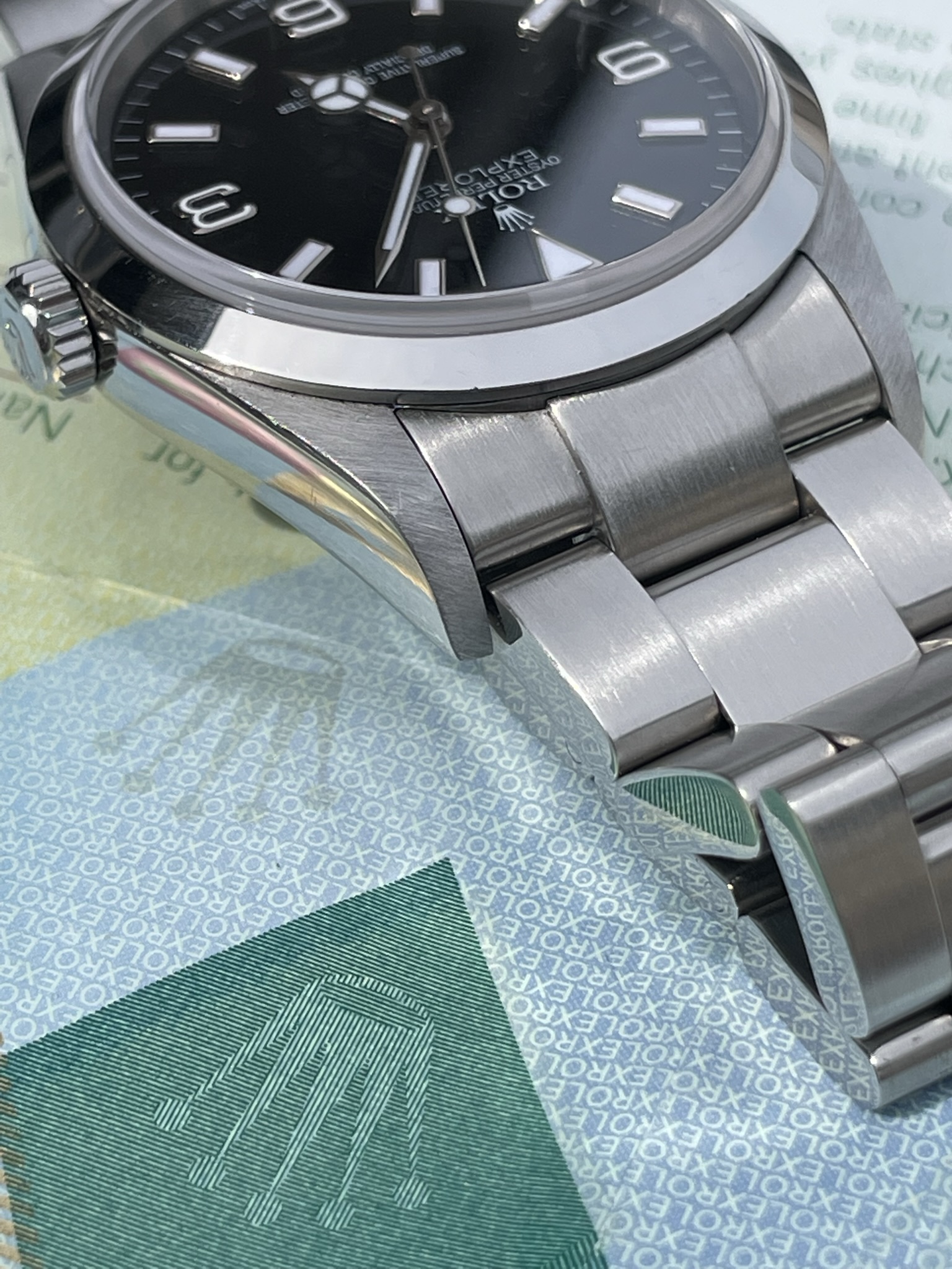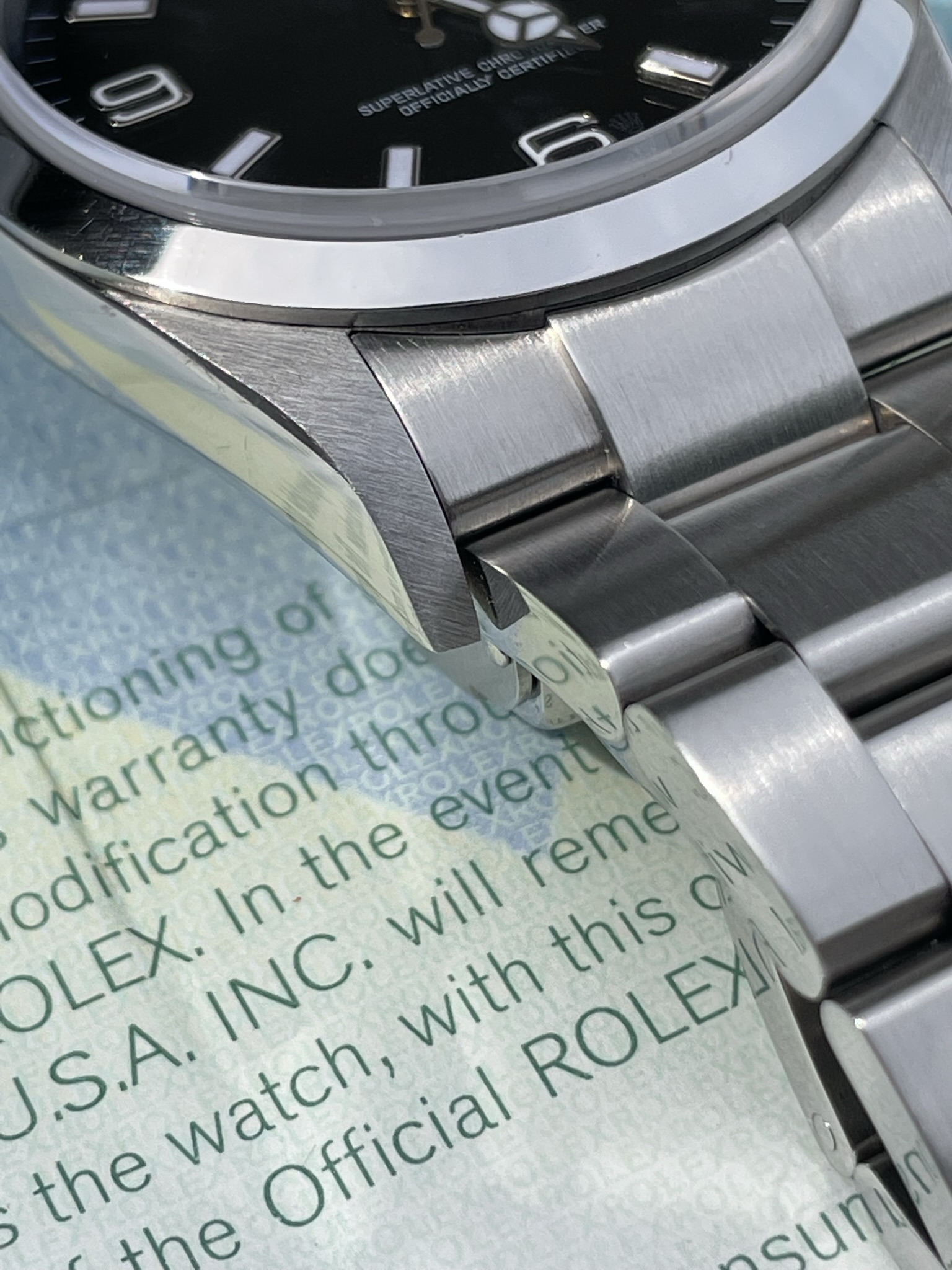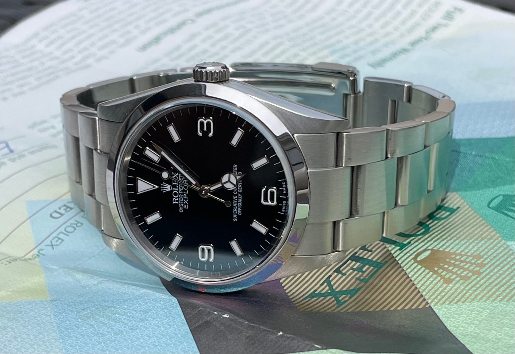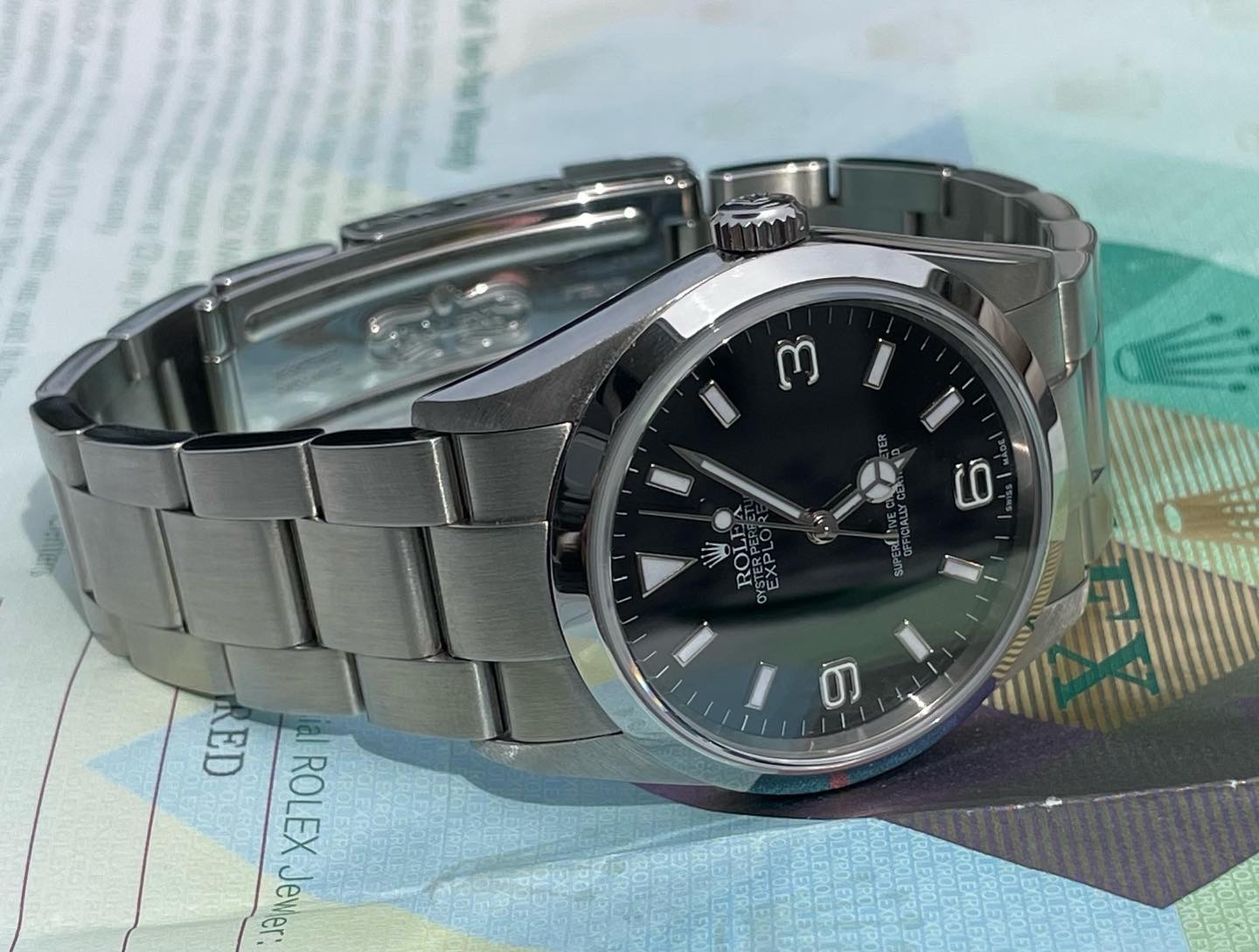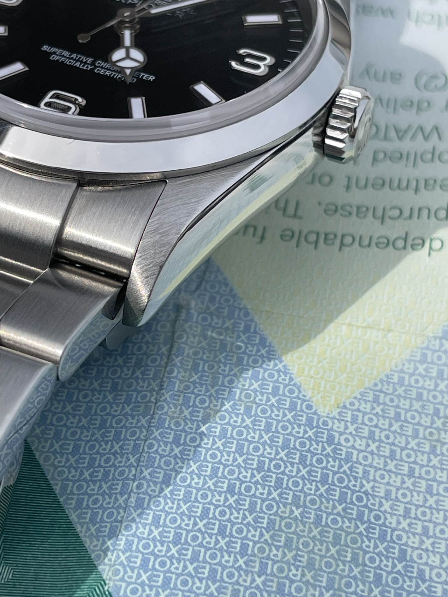 ·Hello up for sale is a Rolex Explorer 114270, D serial with original warranty paper (dated 2007) and matching hang tag. Watch is in excellent appearance with zero stretch in bracelet. Case and bracelet show only superficial signs of wear. Service history unknown but watch is running at time of listing.