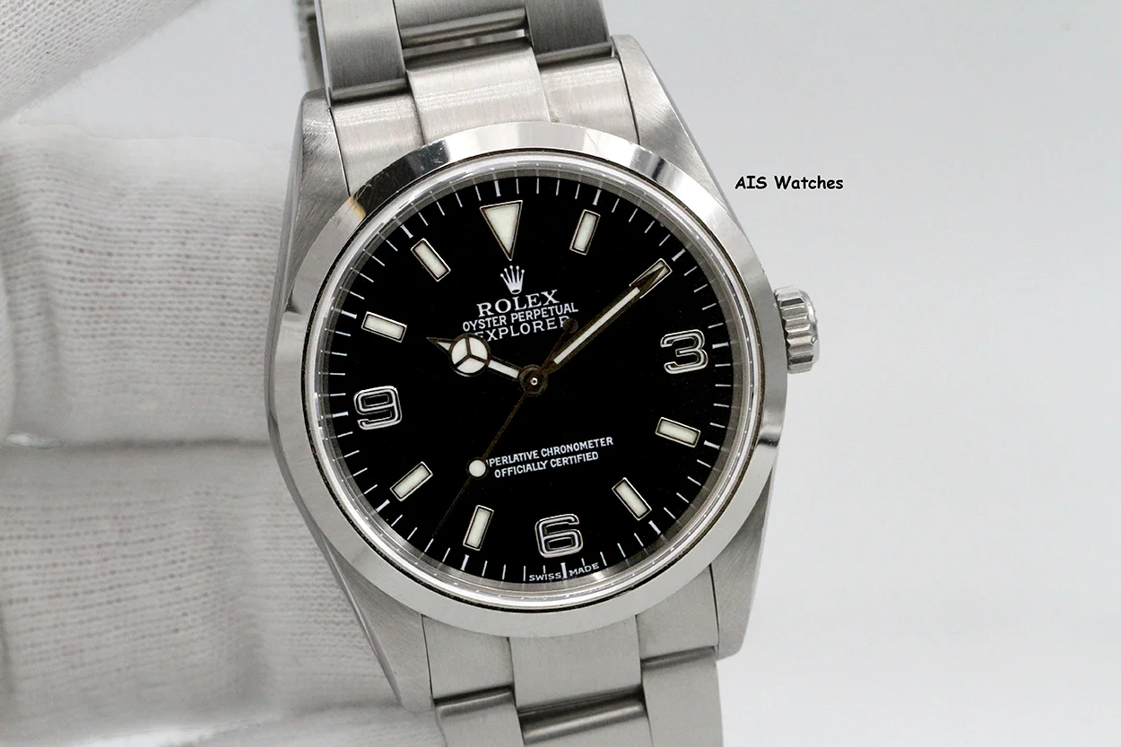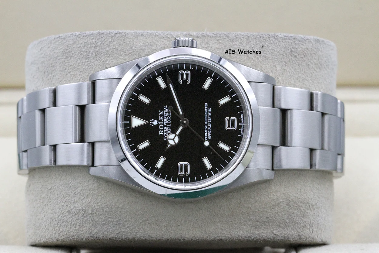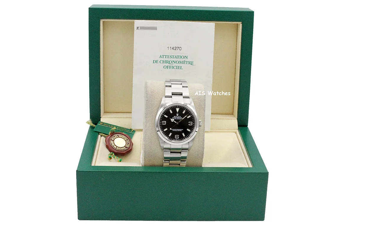 Up for sale is a Rolex Explorer 114270 K Serial 36MM Box & Papers. The timepiece is in excellent condition with minimal bracelet stretch.