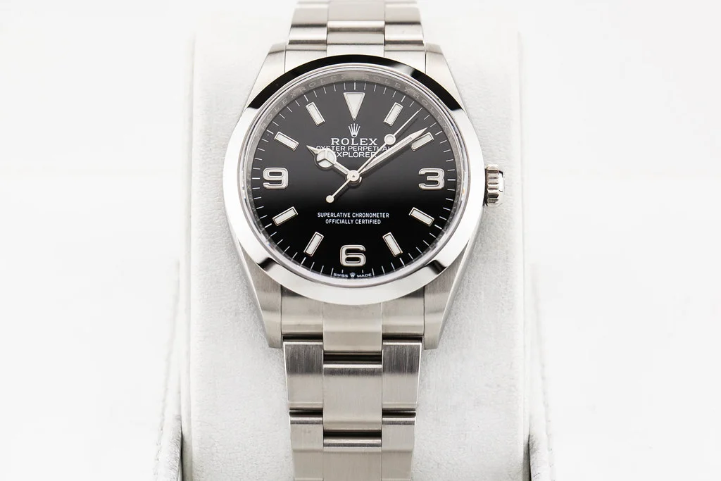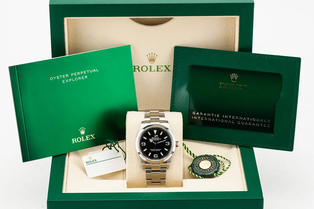 ·Up for sale is an excellent condition Rolex Explorer 36mm Black Dial Oyster Bracelet reference # 124270. It comes complete with all boxes, papers, booklets, hang tags, and Rolex Warranty Card dated July 2024.