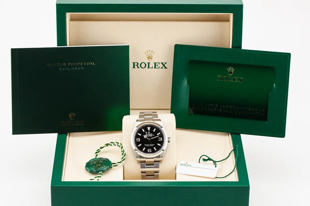 ·Up for sale is an excellent condition Rolex Explorer 36mm Black Dial Oyster Bracelet reference # 124270. It comes complete with all newly revised boxes, papers, booklets, hang tags, and Rolex Warranty Card dated March 2025.