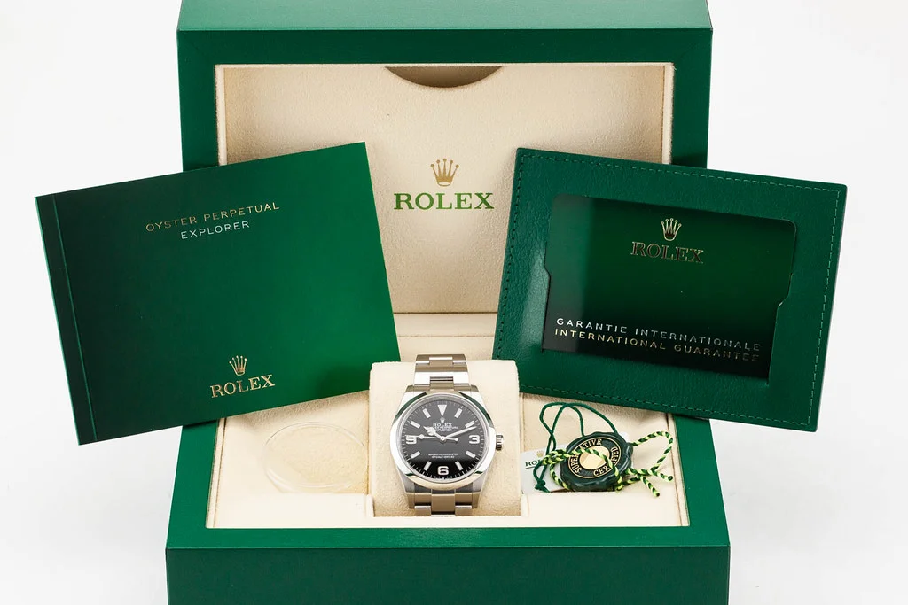 ·Up for sale is an excellent condition Rolex Explorer 36mm Black Dial Oyster Bracelet reference # 124270. It comes complete with all boxes, papers, booklets, hang tags, bezel guard and Rolex Warranty Card dated June 2024.