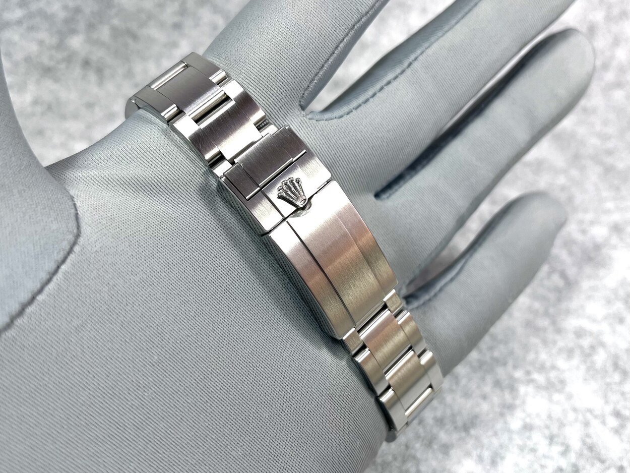 Stainless steel Oyster bracelet, featuring flat three-piece links (supplied with 11)