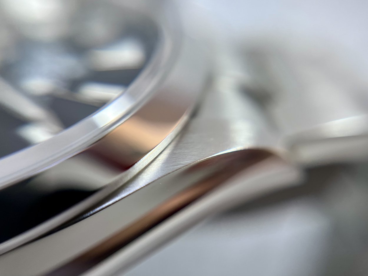 Smooth stainless steel bezel, contributing to the watch's rugged and utilitarian aesthetic.