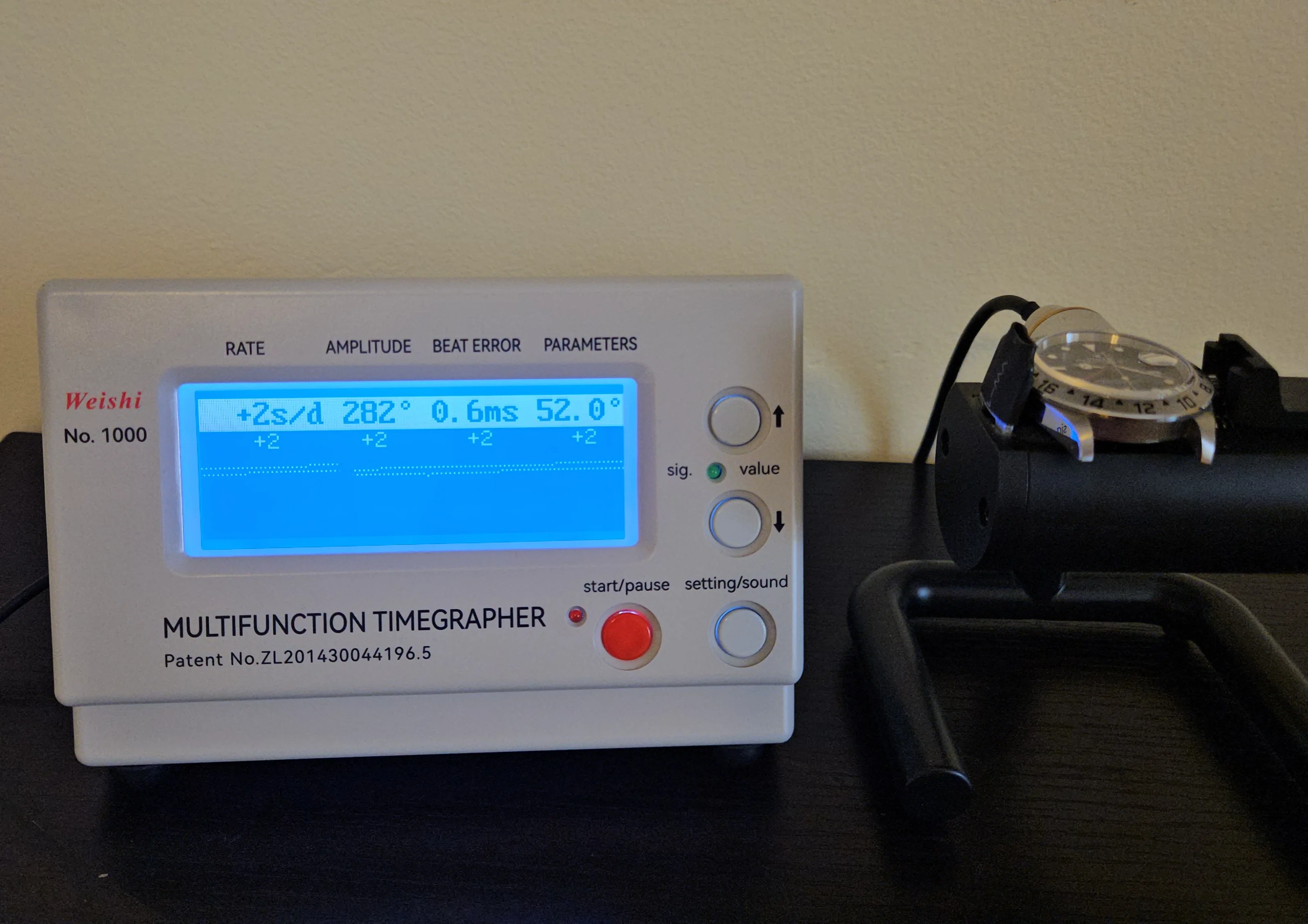 Mechanical Condition: Running very well at +2 sec/day at 282 degrees amplitude in the dial up position. Crown winds smooth. The jumping hour hand and date change over, are both in good working order.