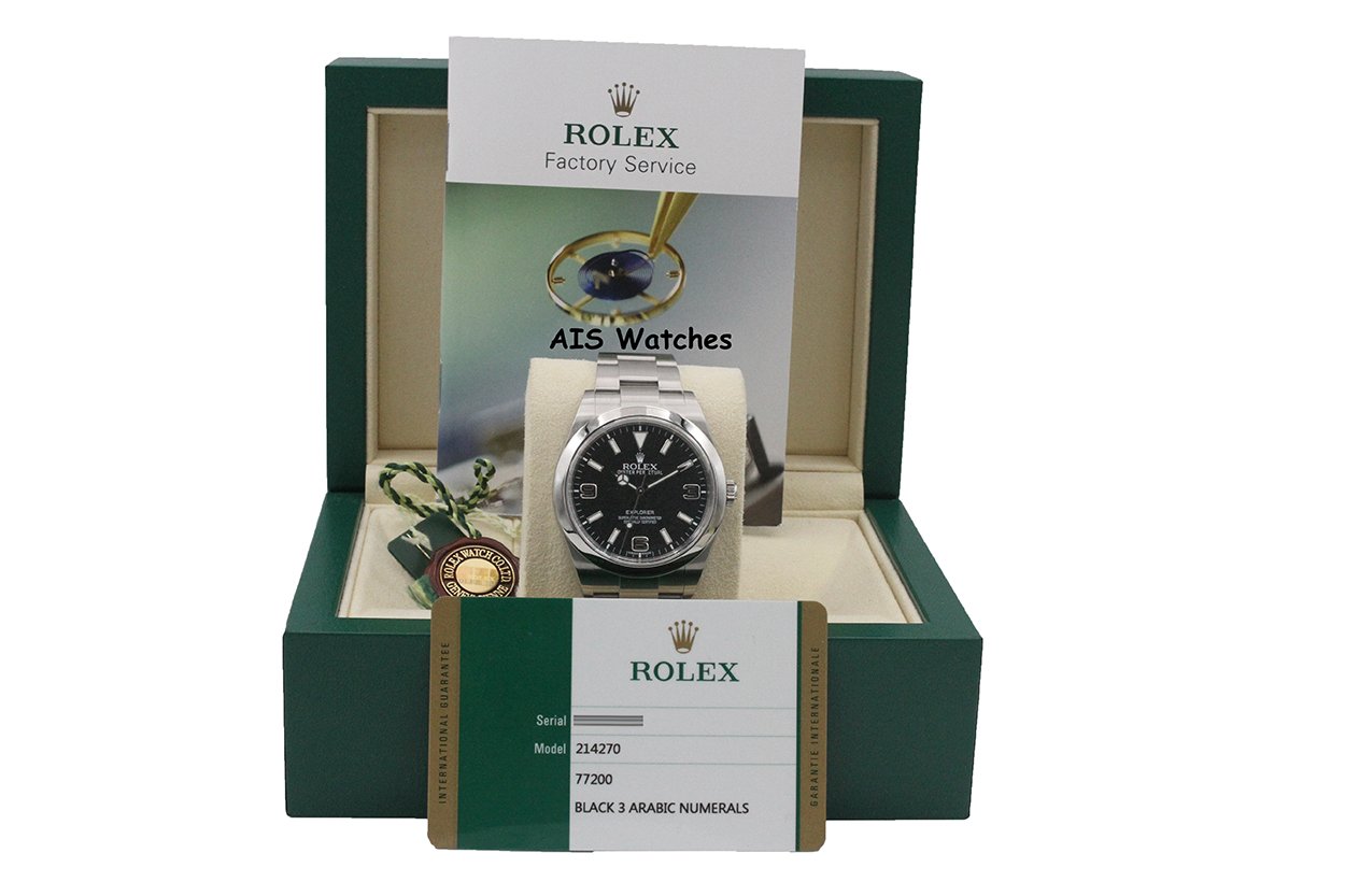 Up for sale is a Rolex Explorer 214270 39 MM MK1 Dial Random Serial Box & Papers. The timepiece is in excellent condition.