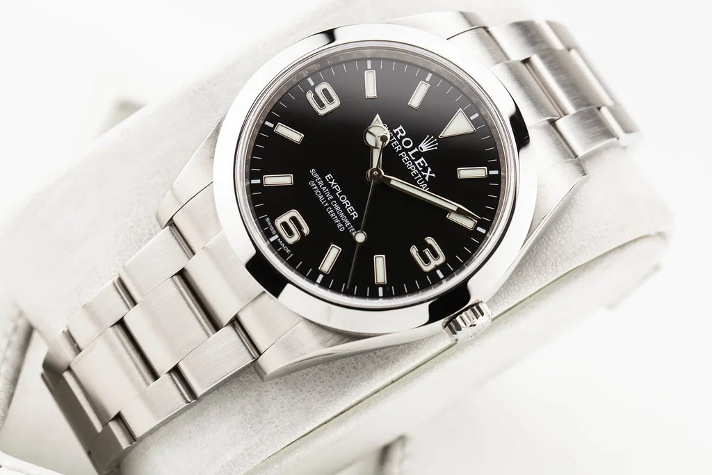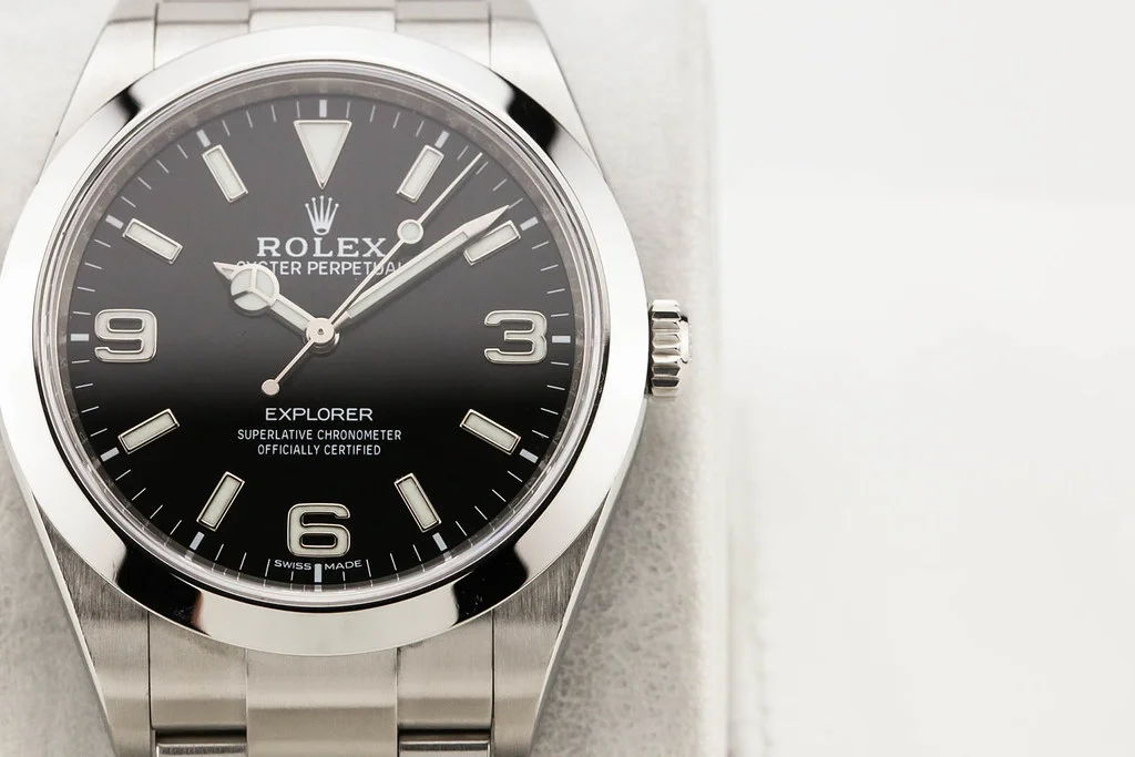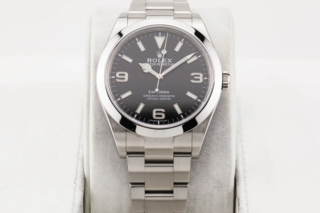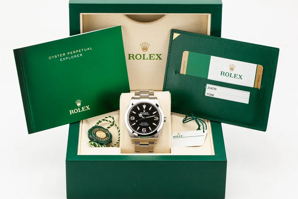 ·Up for sale is an excellent condition Rolex Explorer I 39mm Black Dial, reference # 214270. It comes complete with all boxes, papers, booklets, hang tags and Rolex Warranty Card dated August 2018.