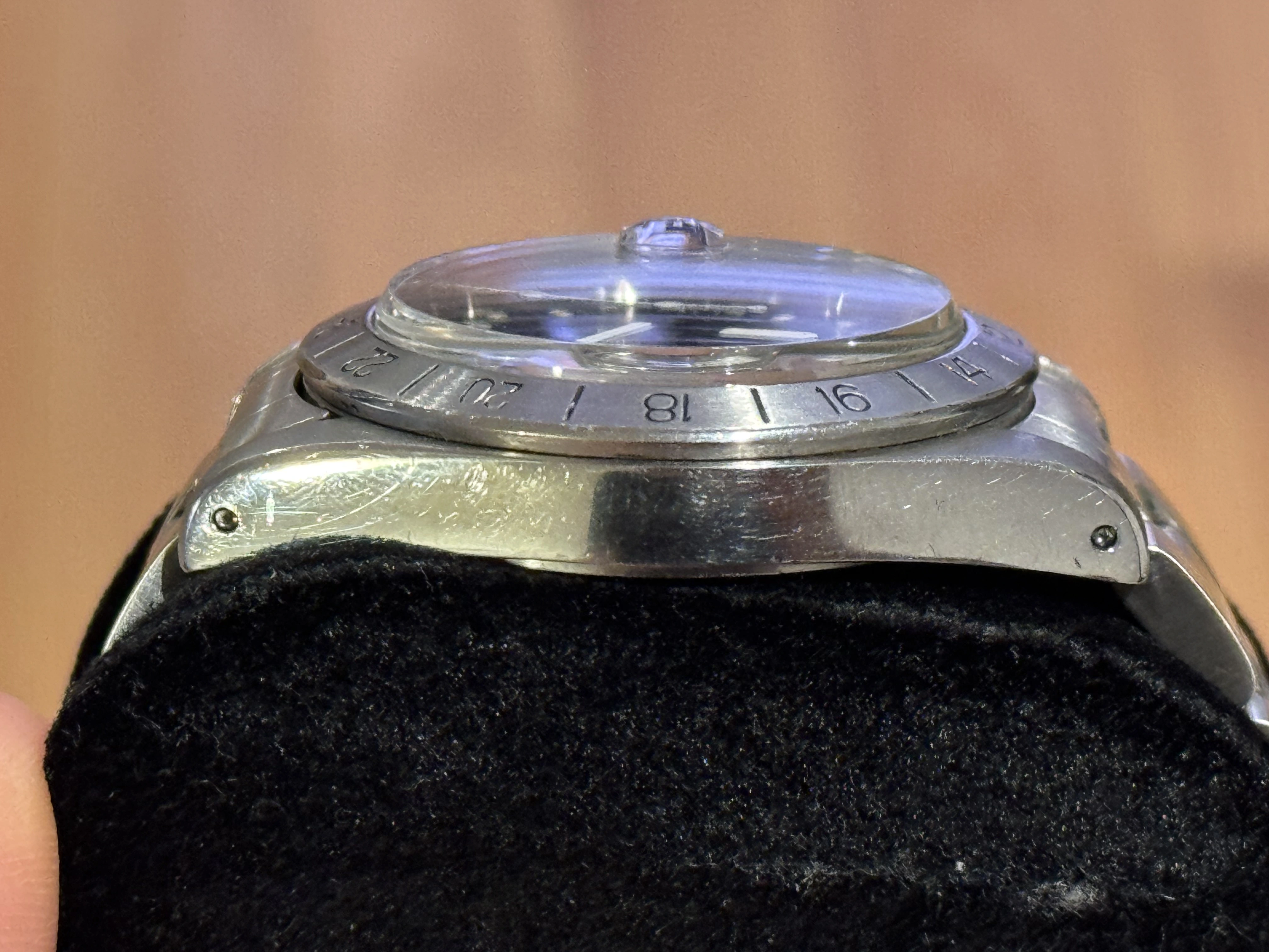 That said, the dial does have a couple marks from what appears to have been hand drag. You can see it in the macro shots of the dial, but not any of the normal shots of the dial.