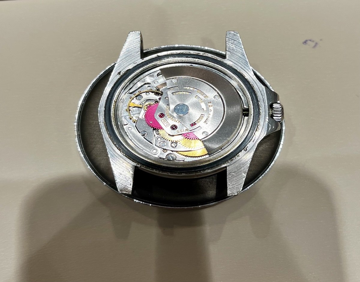 The plexiglass crystal is still thick, and has nice distortion to the edges. It has the usual marks for a plexiglass crystal of it’s age and everything is still highly legible.