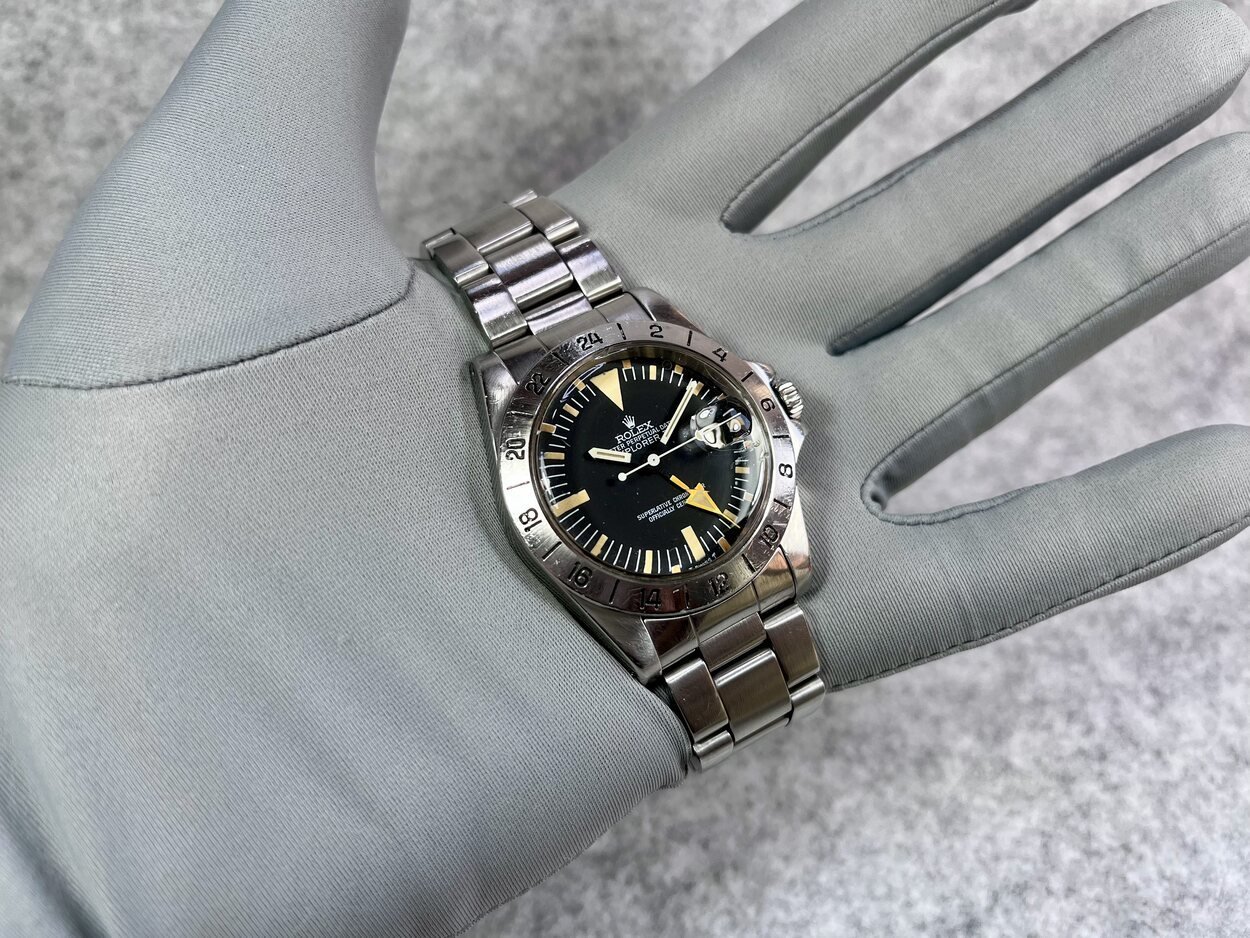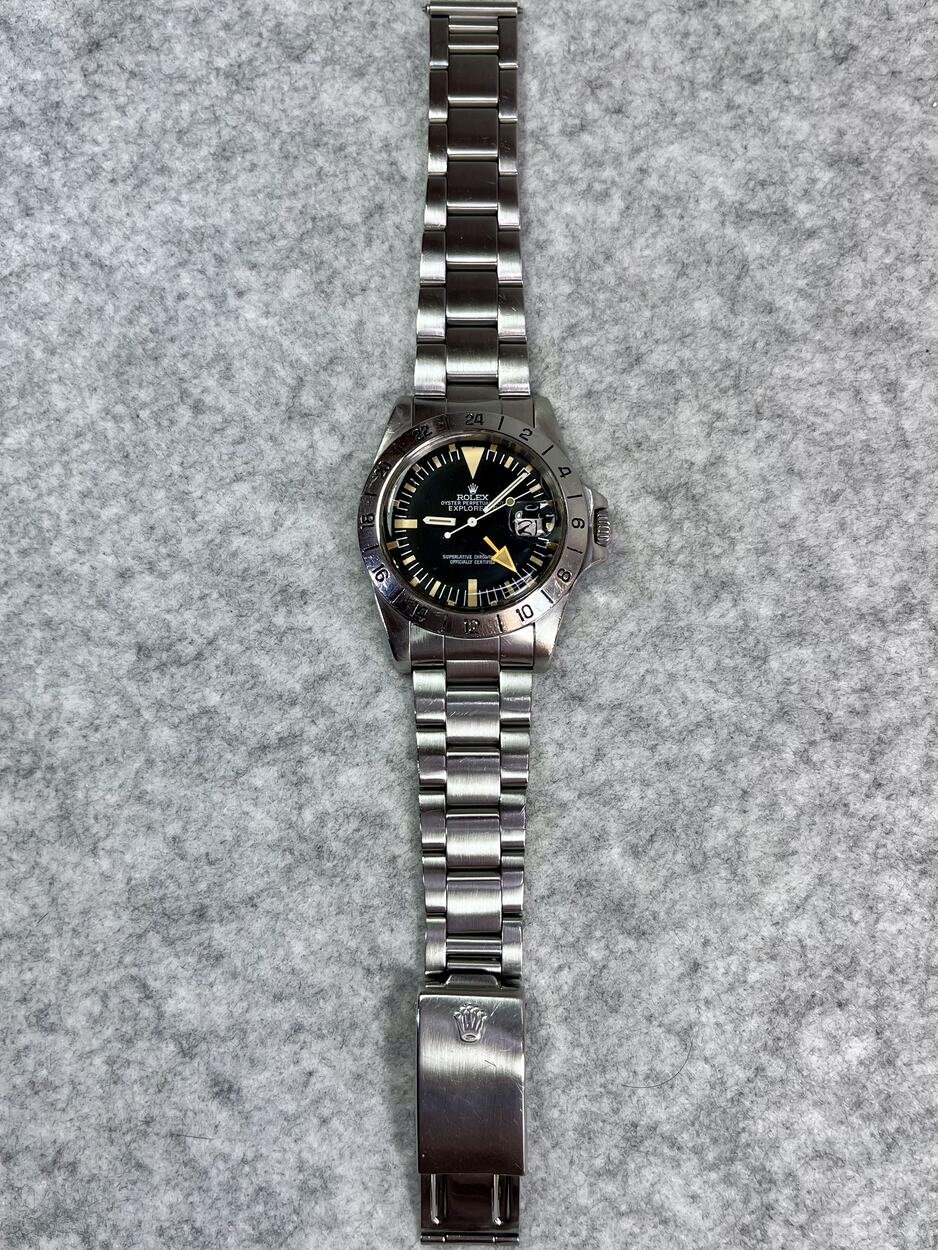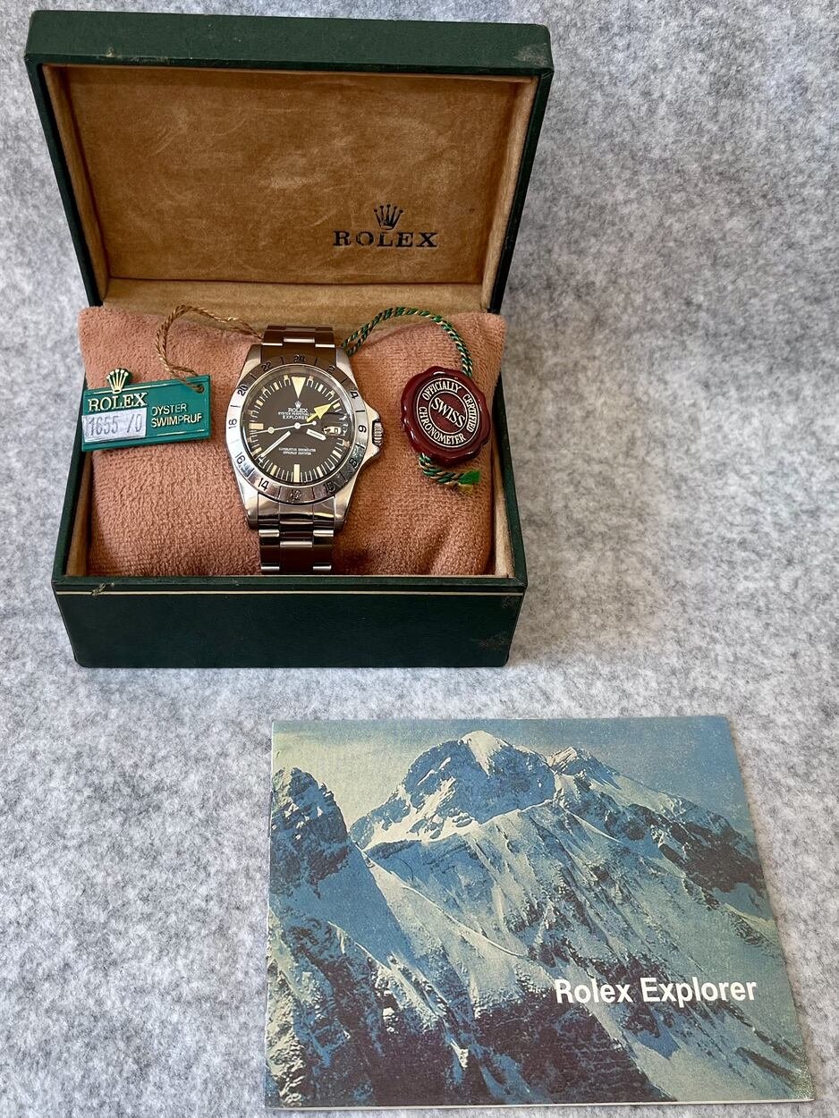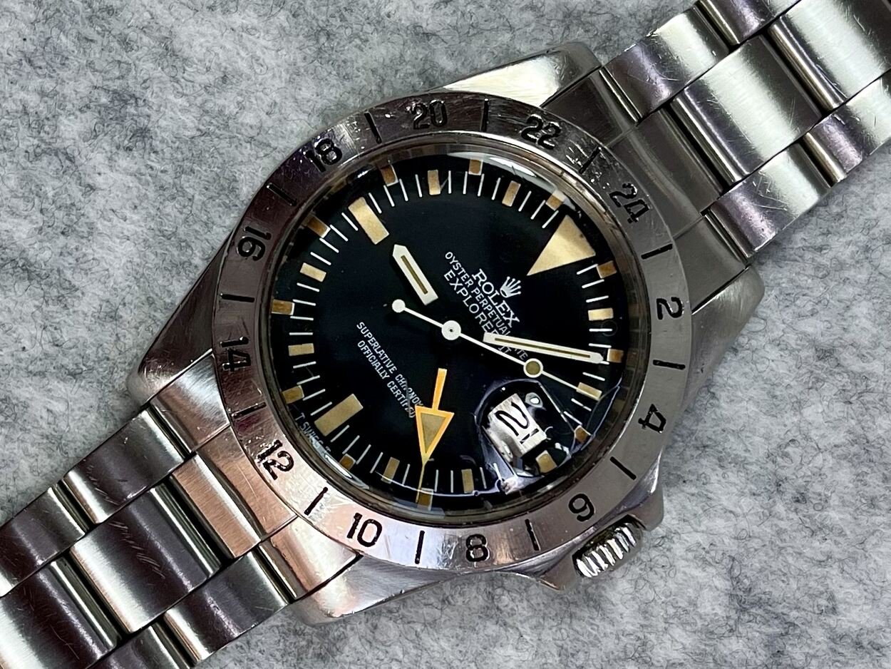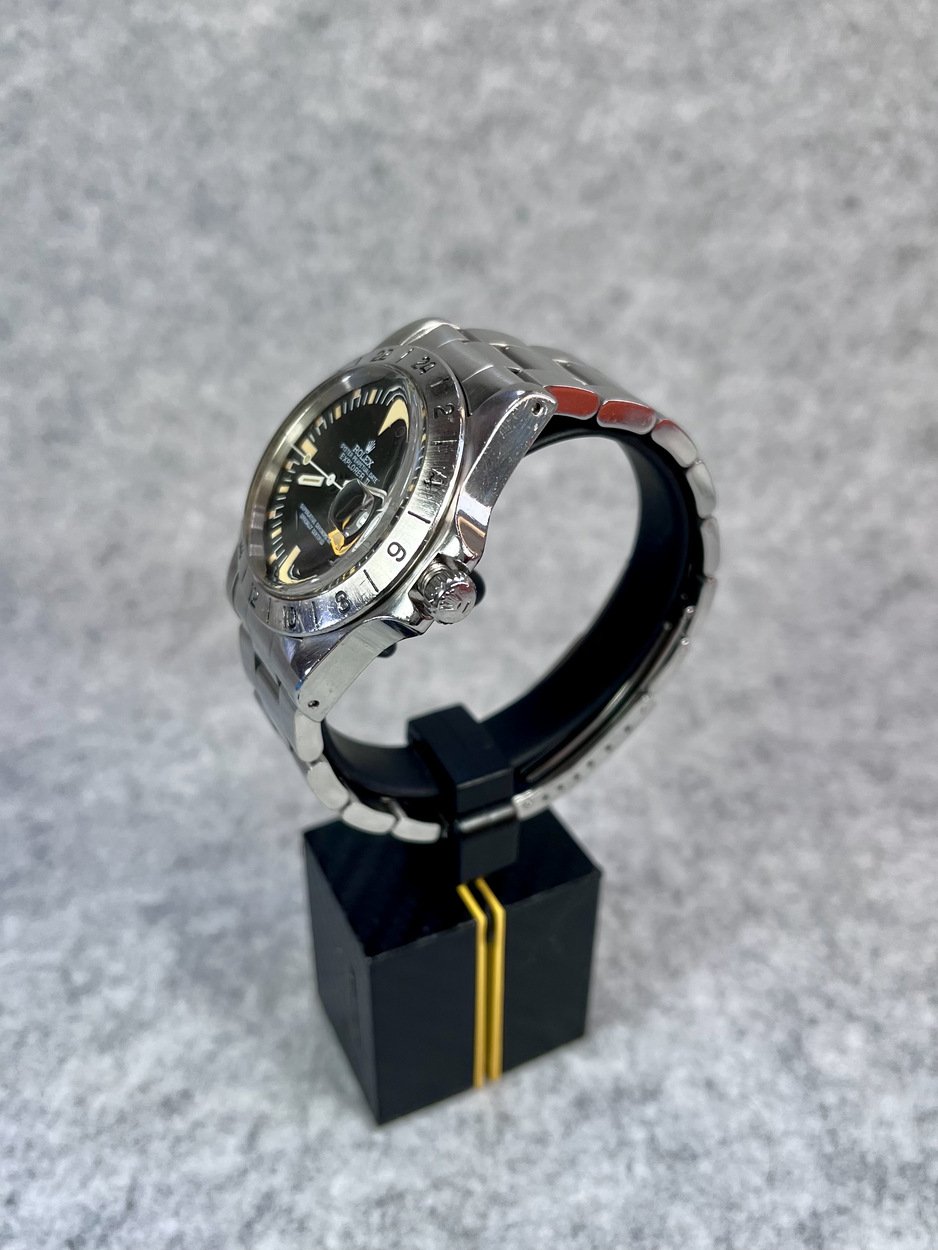 I have a 5 Million serial, 1978 MK2 Rolex Explorer II 1655 ‘Steve McQueen’ with the more sought after ‘Rail Dial’- where the letter ‘C’ in ‘Chronometer’ is perfectly aligned with the letter ‘C’ in ‘Certified’ in the ‘Superlative Chronometer Officially Certified’ text on the dial. Also dubbed the ‘Freccione dial, with its large luminous hour markers and orange 24-hour hand, it’s particularly iconic and sought after by enthusiasts.