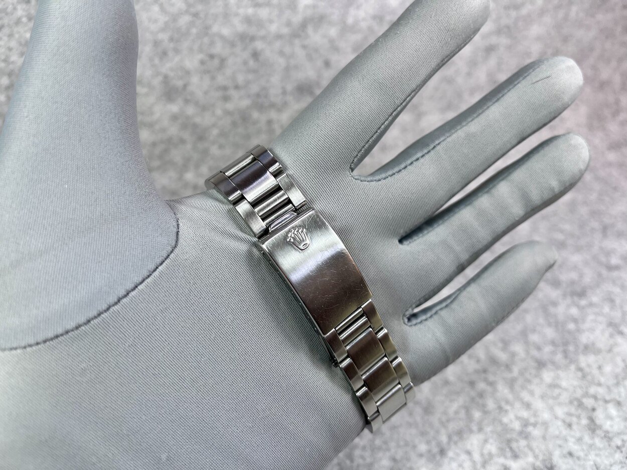 Design: Flat-link Oyster bracelet with folding Oyster lock safety clasp (12 links supplied) with 7 position spring bar increments of the clasp, allowing for easy adjustment and generous extension of the bracelet length.