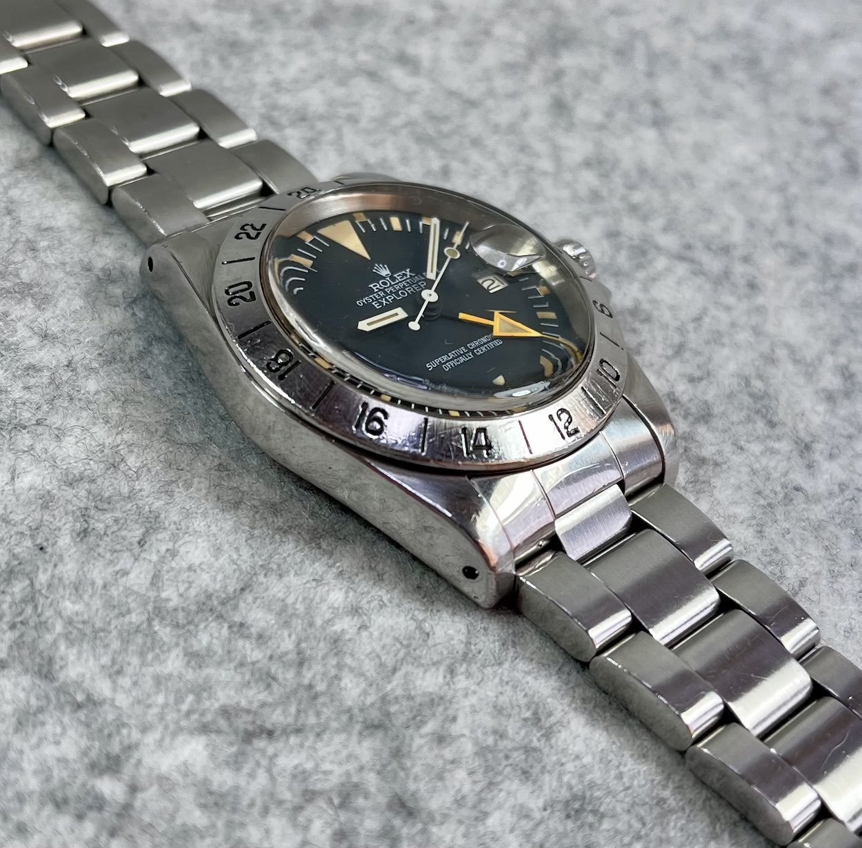 Lug holes are still far from the edges, indicating minimal polishing (if any) over the years. The bezels paint infill is still nicely visible along with the brushed and ‘lapped’ finish you see on the vintage and modern Explorer II lines bezels.